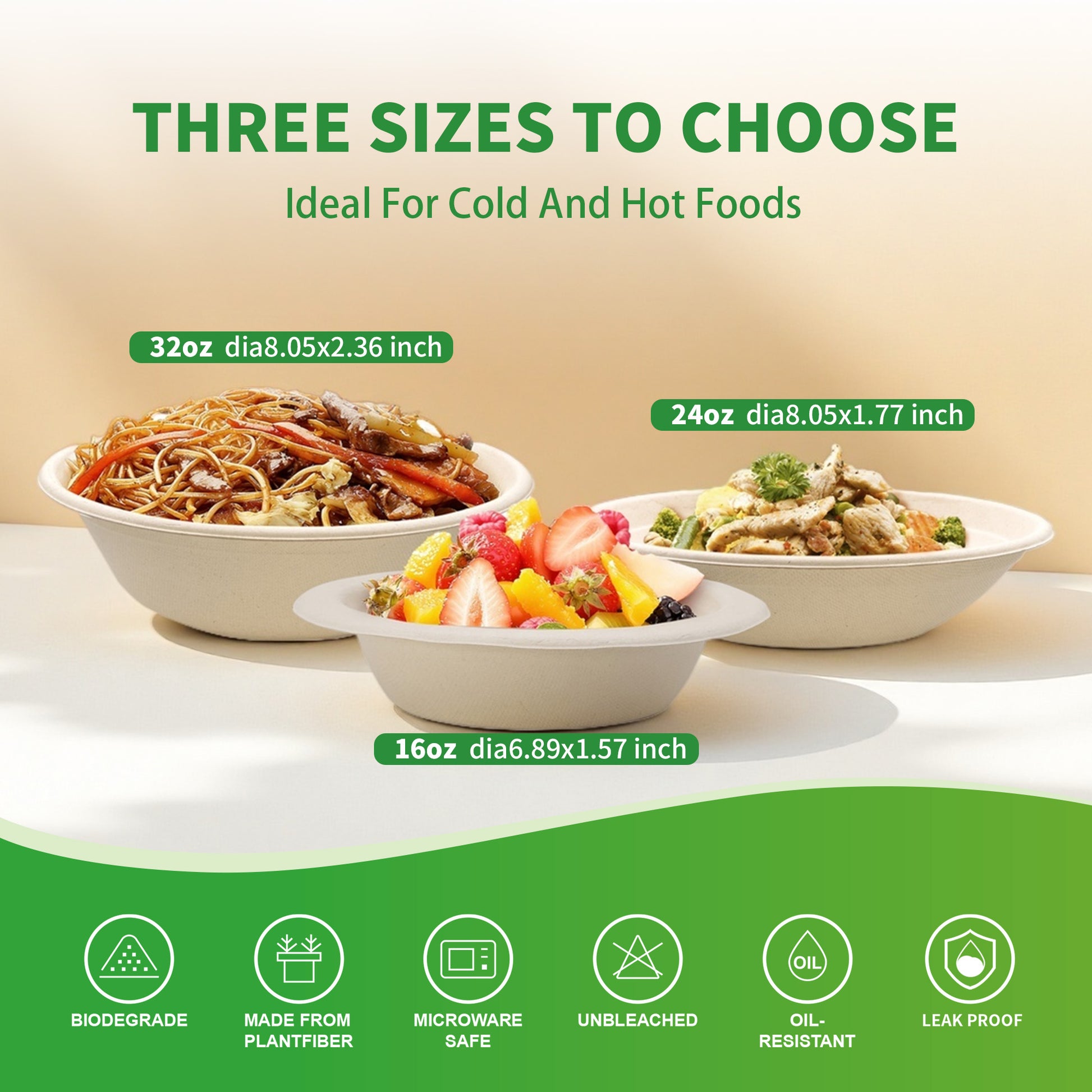 32 OZ COMPOSTABLE BAGASSE BOWL PFAS FREE