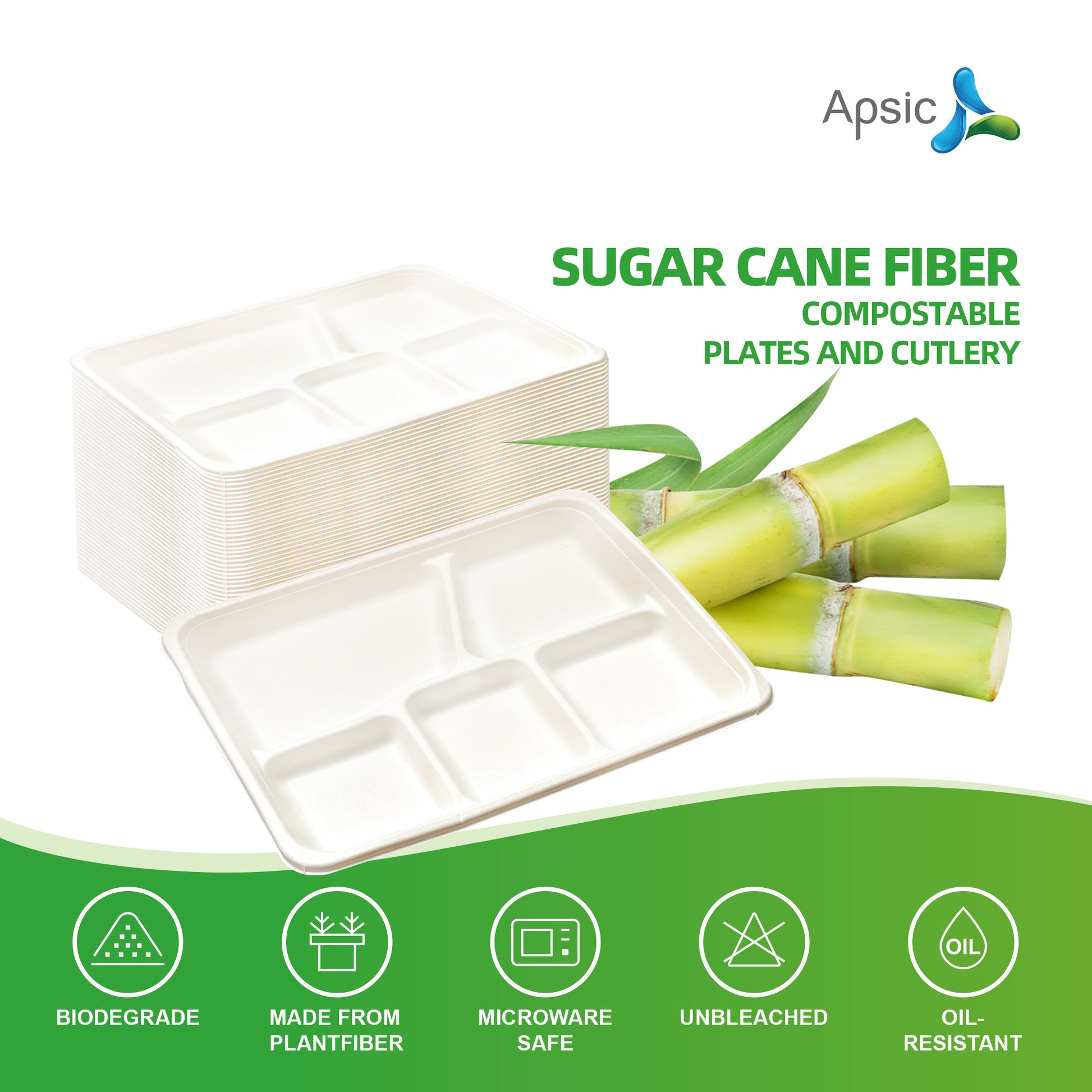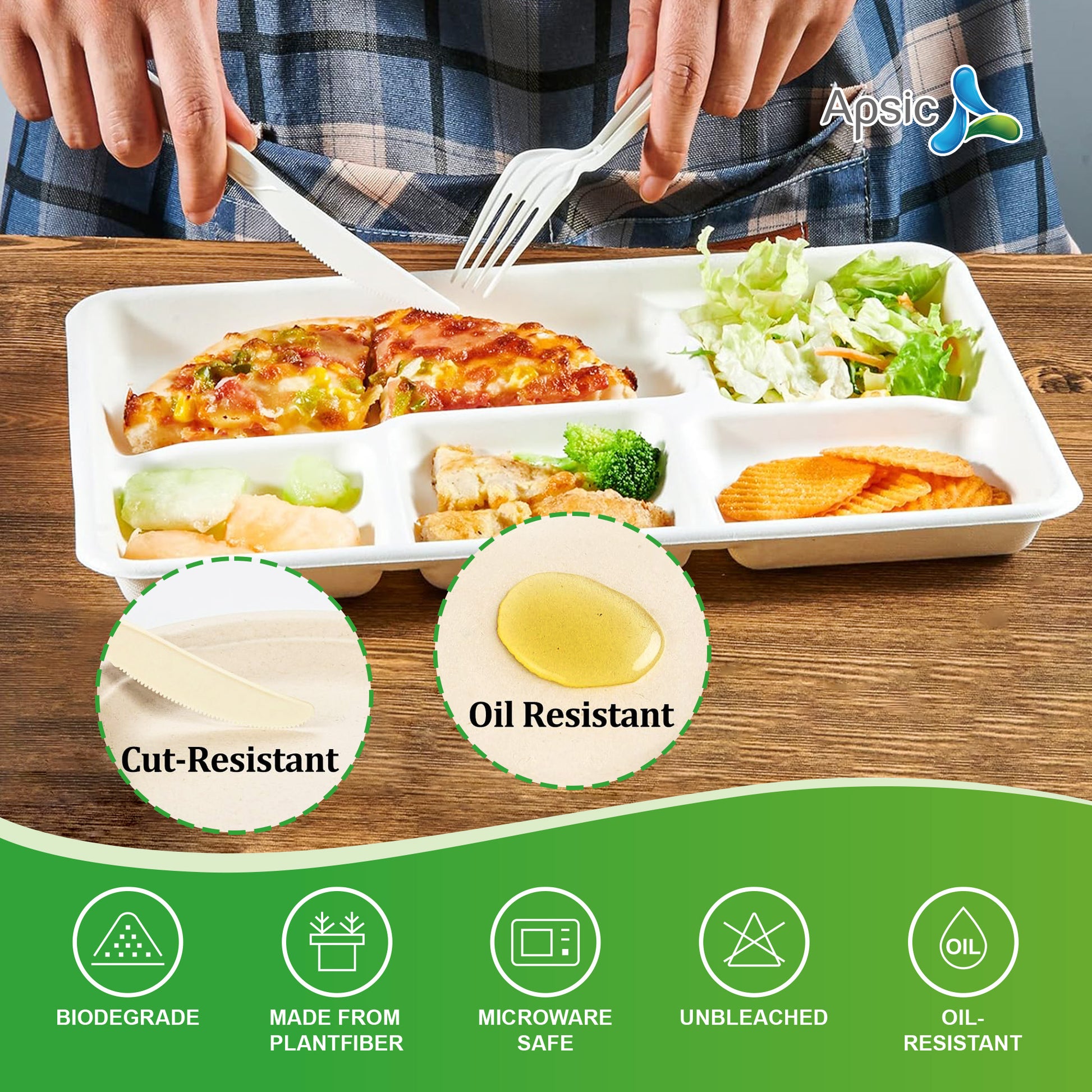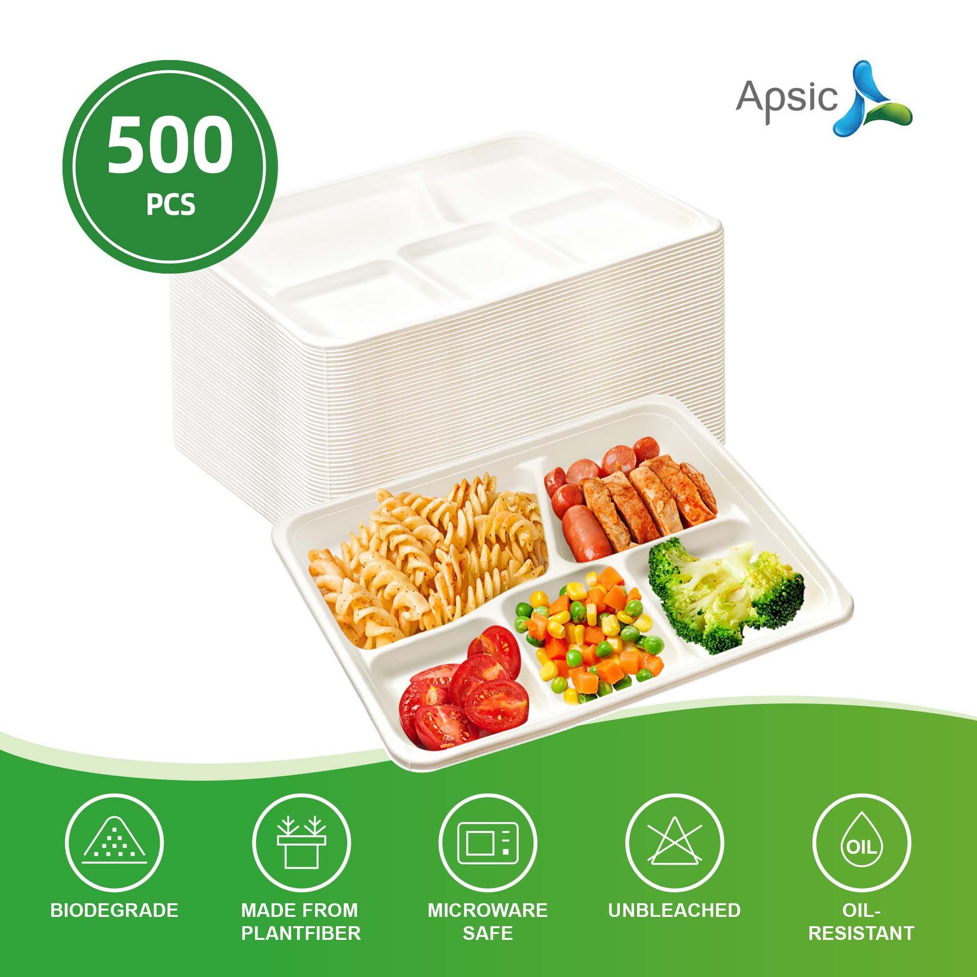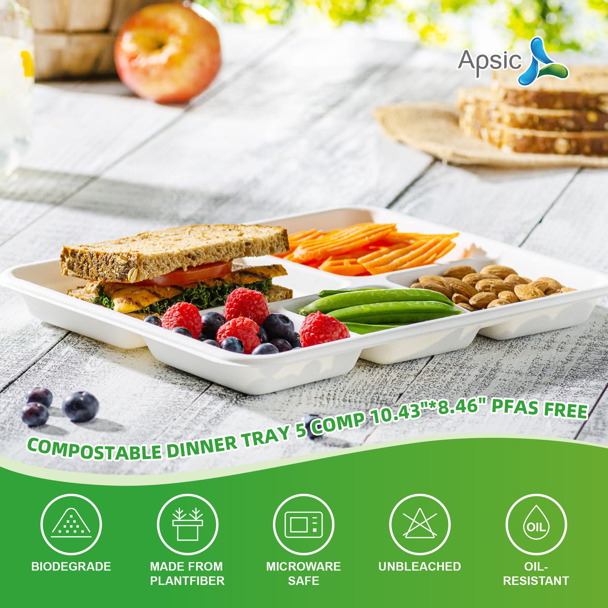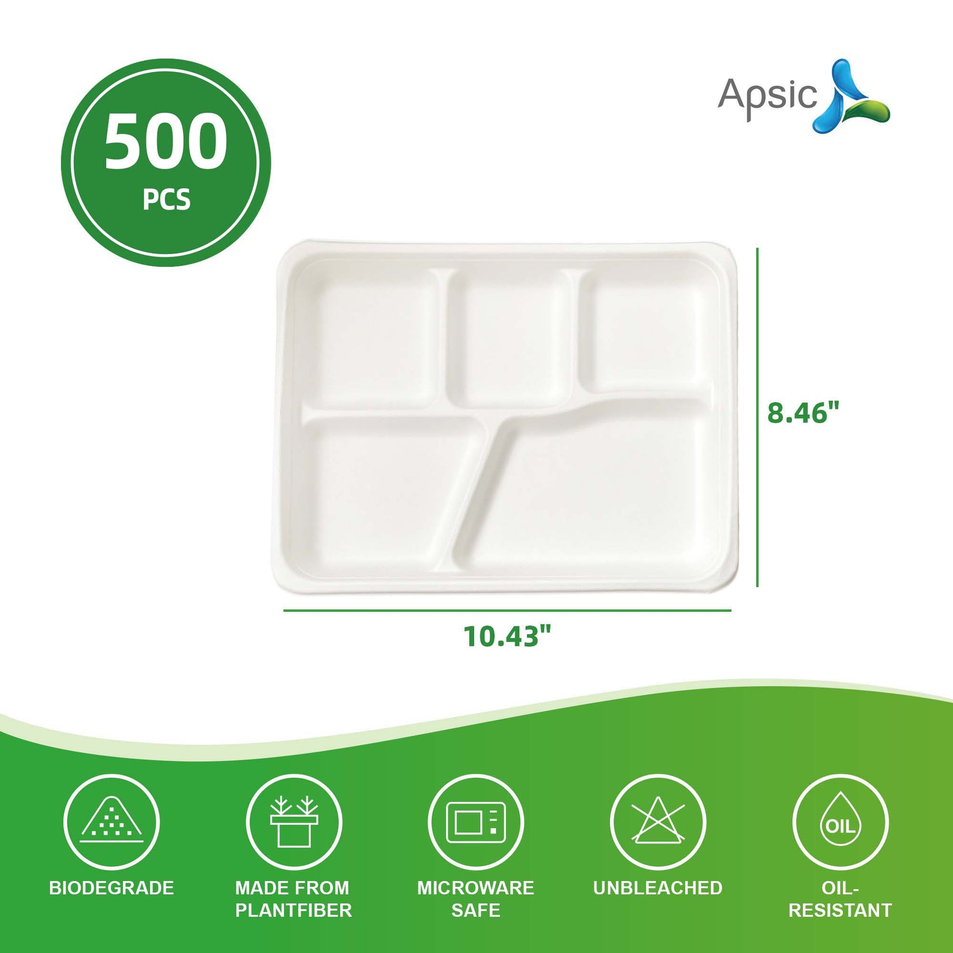 COMPOSTABLE DINNER TRAY 5 COMP 10.43"*8.46" PFAS FREE