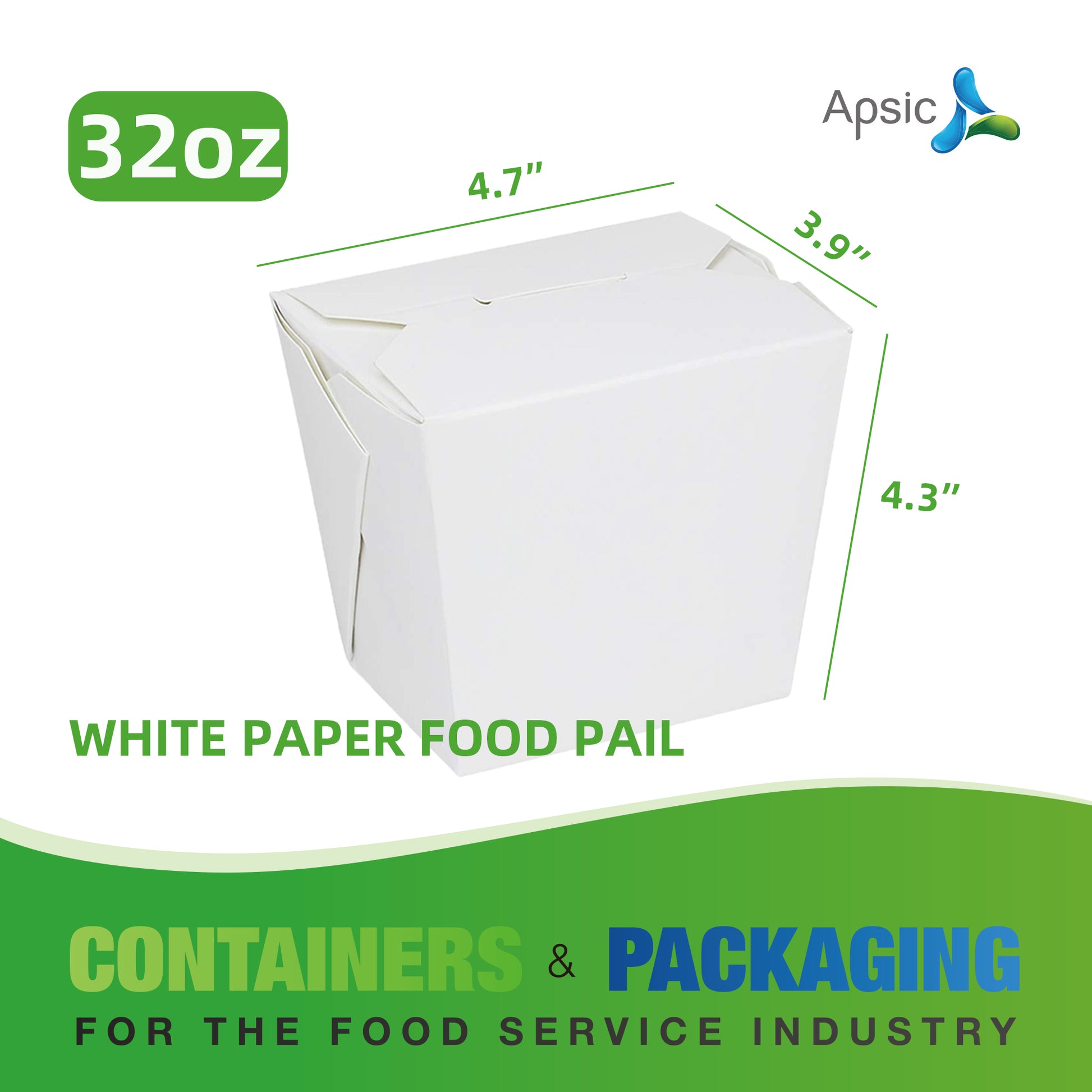 32 OZ WHITE PAPER FOOD PAIL 4.7"*3.9"*4.3"