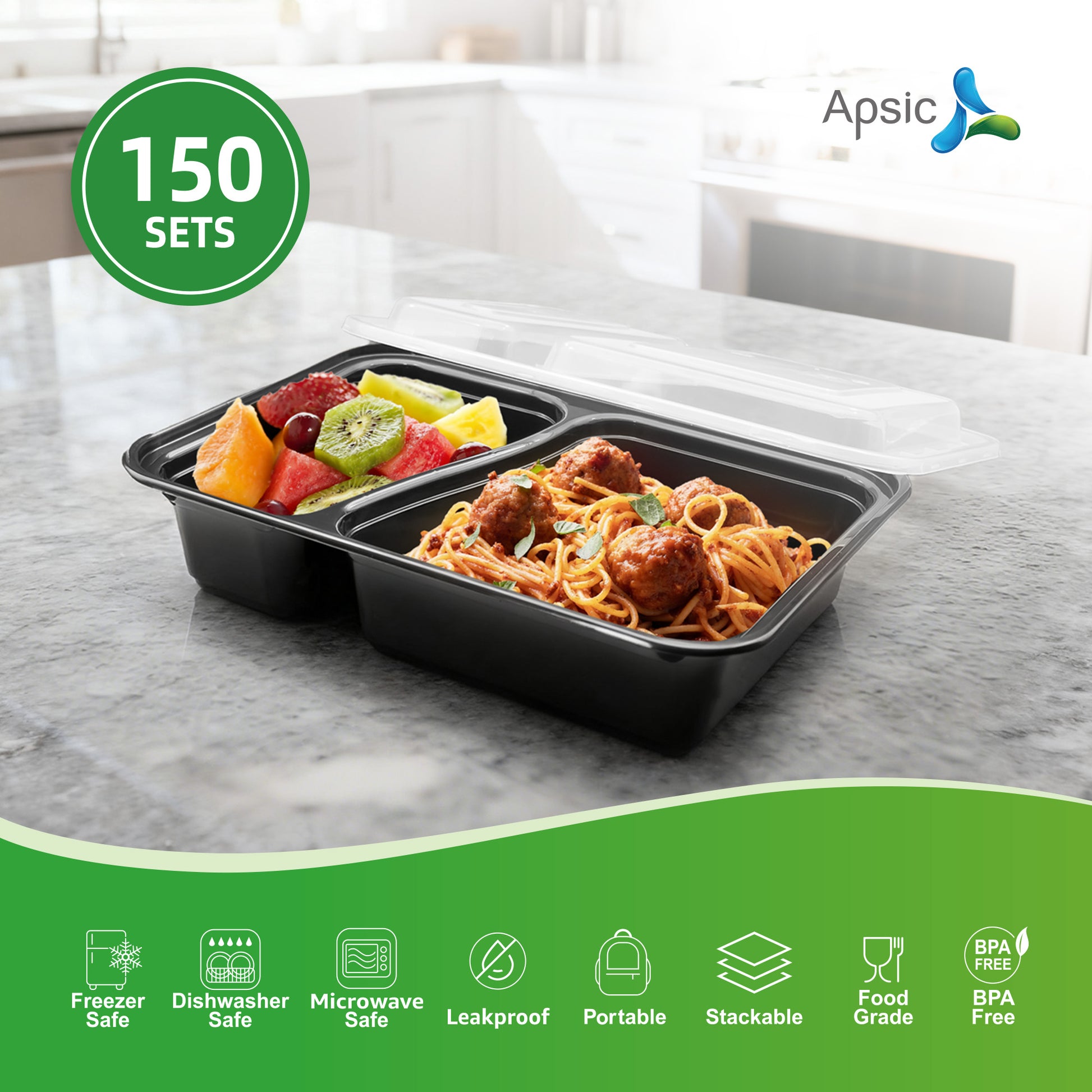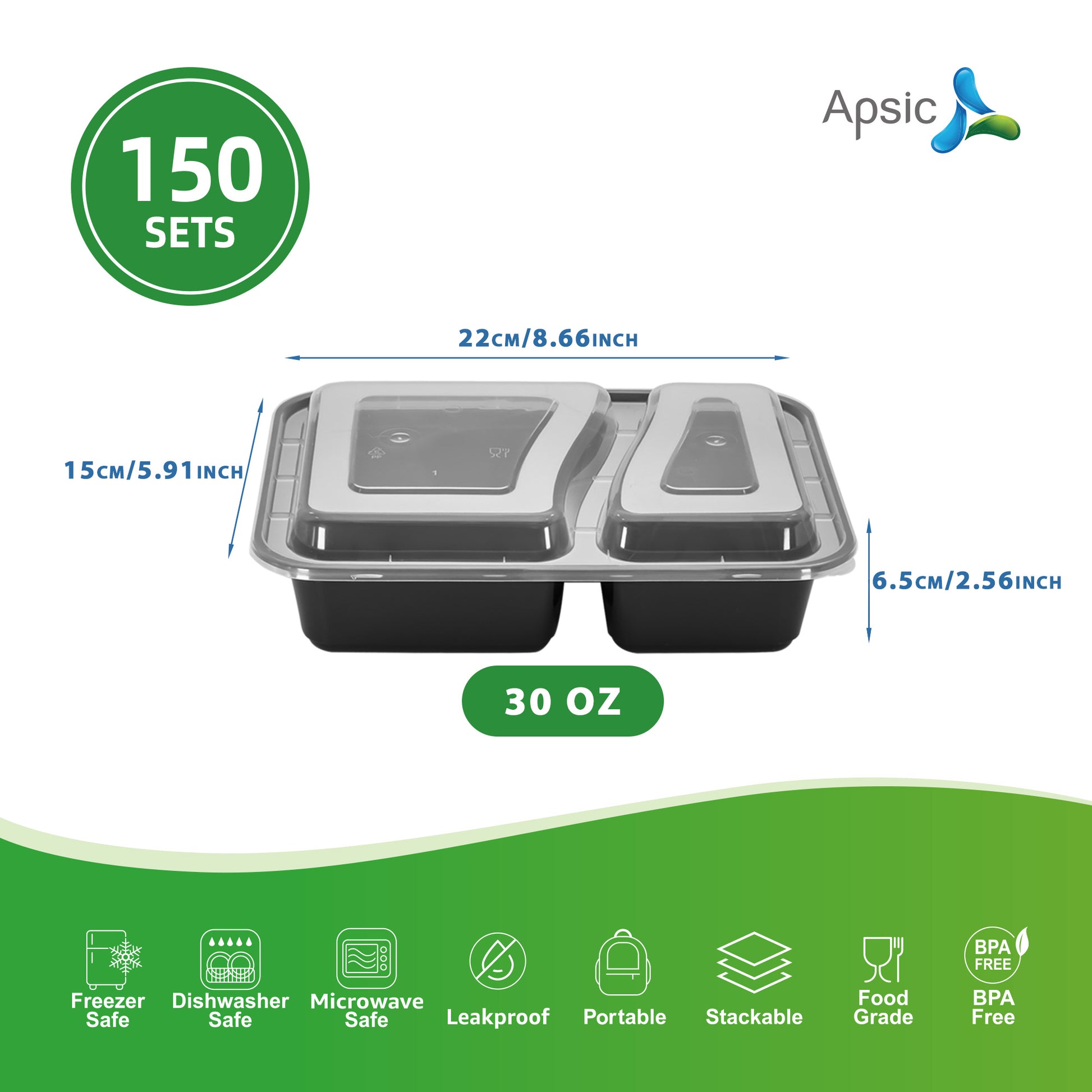 30 OZ PLASTIC RECTANGULAR FOOD CONTAINER WITH LID 2-COMPARTMENT