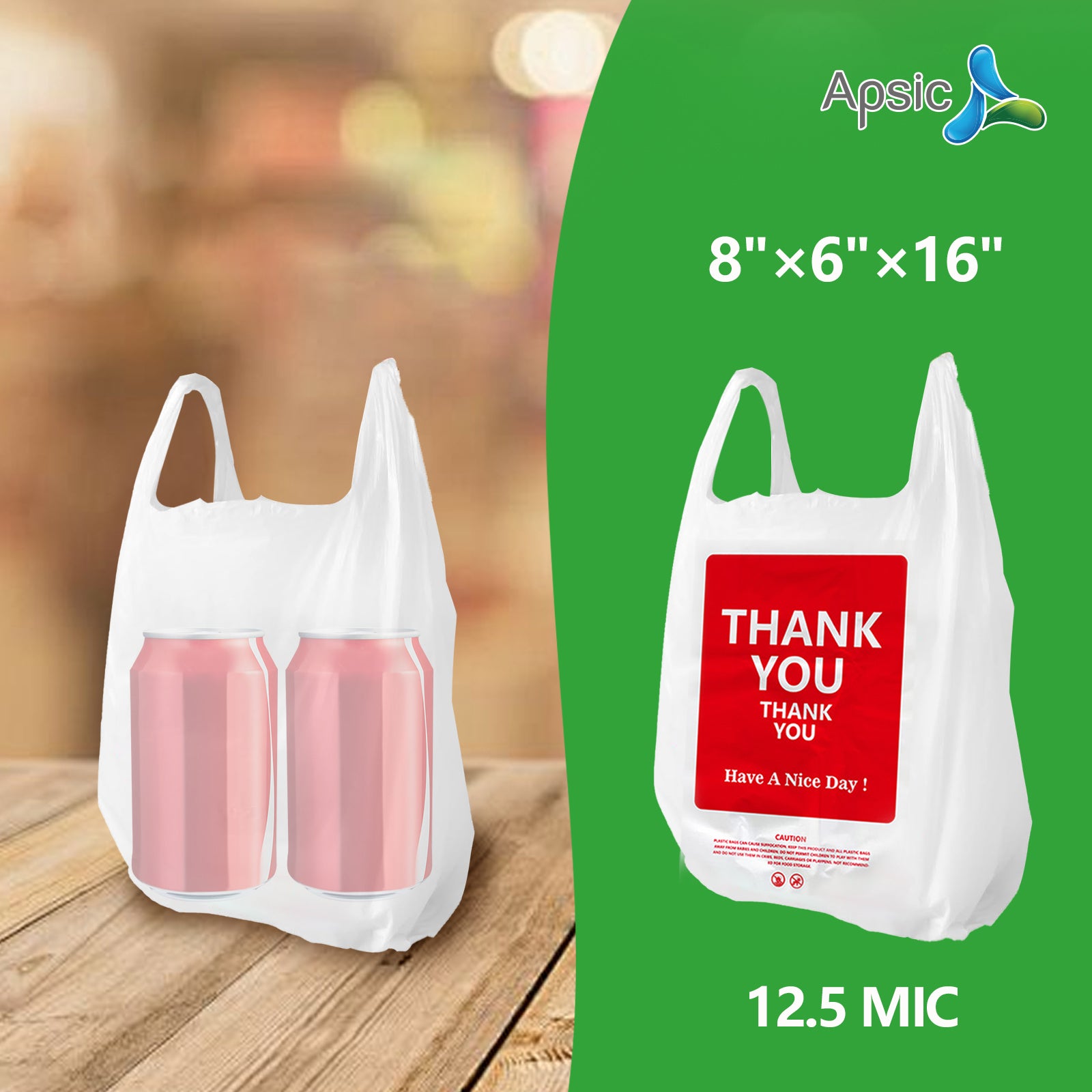 #1 T-SHIRT CARRY OUT BAGS 8"×6"×16" 12.5MIC