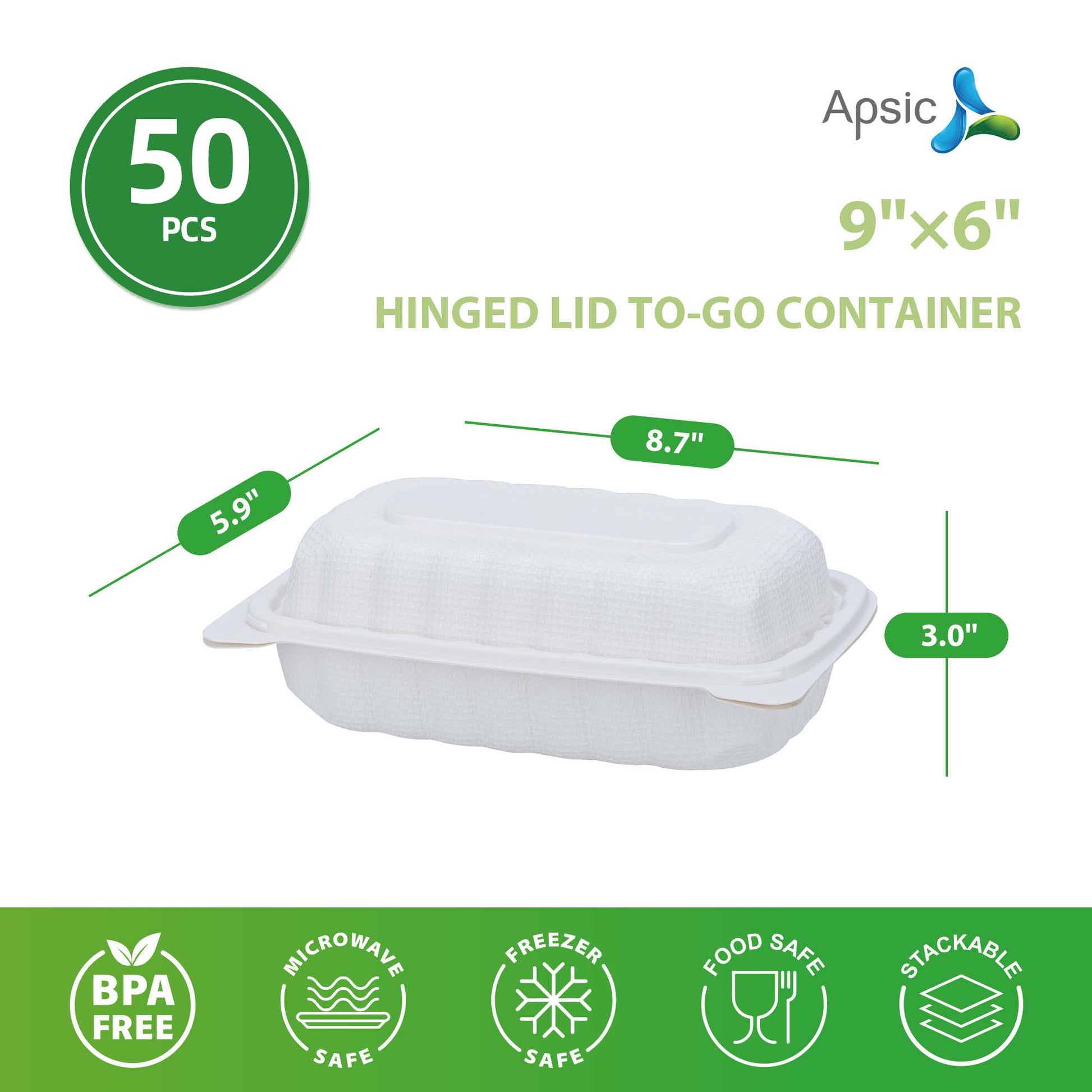 9"×6" HINGED LID TO-GO CONTAINER 50PCS