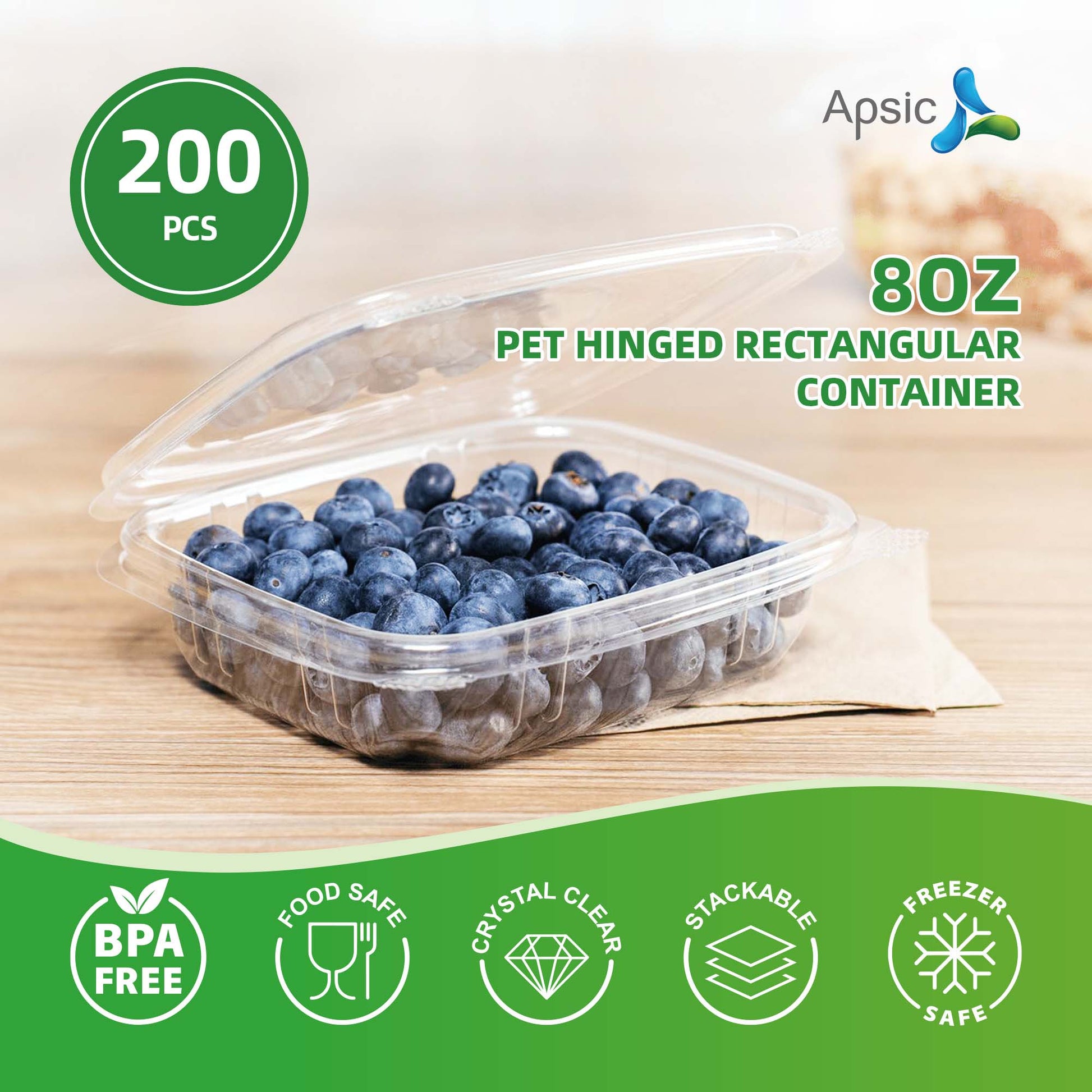 8 OZ CLEAR HINGED RECTANGULAR CONTAINER