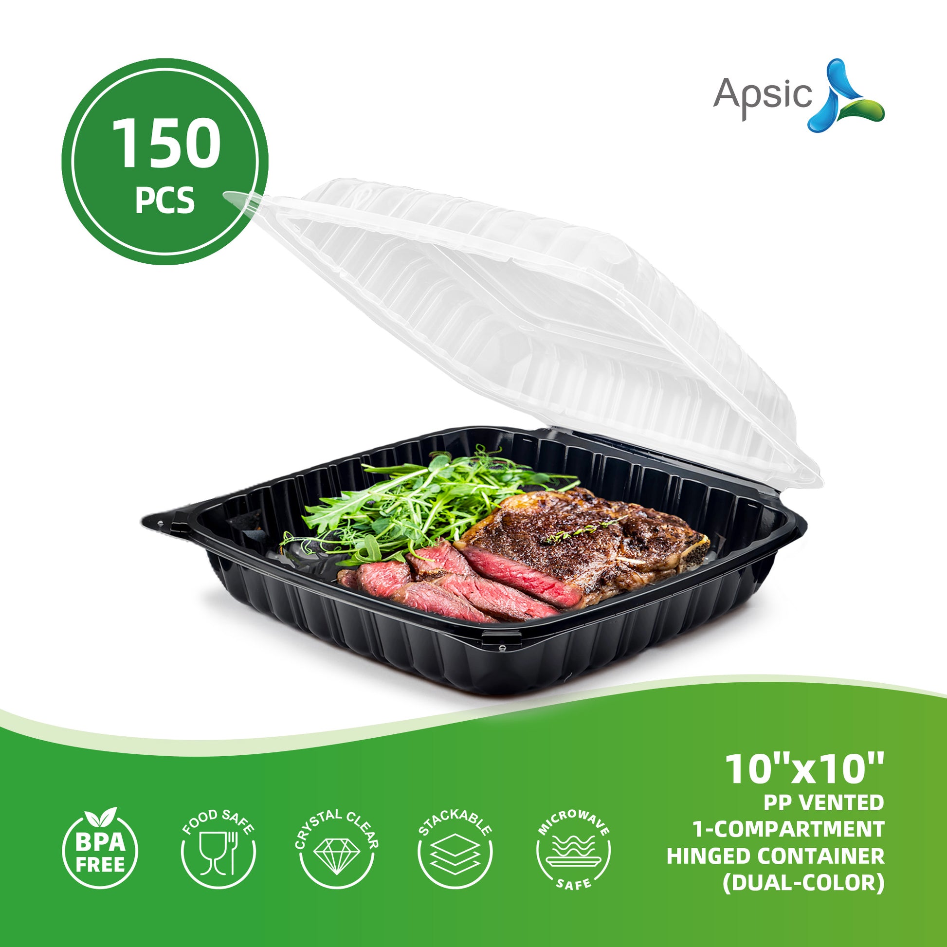 PP 10''x10'' Vented 1-Compartment Hinged Container(Dual-Color)