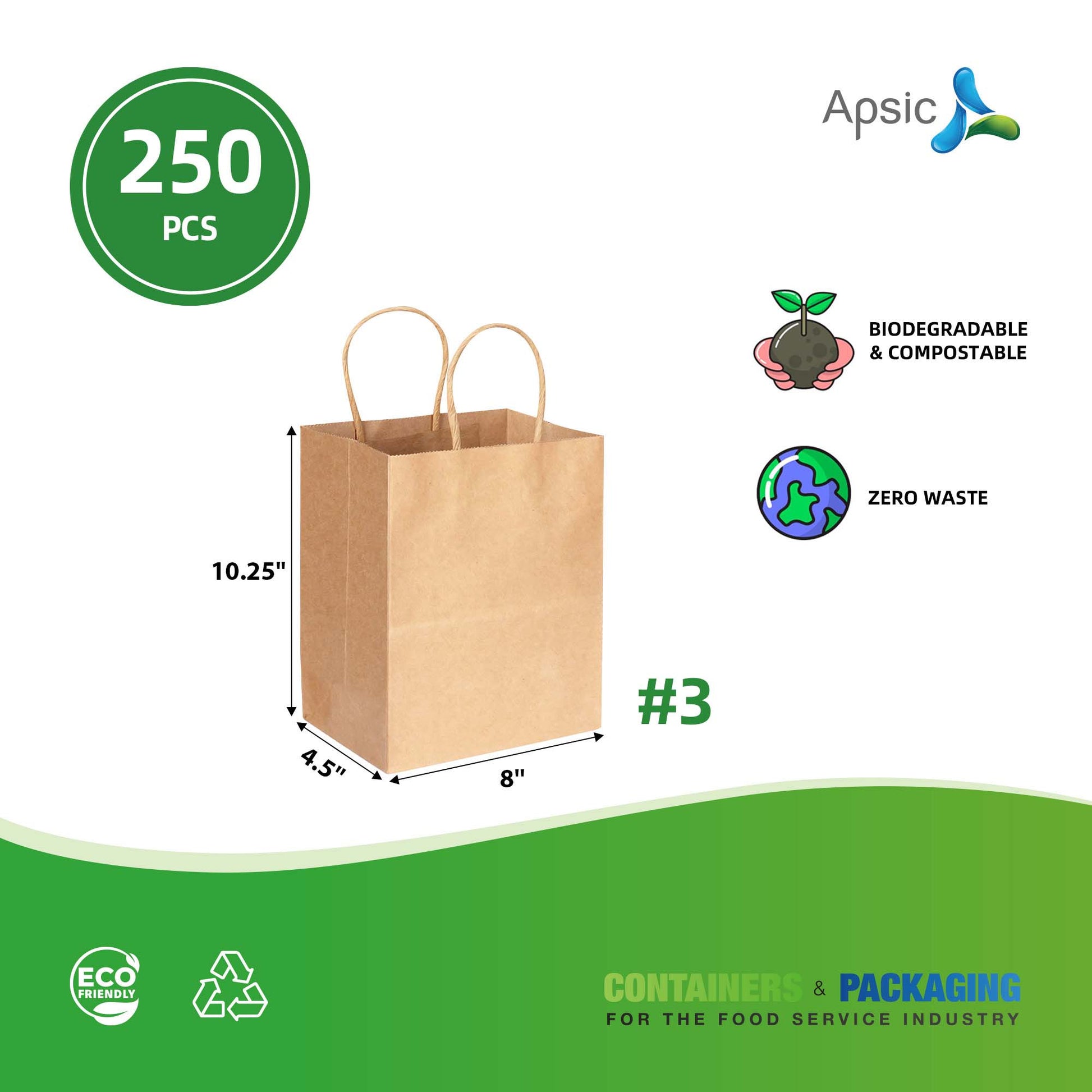 #3 KRAFT PAPER BAG WITH TWIST HANDLE 8"*4.5"*10.25 100gms