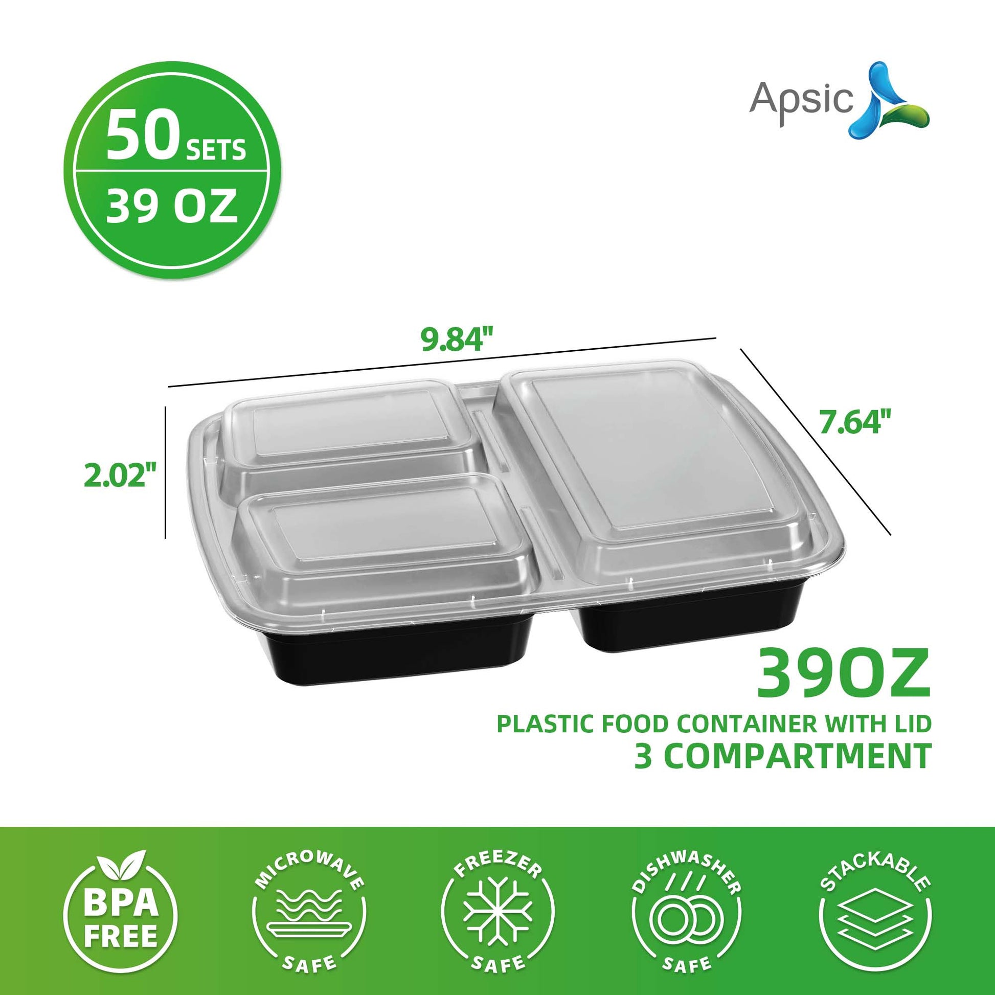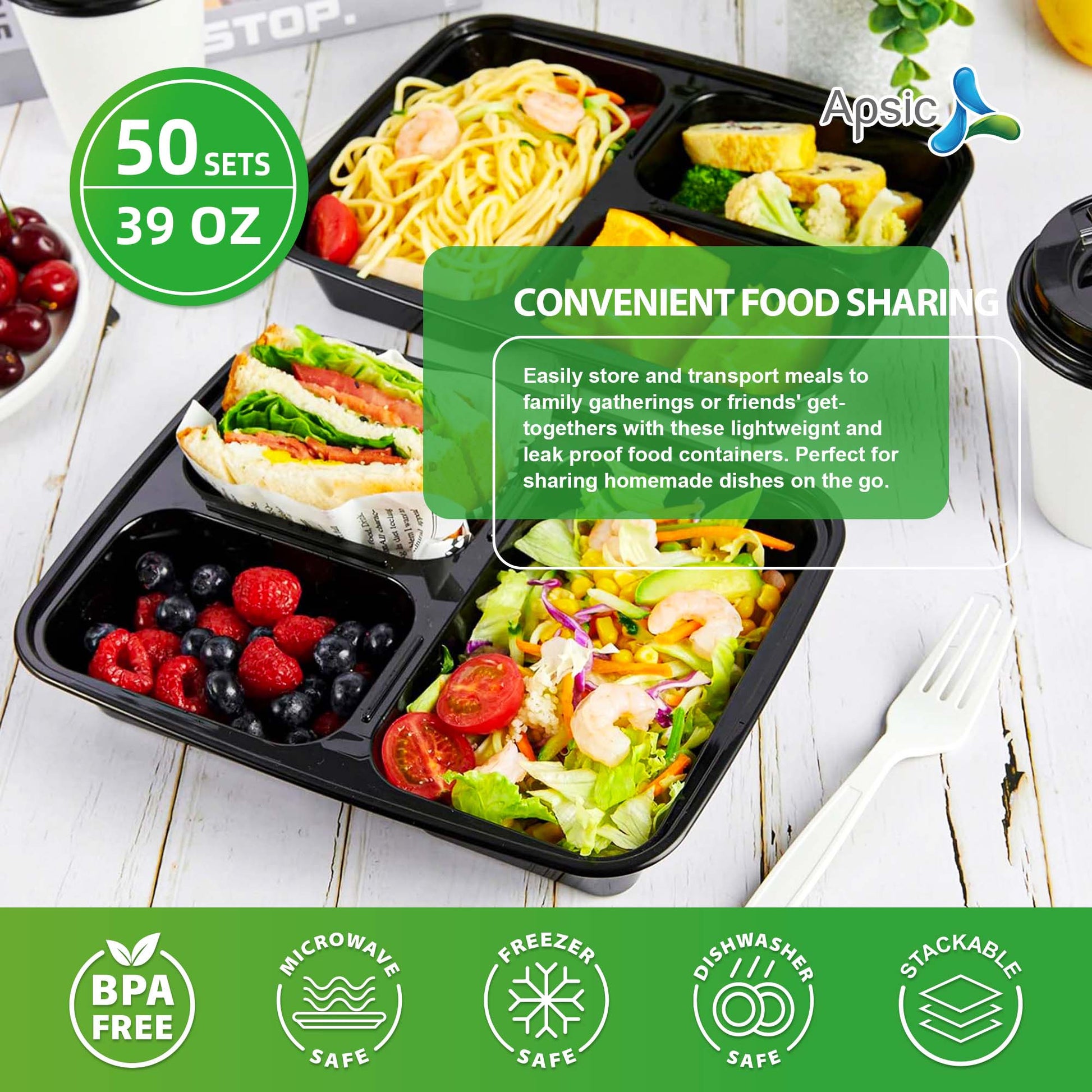39 OZ PLASTIC FOOD CONTAINER WITH LID (3 COMPARTMENT)