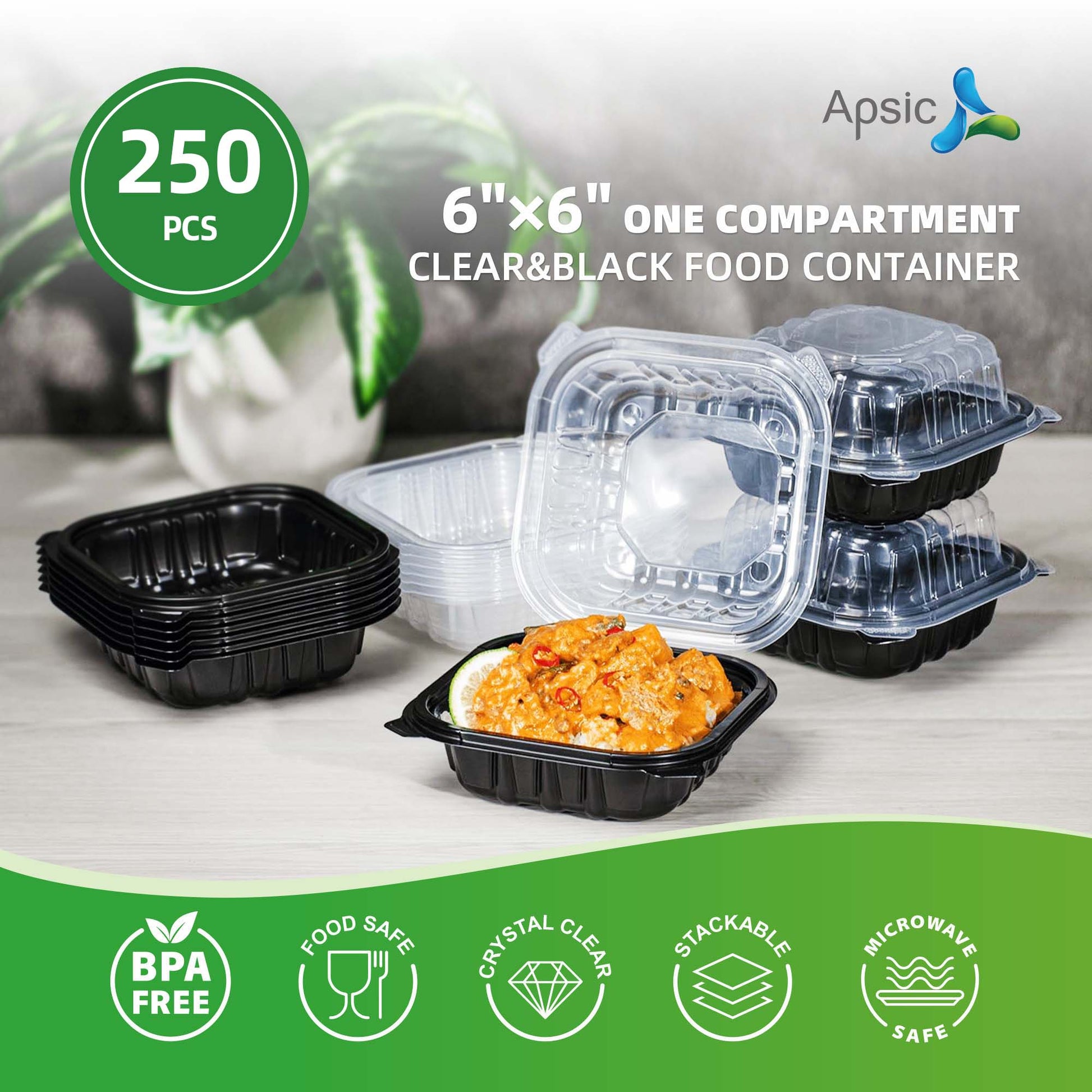 6"×6" ONE COMPARTMENT CLEAR&BLACK FOOD CONTAINER