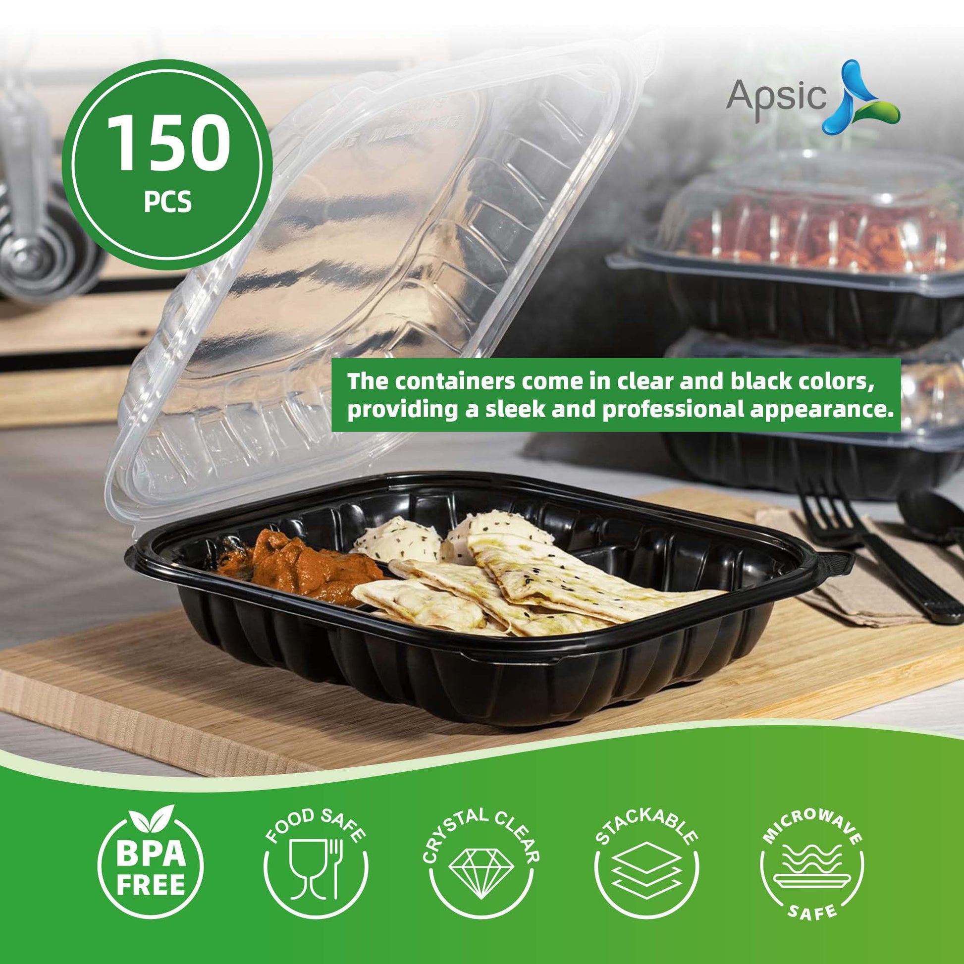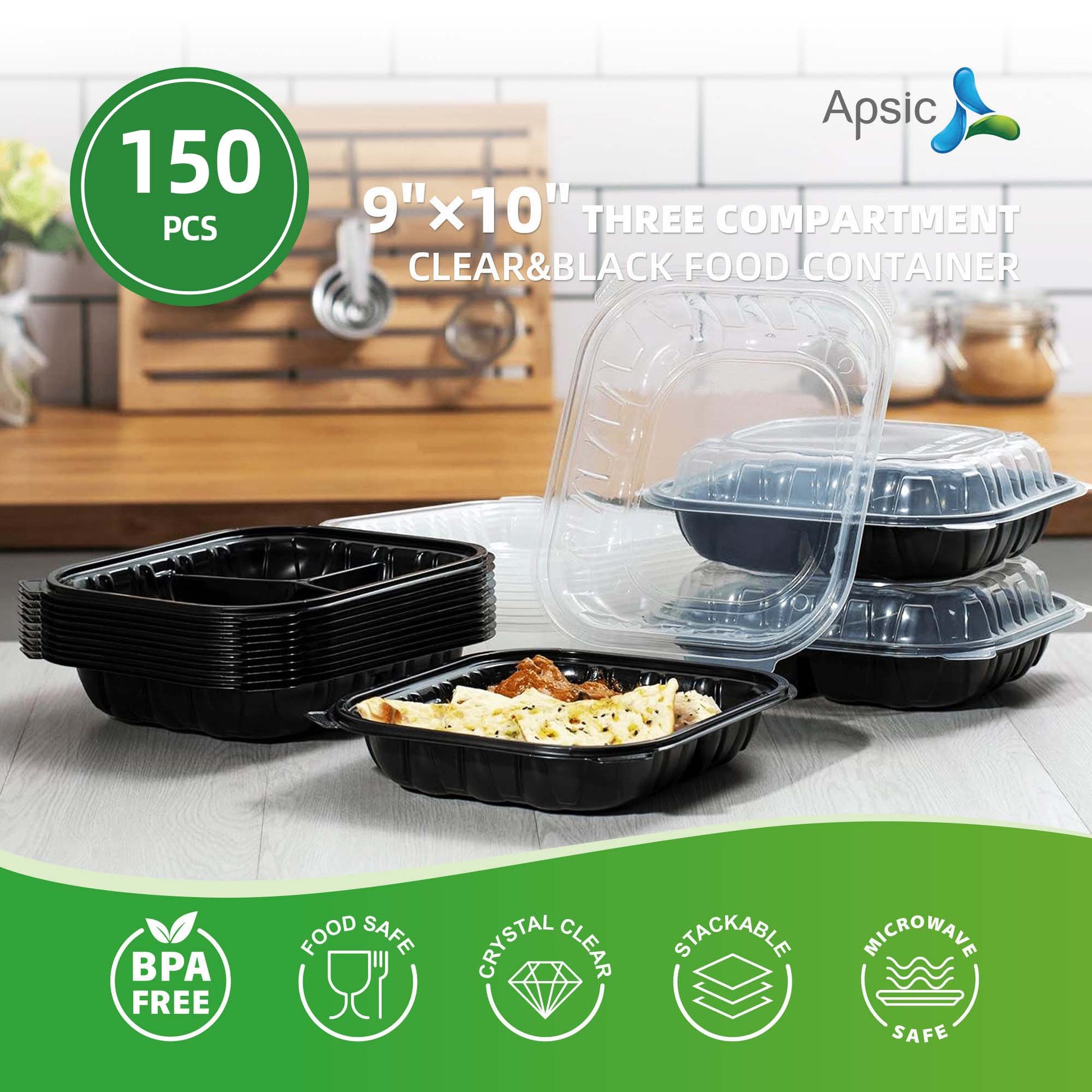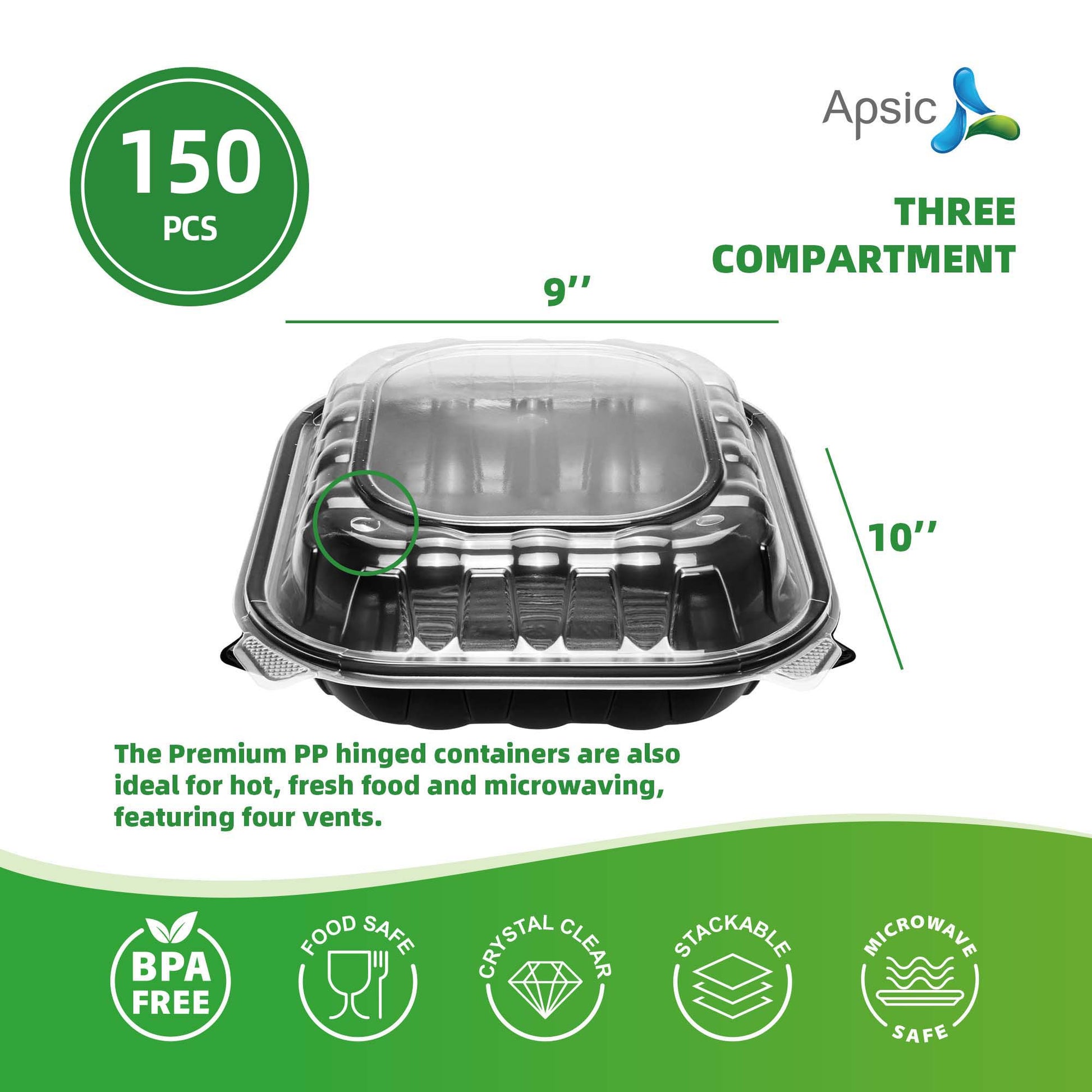 9"×10" THREE COMPARTMENT CLEAR&BLACK FOOD CONTAINER