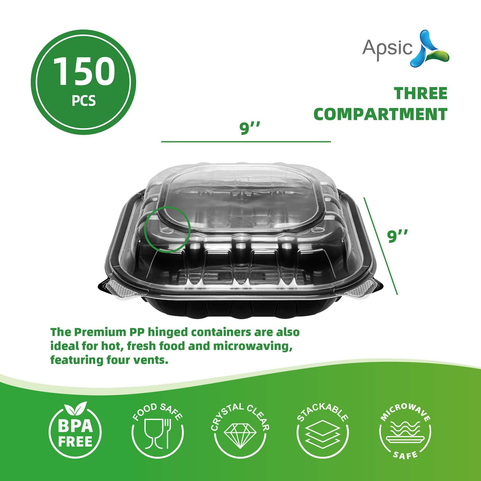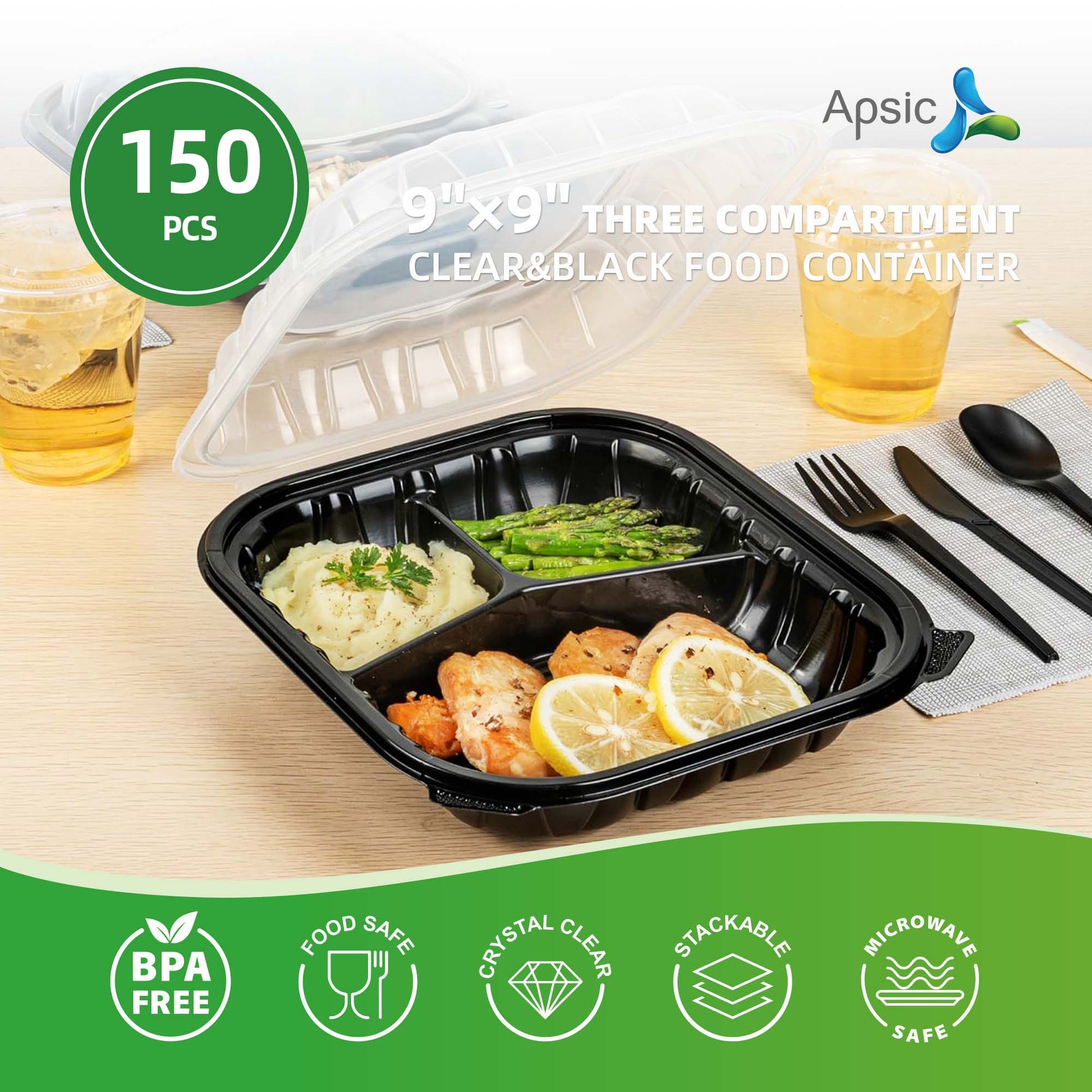 9"×9" THREE COMPARTMENT CLEAR&BLACK FOOD CONTAINER