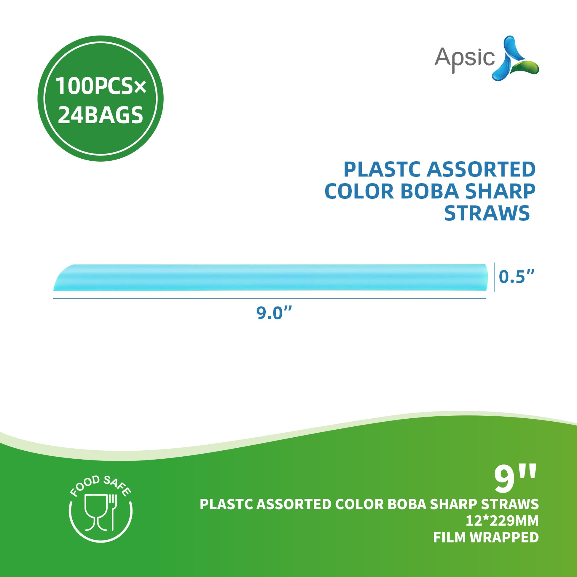 9" PLASTC ASSORTED COLOR BOBA SHARP STRAWS 12*229mm FILM WRAPPED