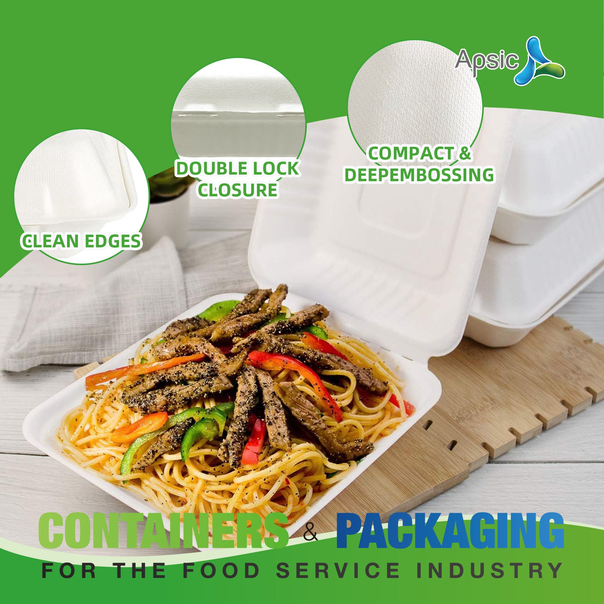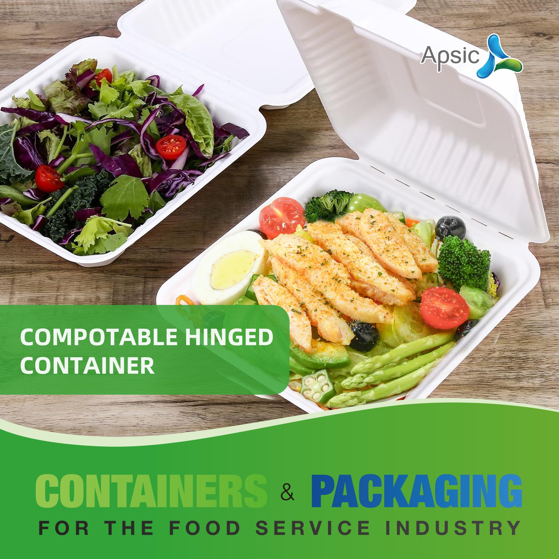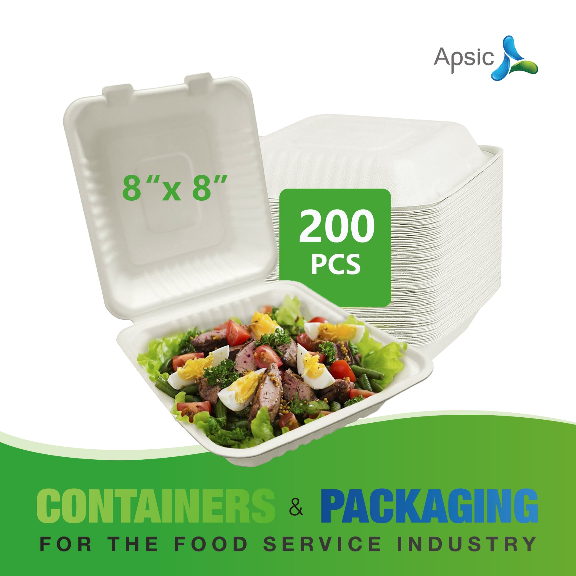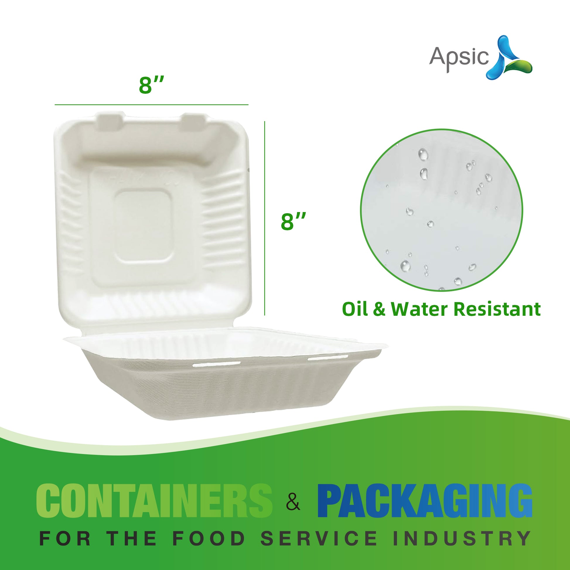 COMPOTABLE HINGED CONTAINER 8x8" BAGASSE PFAS FREE