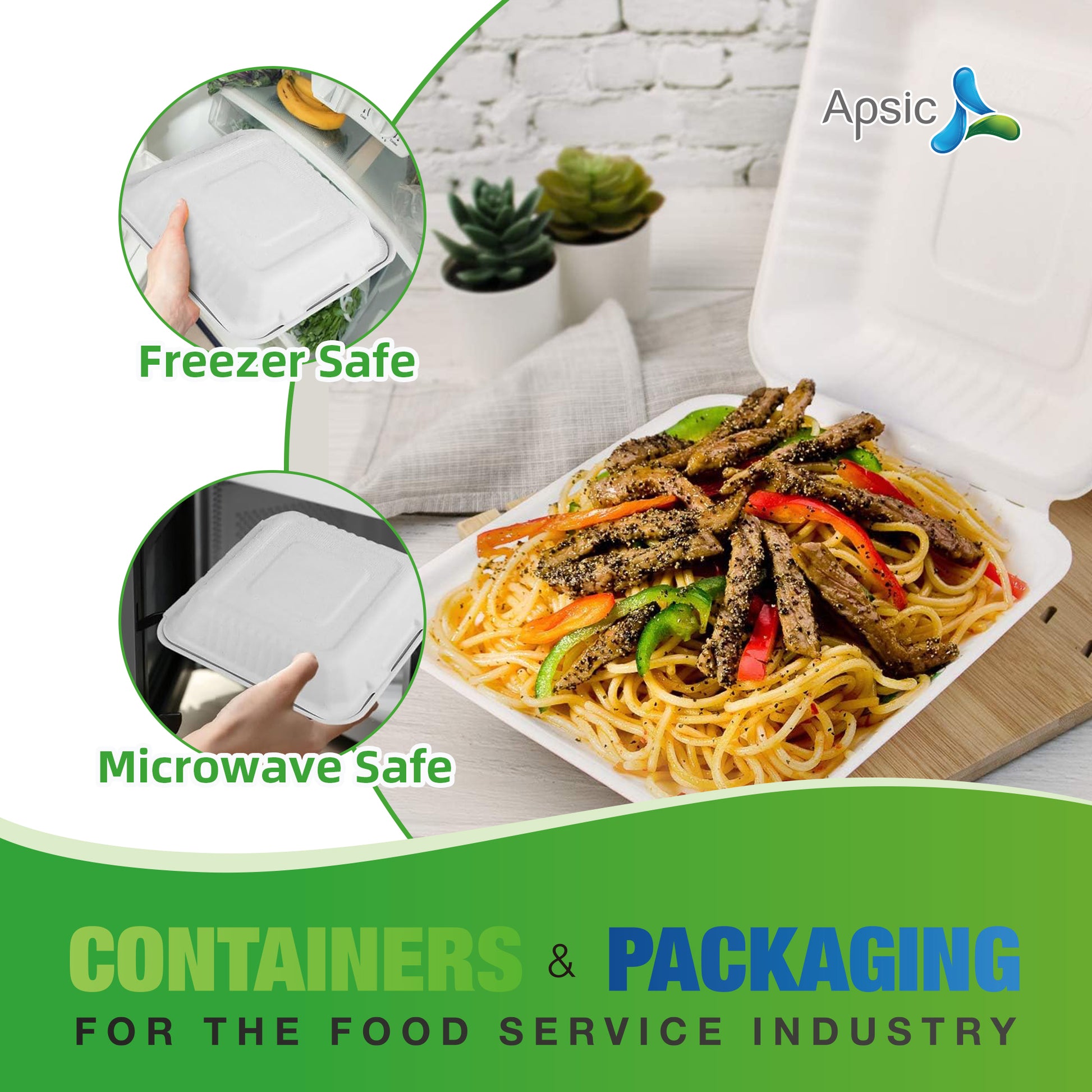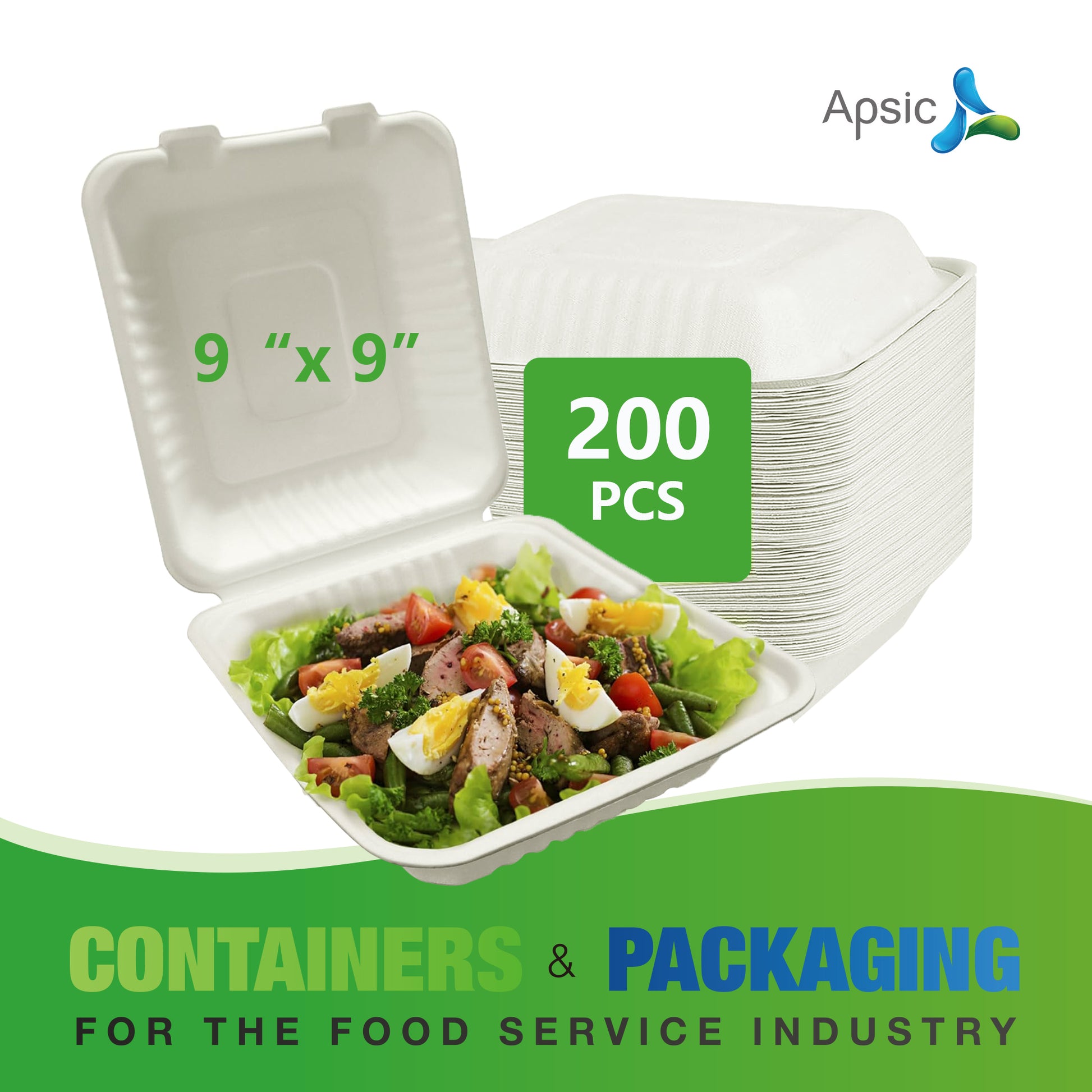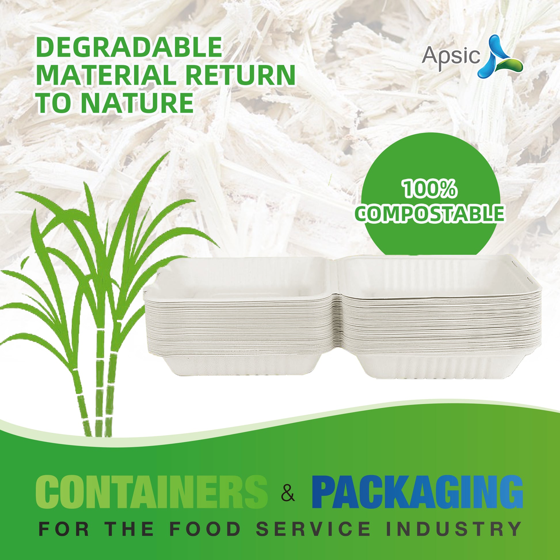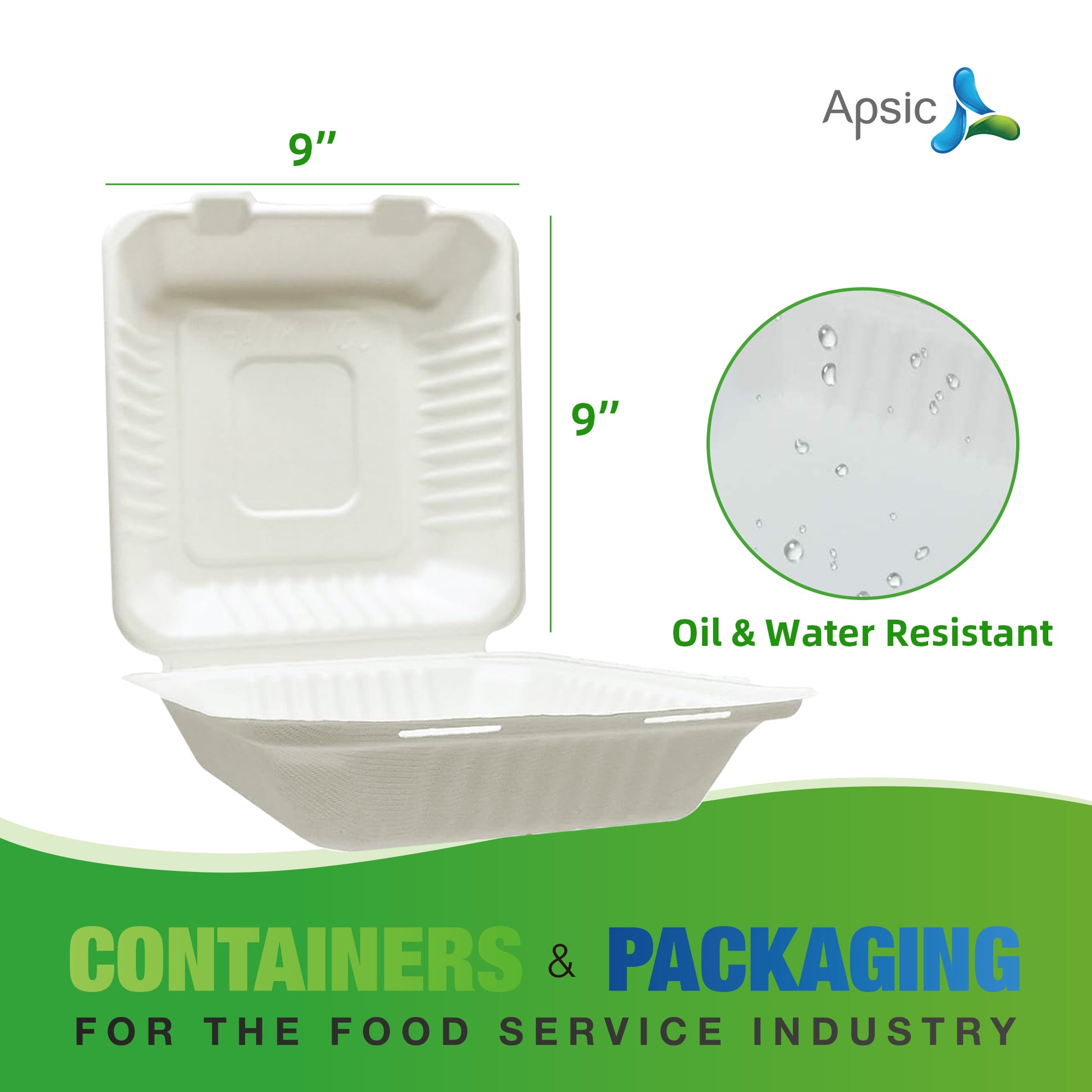 COMPOTABLE HINGED CONTAINER 9x9" BAGASSE PFAS FREE