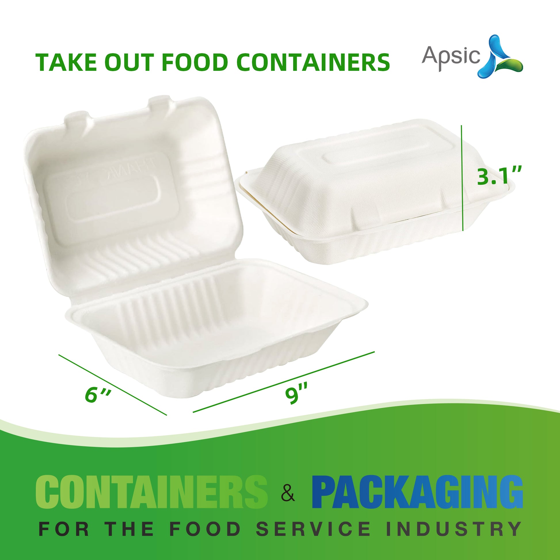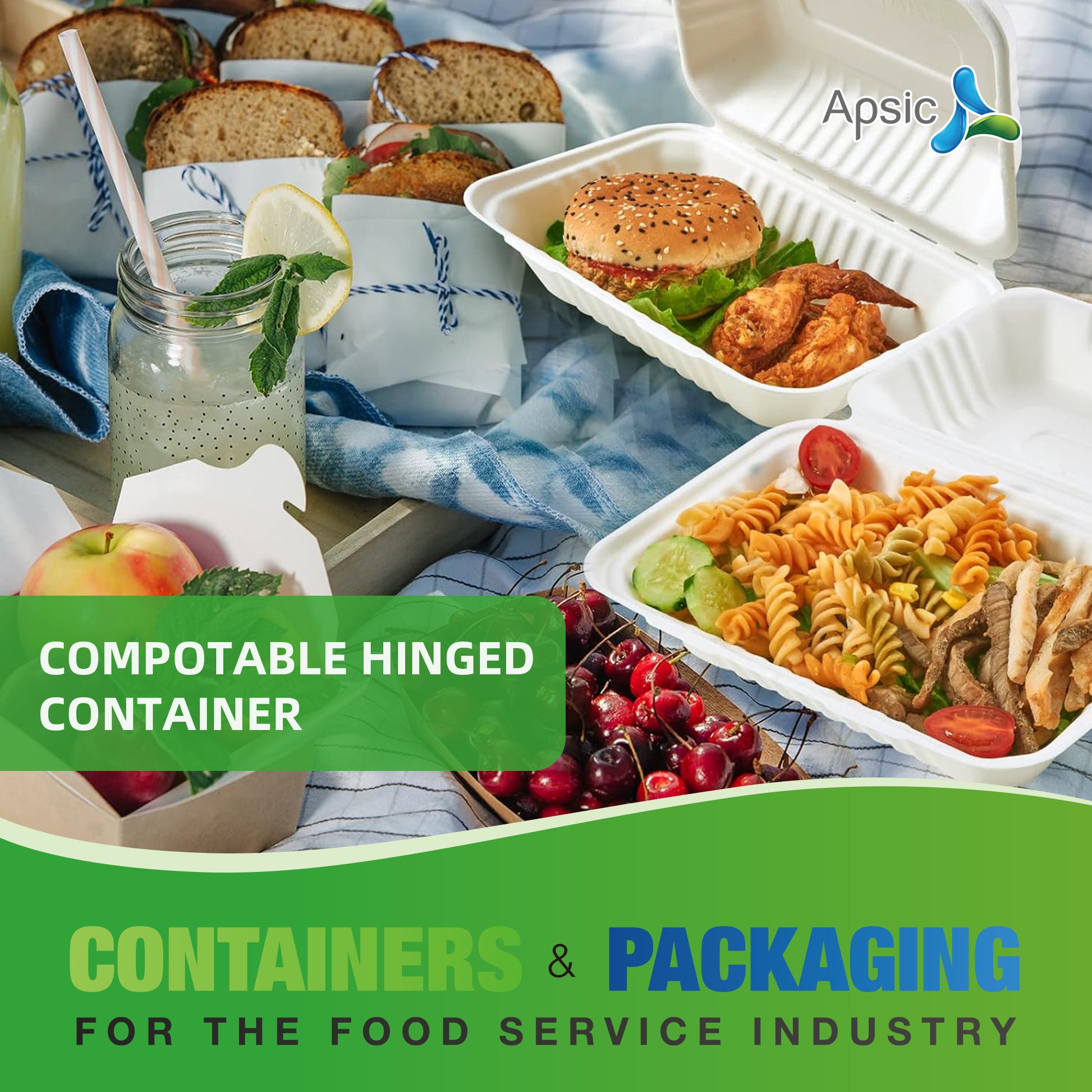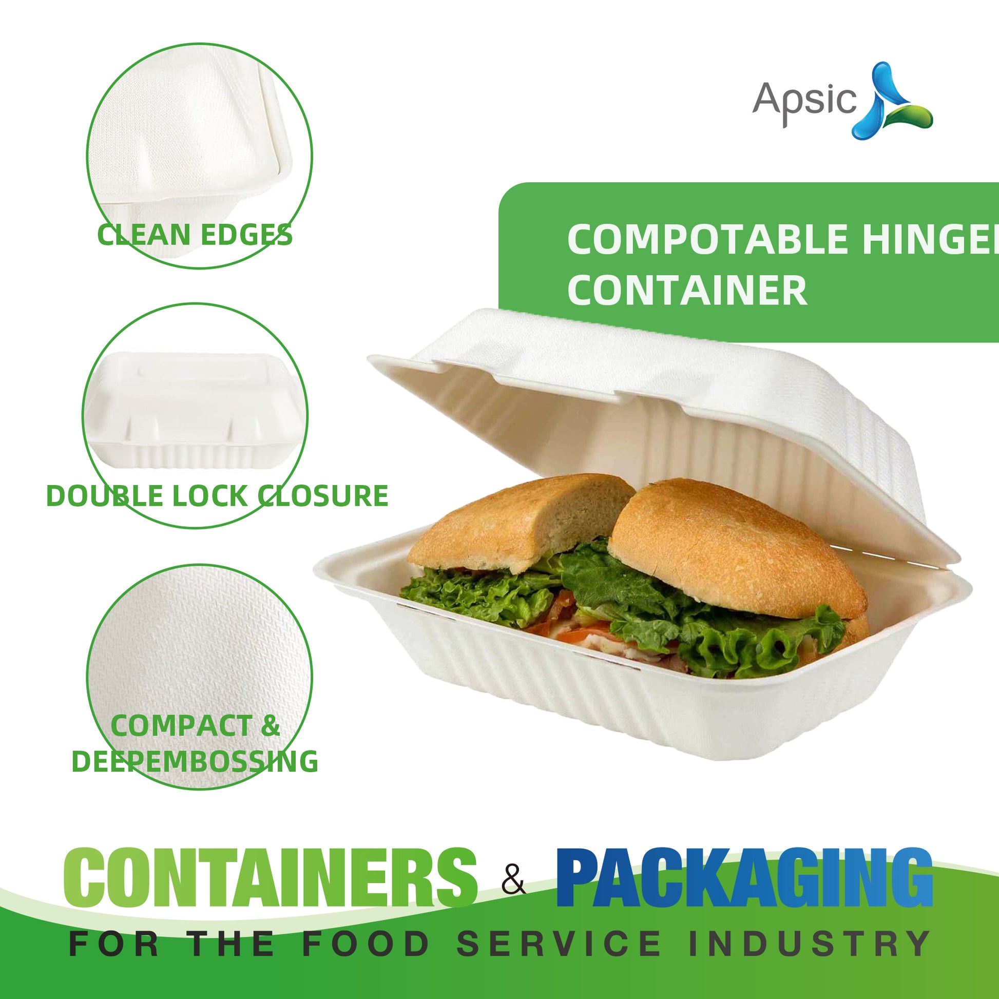 COMPOTABLE HINGED CONTAINER 9x6" BAGASSE PFAS FREE