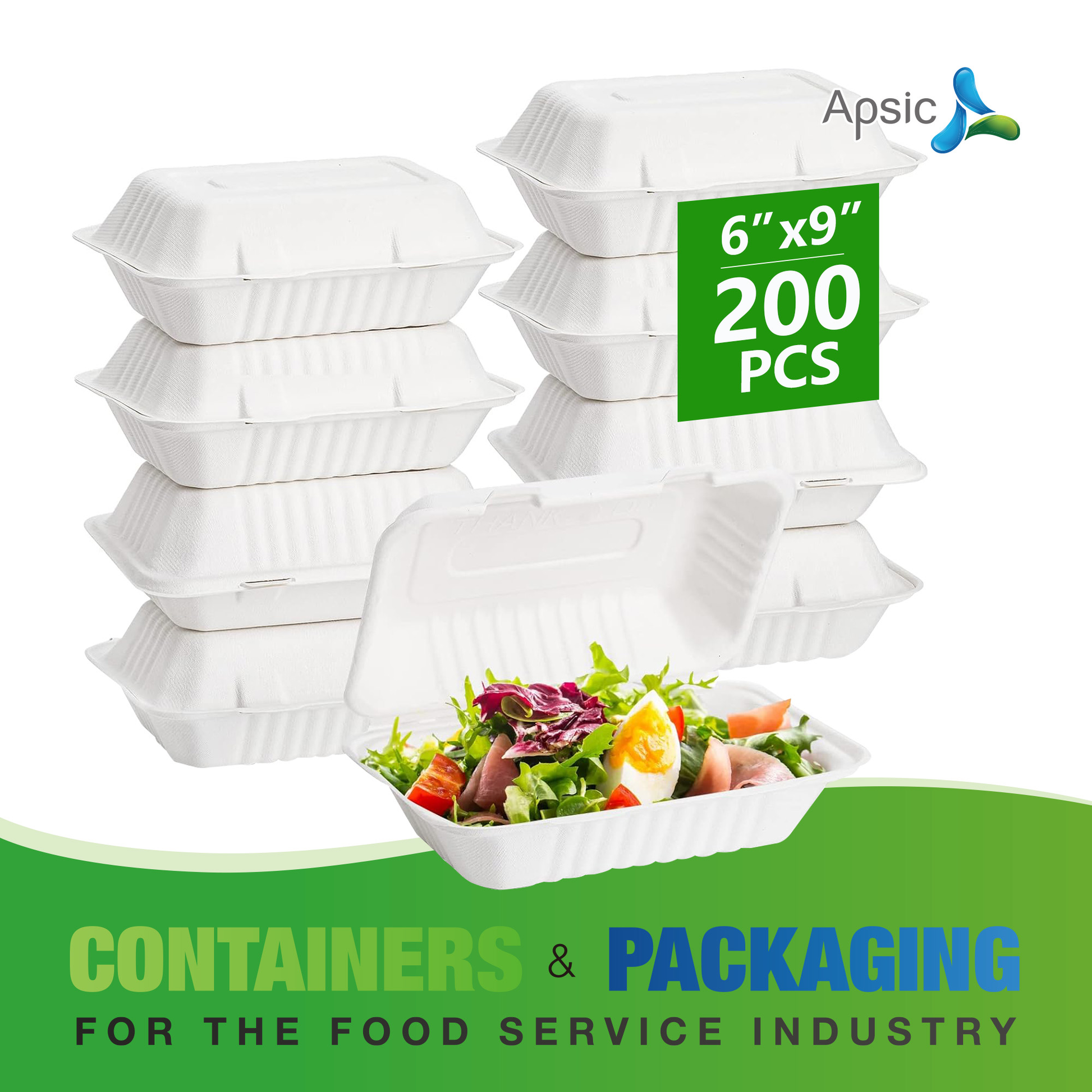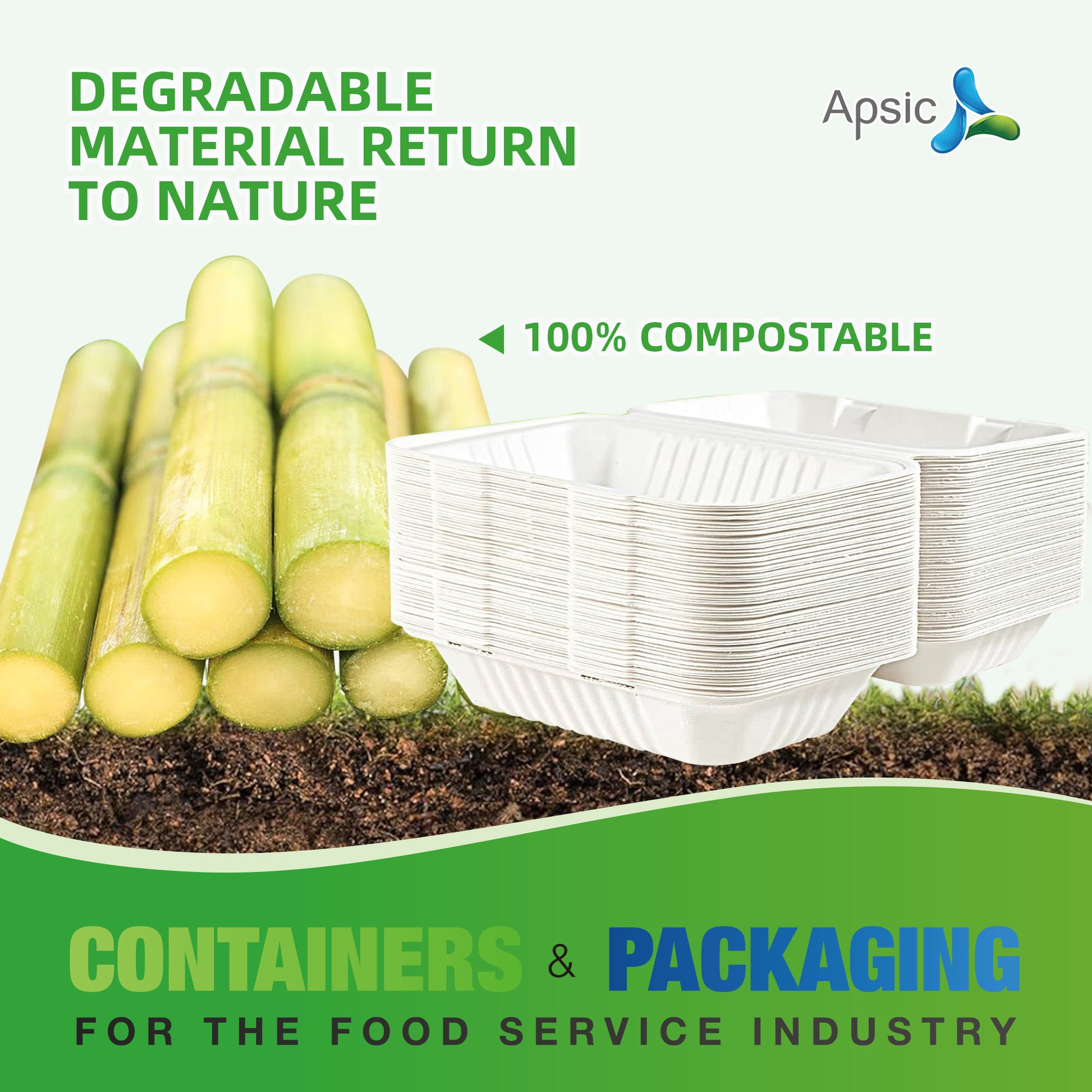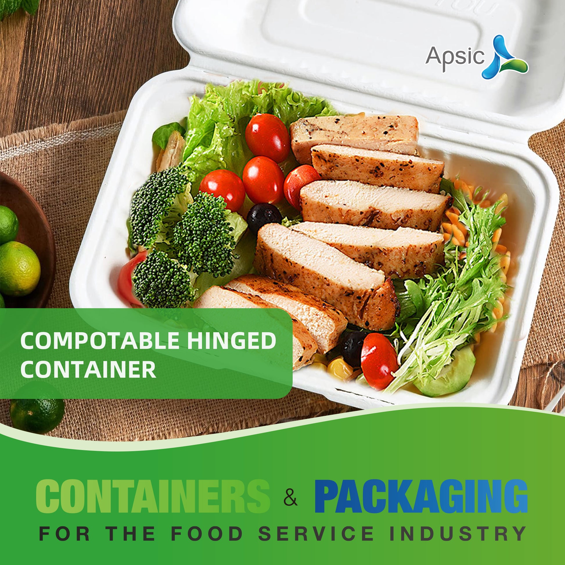 COMPOTABLE HINGED CONTAINER 9x6" BAGASSE PFAS FREE
