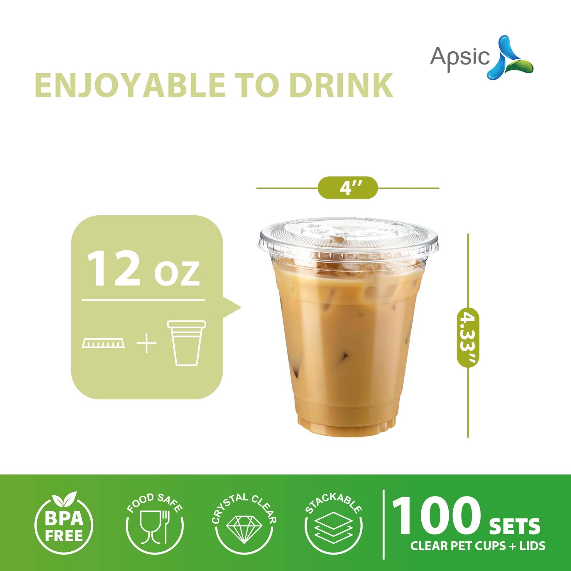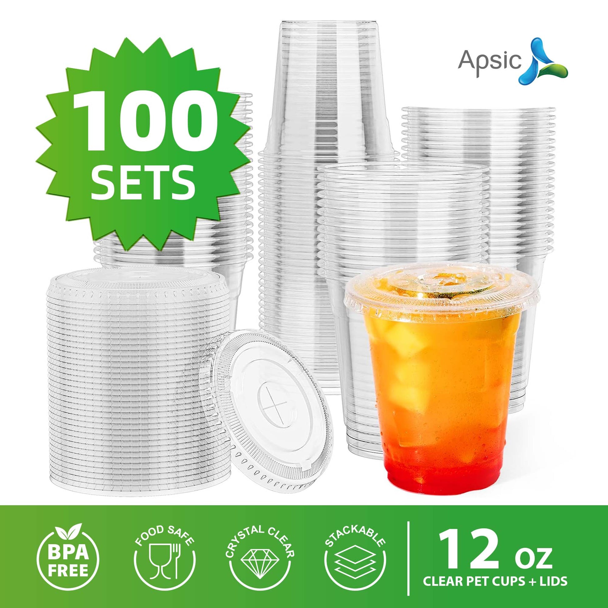 12 OZ PET CUP+FLAT LIDS 100 SETS