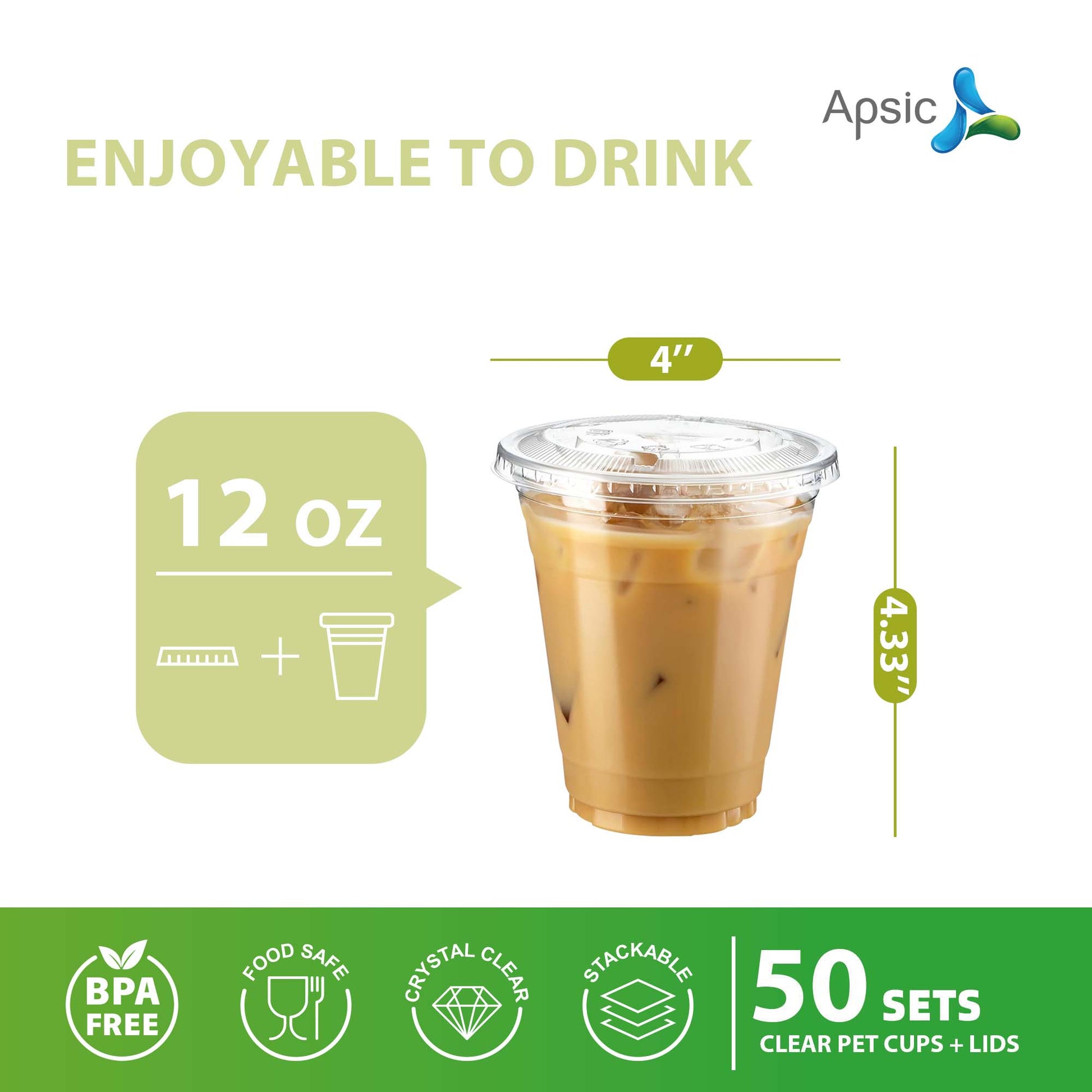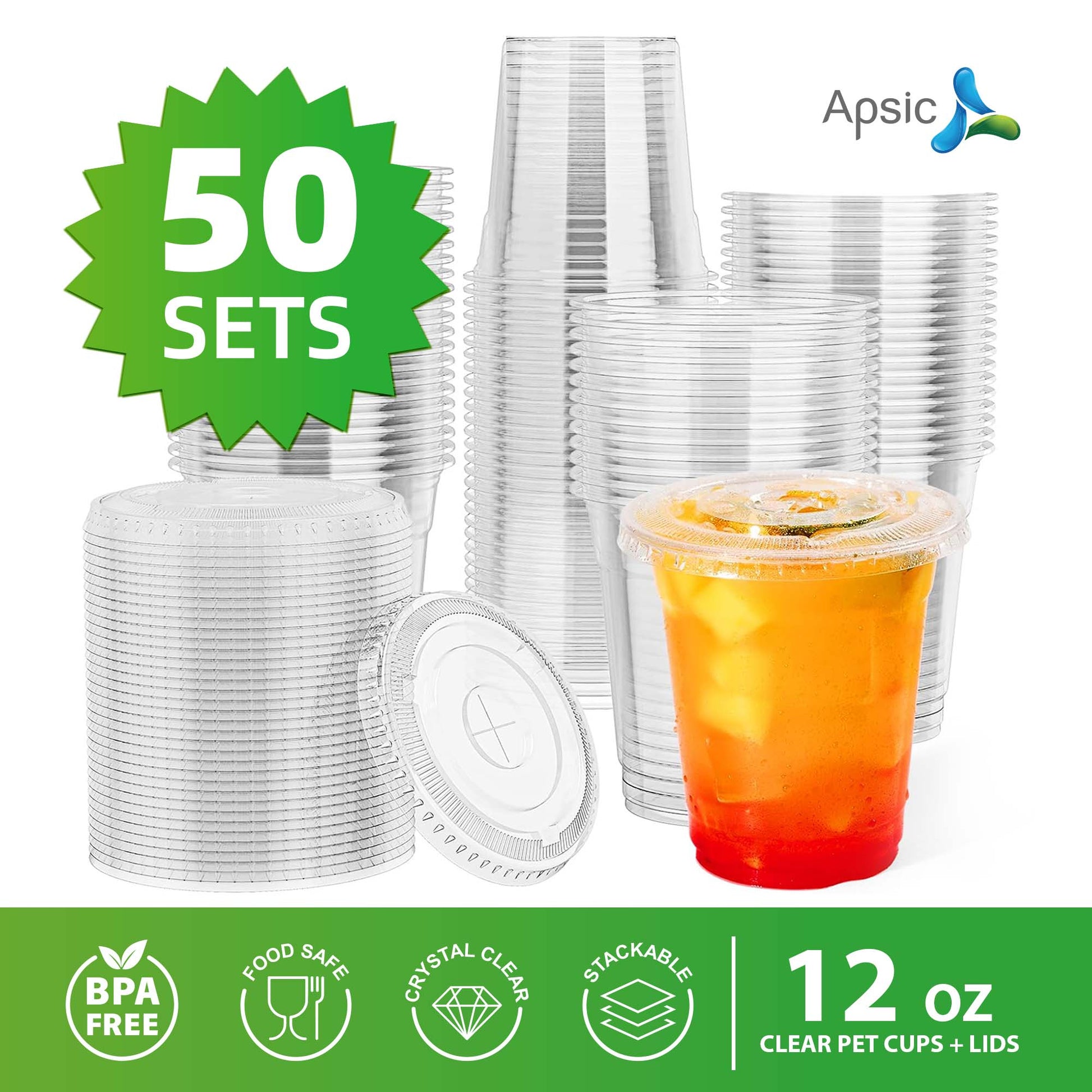 12 OZ PET CUP+FLAT LIDS 50 SETS