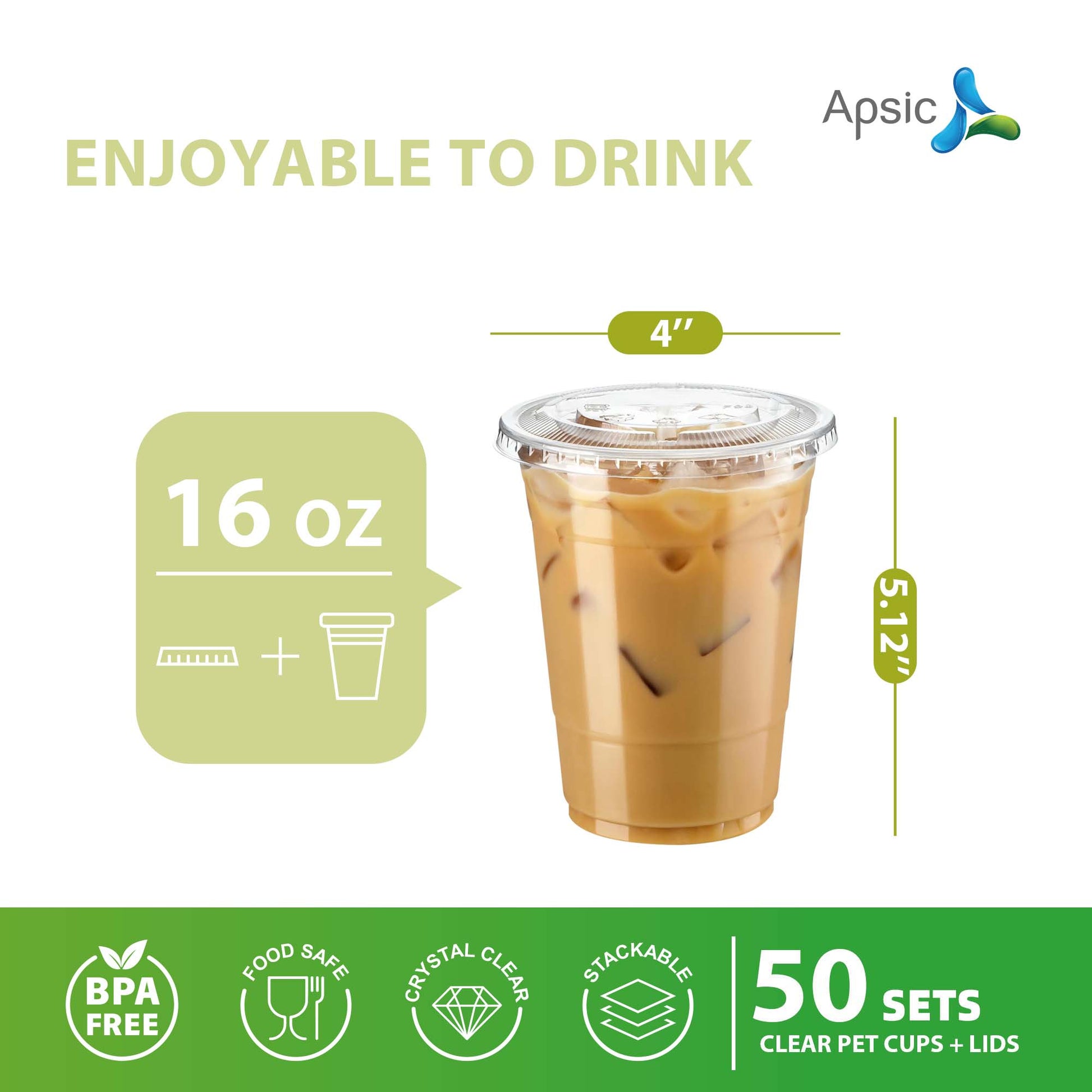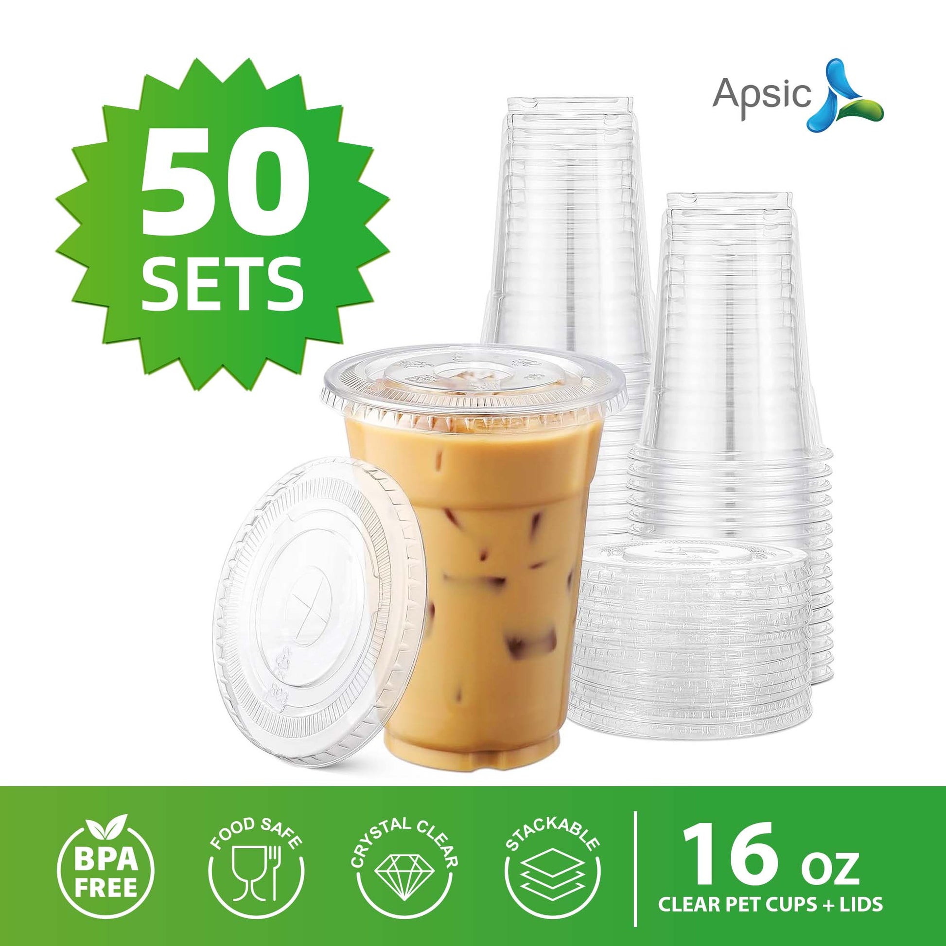 16 OZ PET CUP+FLAT LIDS 50 SETS