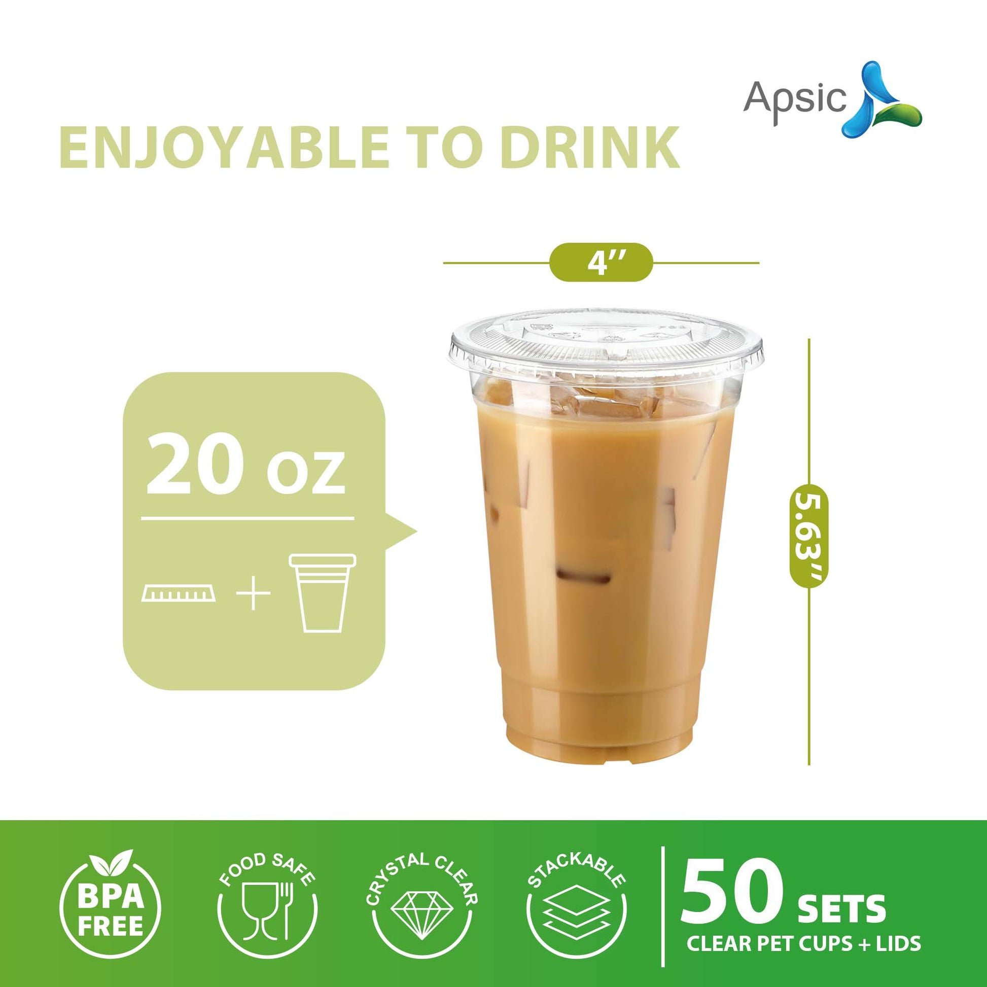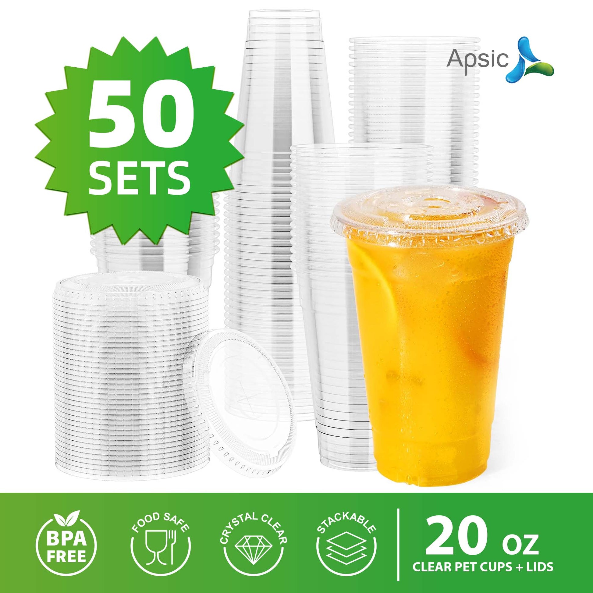 20 OZ PET CUP+FLAT LIDS 50 SETS