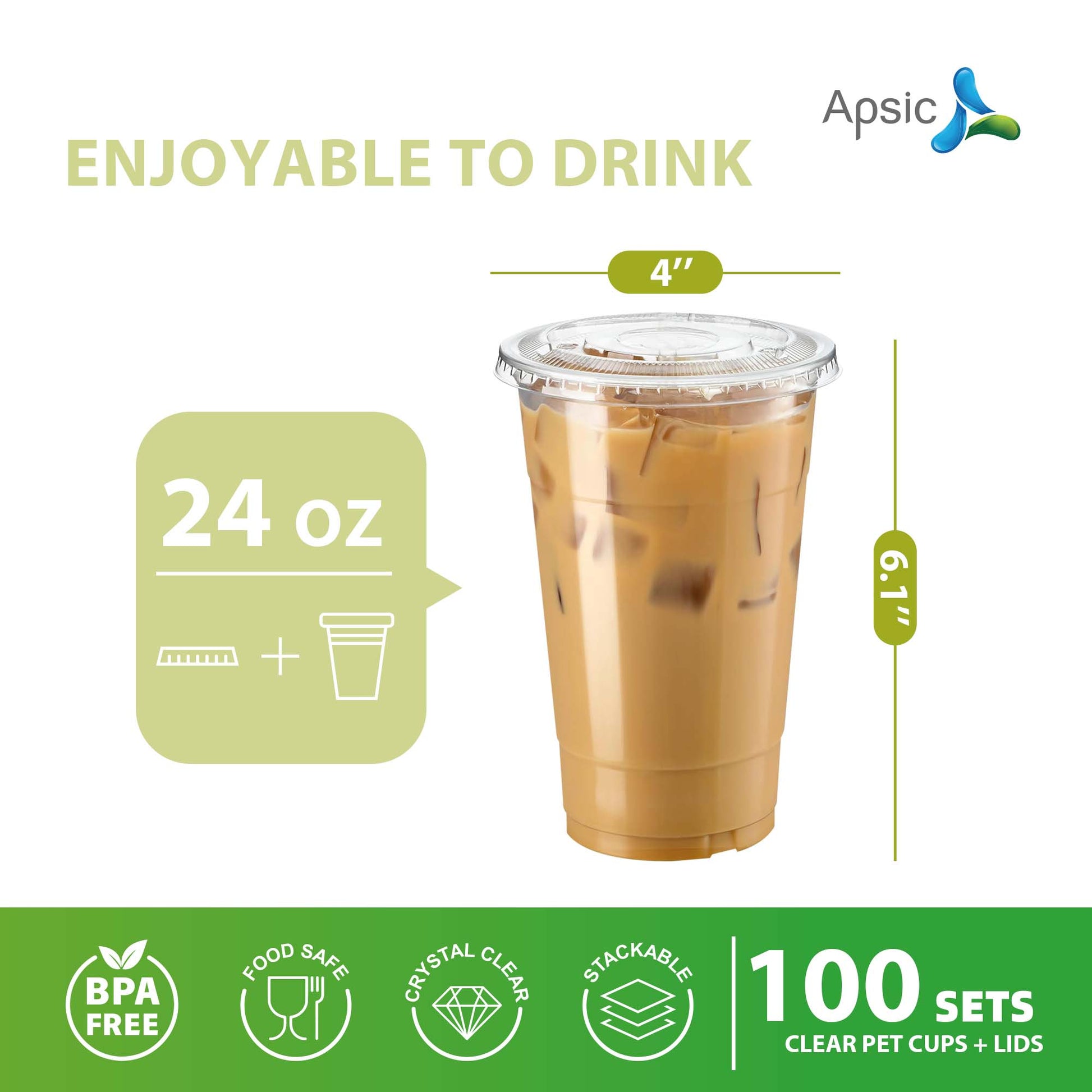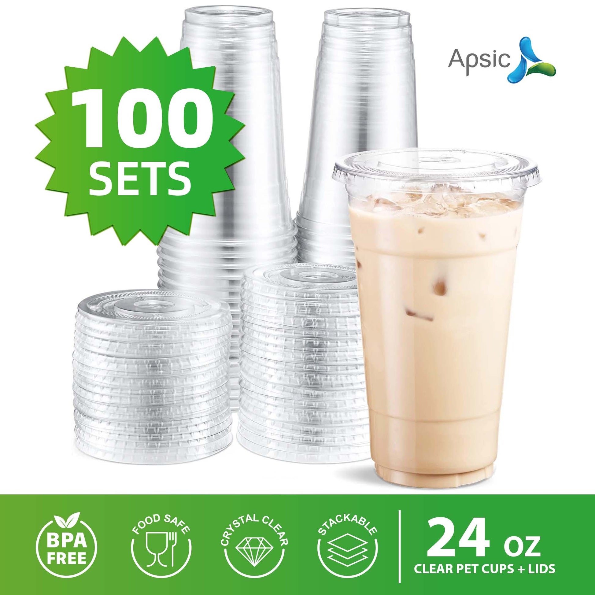 24 OZ PET CUP+FLAT FLAT LIDS 100 SETS