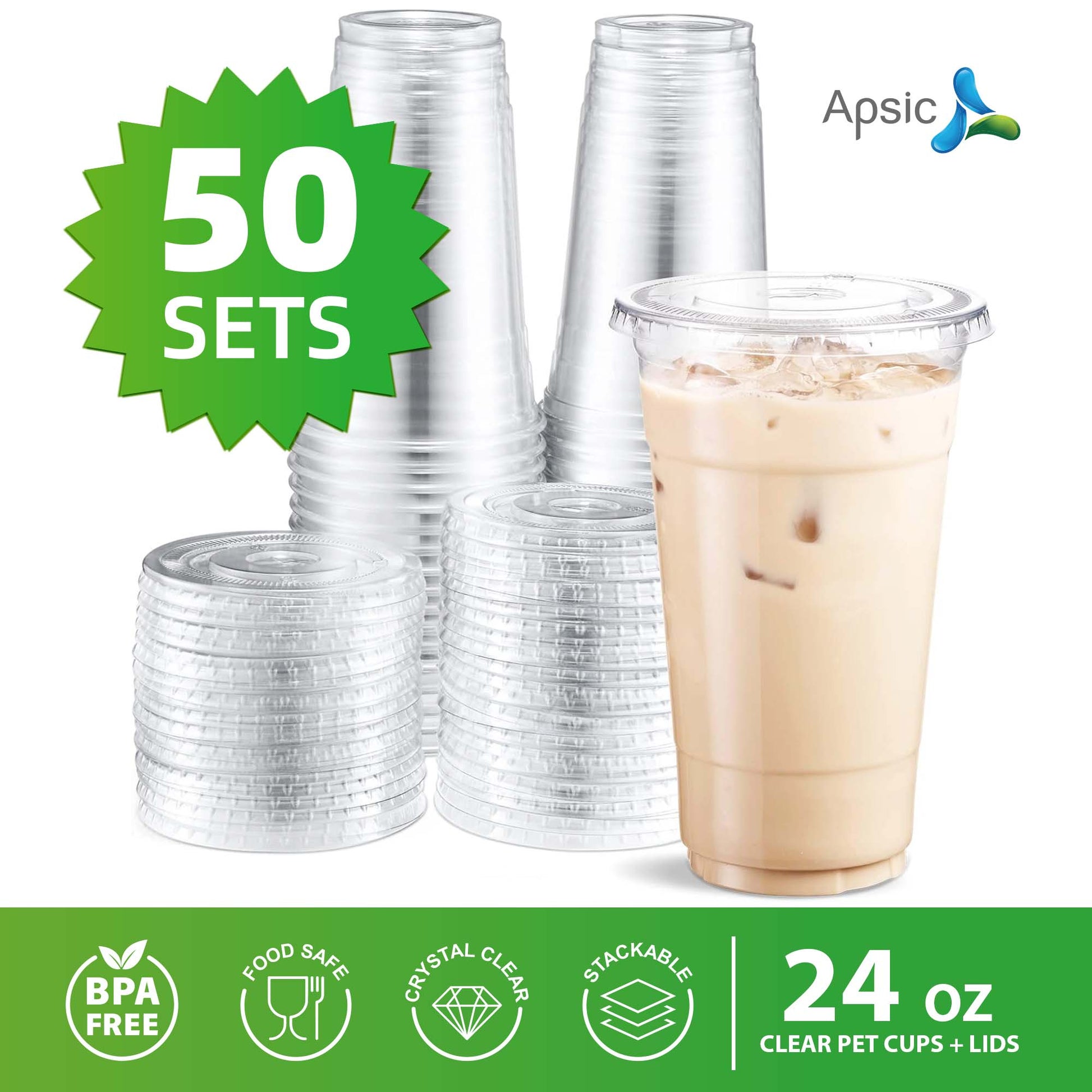 24 OZ PET CUP+FLAT FLAT LIDS 50 SETS