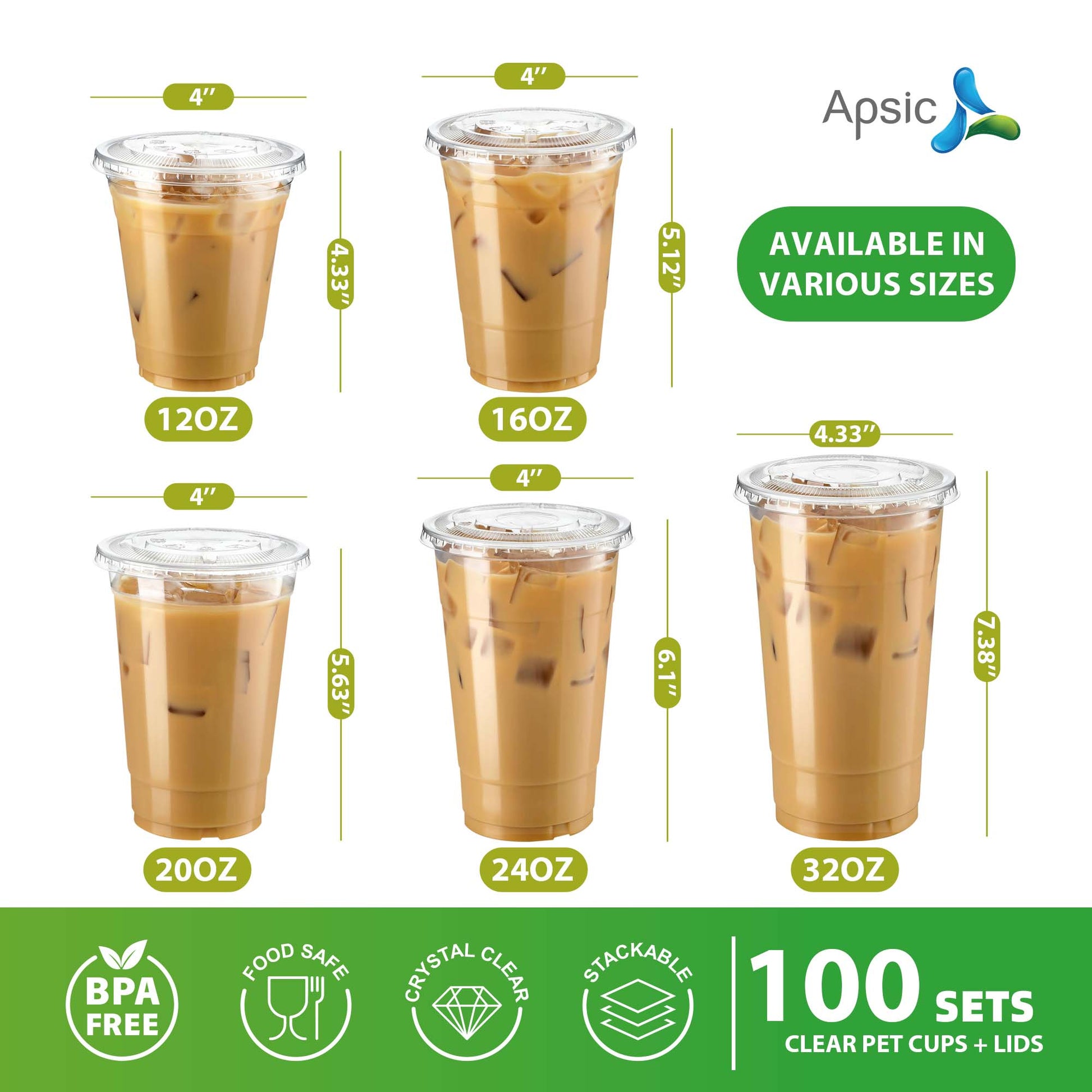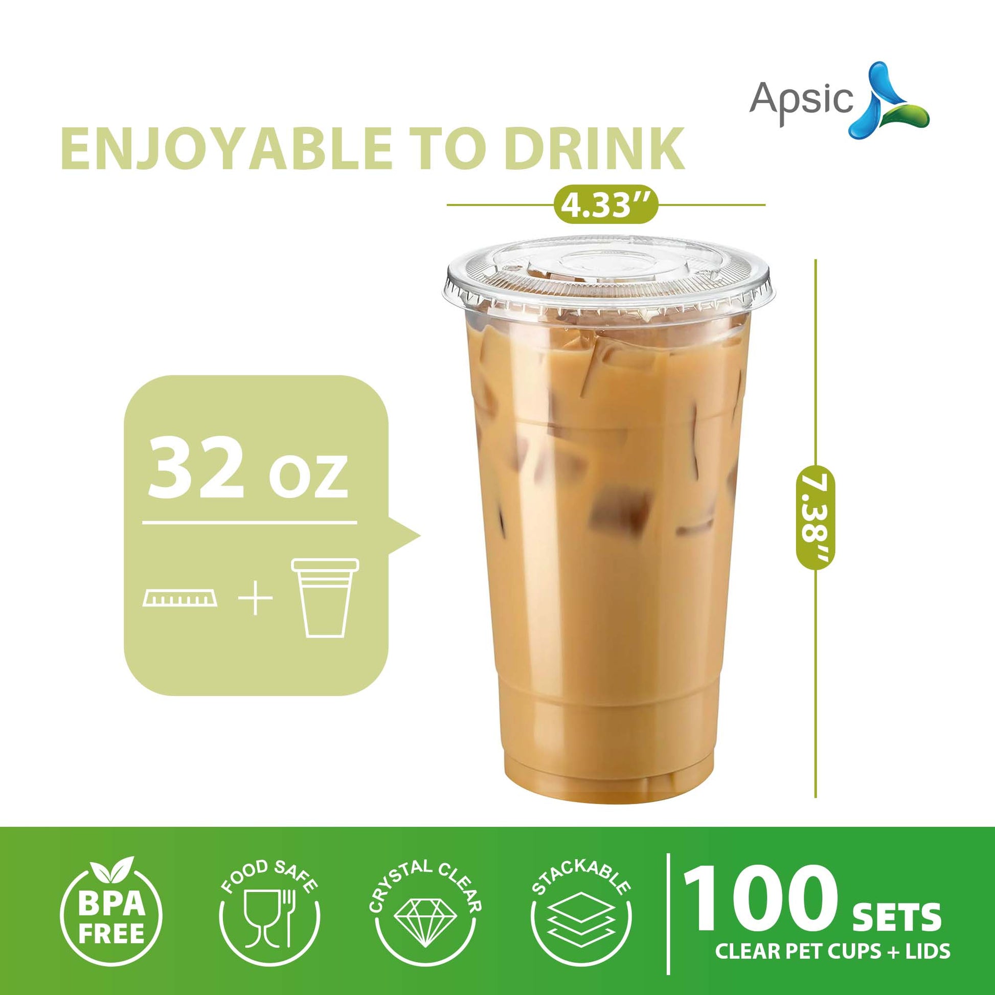 32 OZ PET CUP+FLAT FLAT LIDS 100 SETS