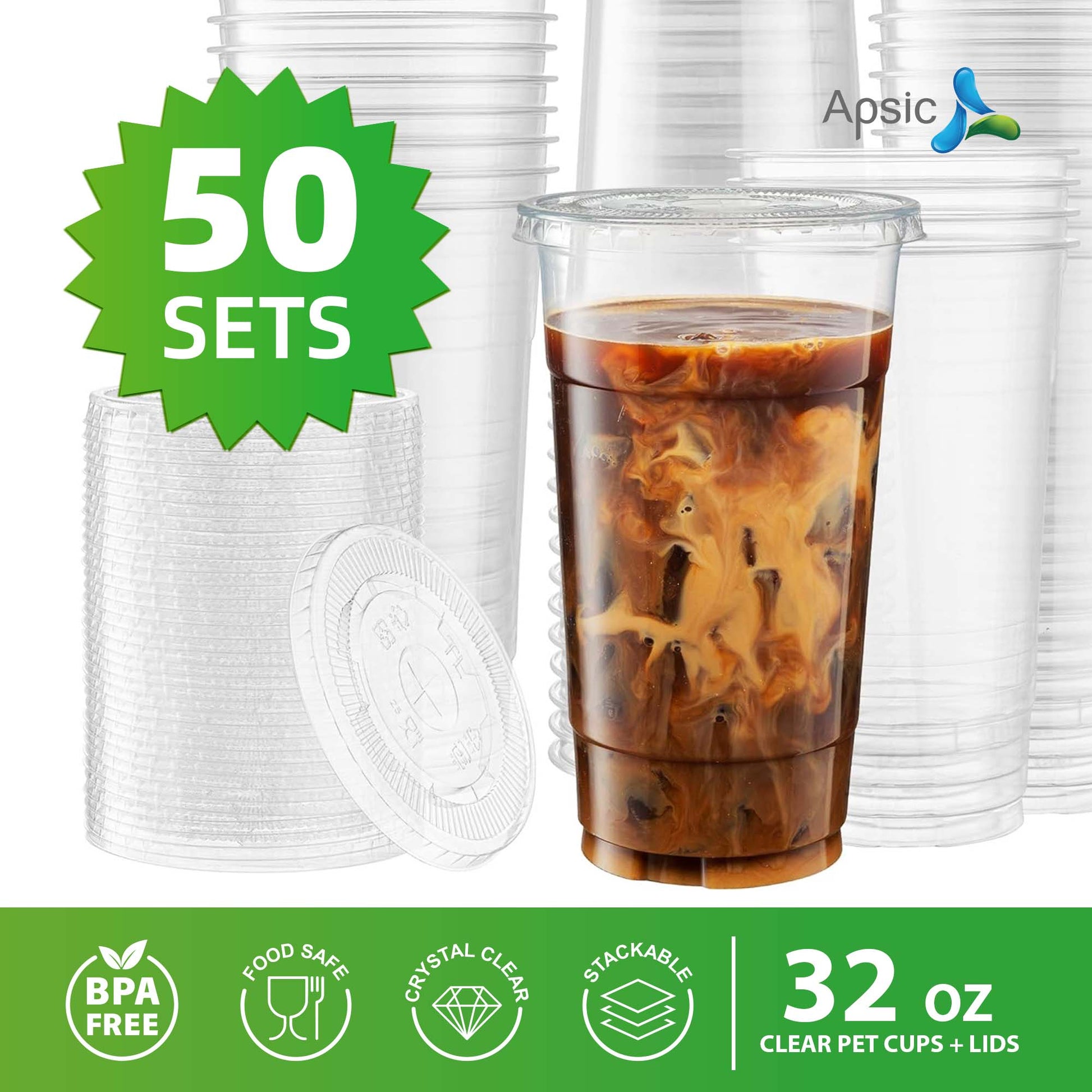 32 OZ PET CUP+FLAT FLAT LIDS 50 SETS