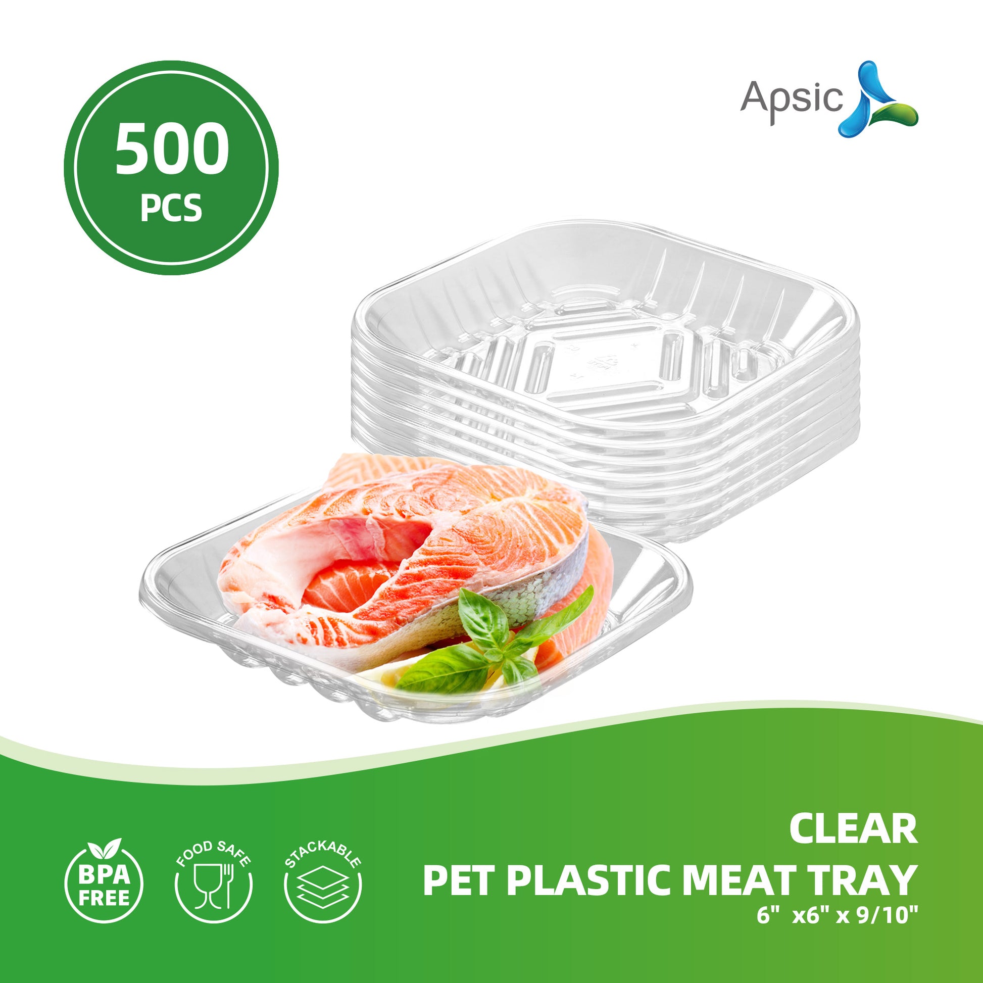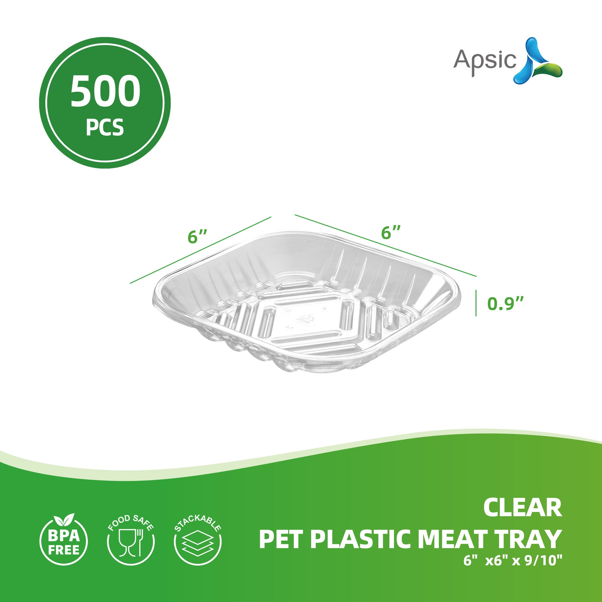 CLEAR PET PLASTIC MEAT TRAY 6" x6" x 9/10"