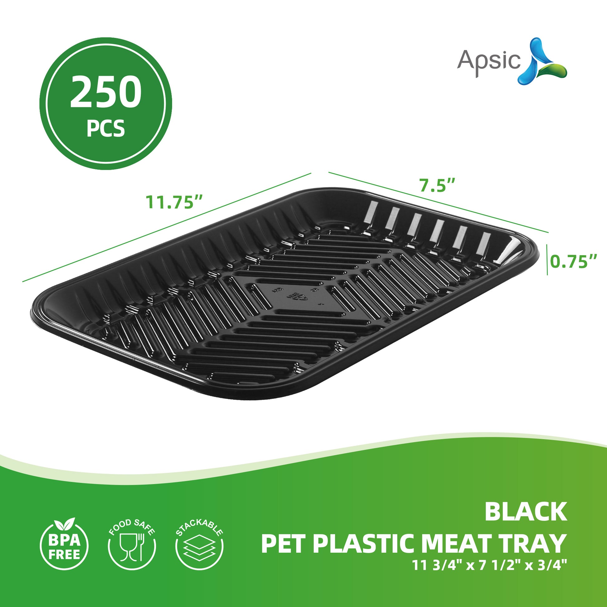 BLACK PET PLASTIC MEAT TRAY 11 3/4" x 7 1/2" x 3/4"