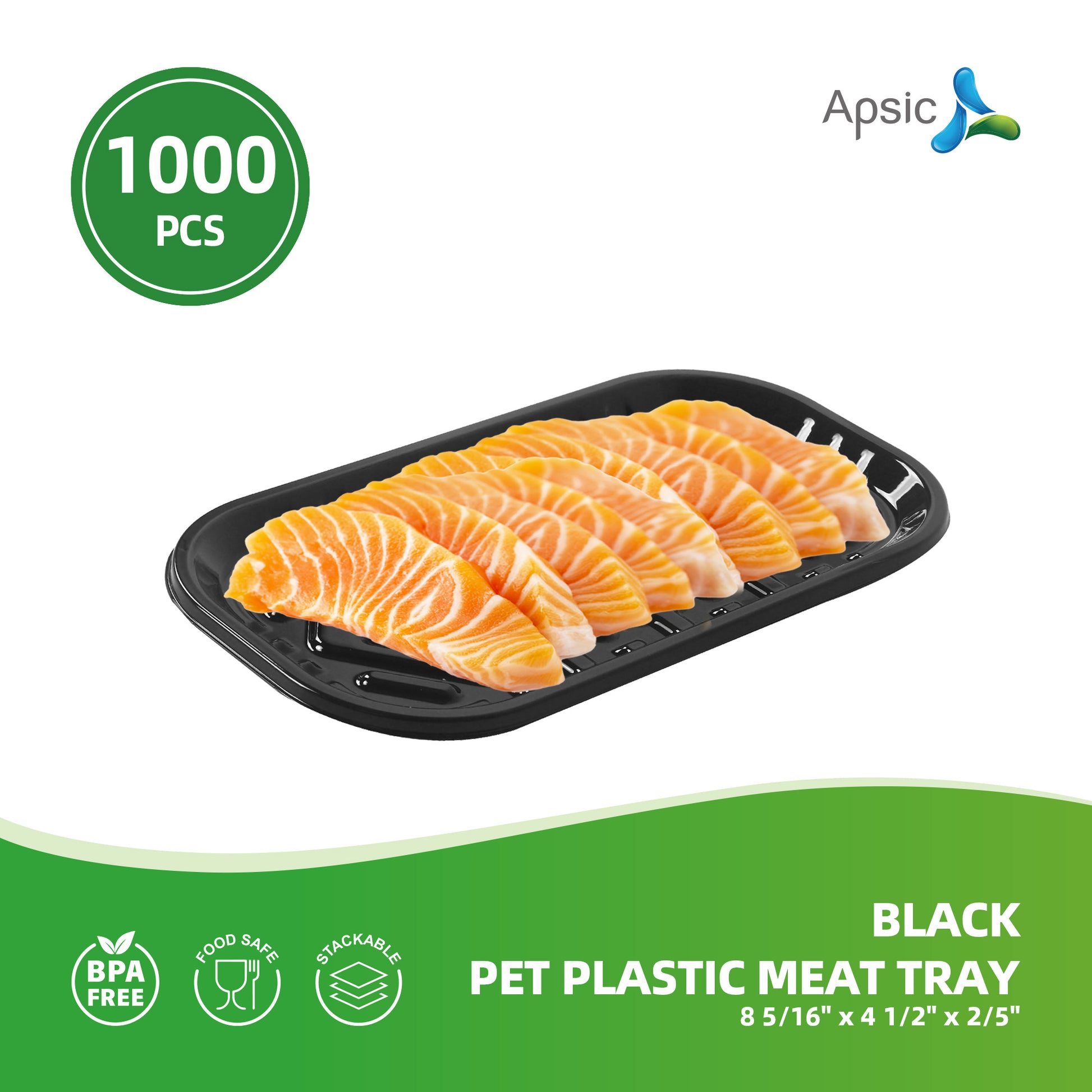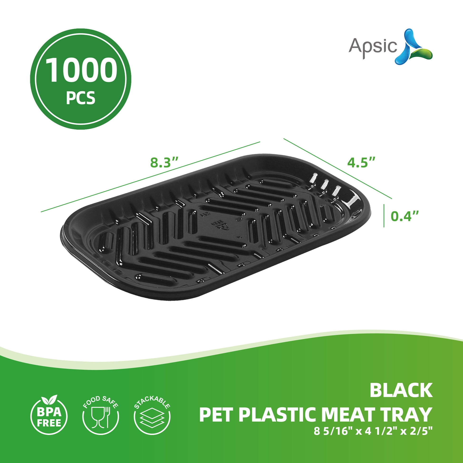 BLACK PET PLASTIC MEAT TRAY 8 5/16" x 4 1/2" x 2/5"
