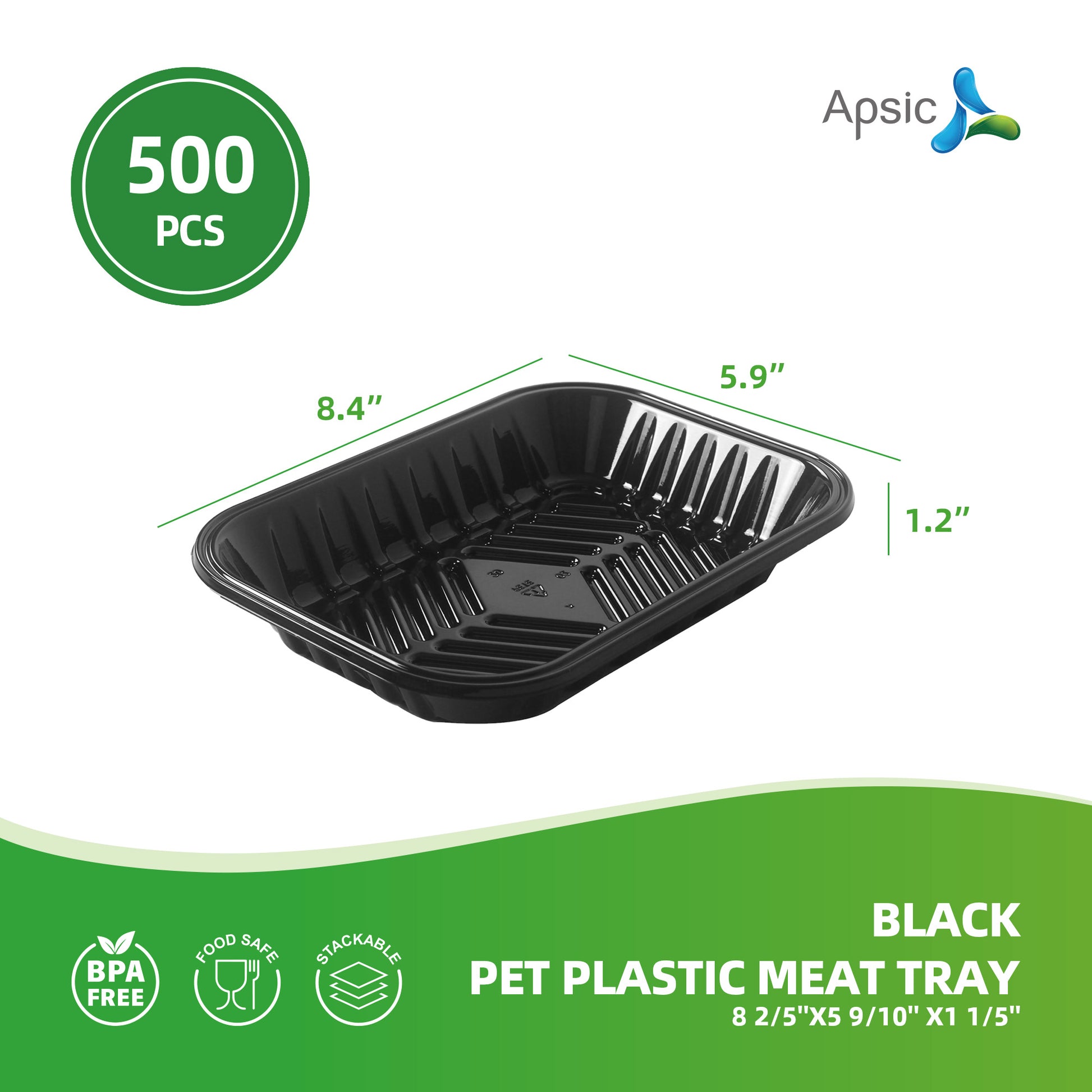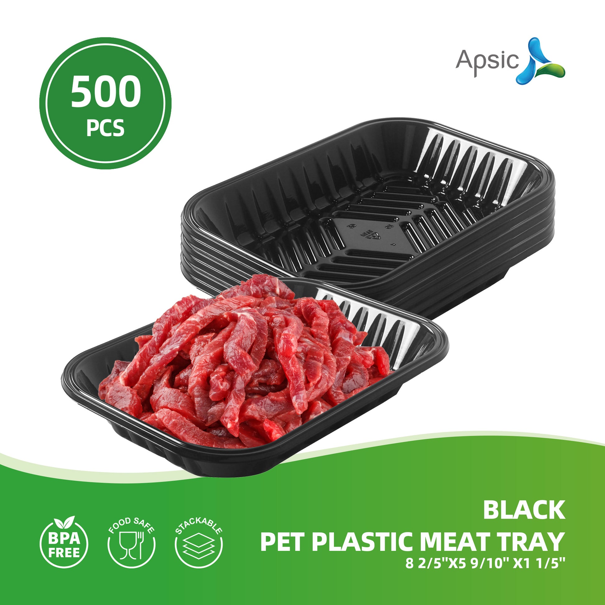 BLACK PET PLASTIC MEAT TRAY 8 2/5''X5 9/10'' X1 1/5''