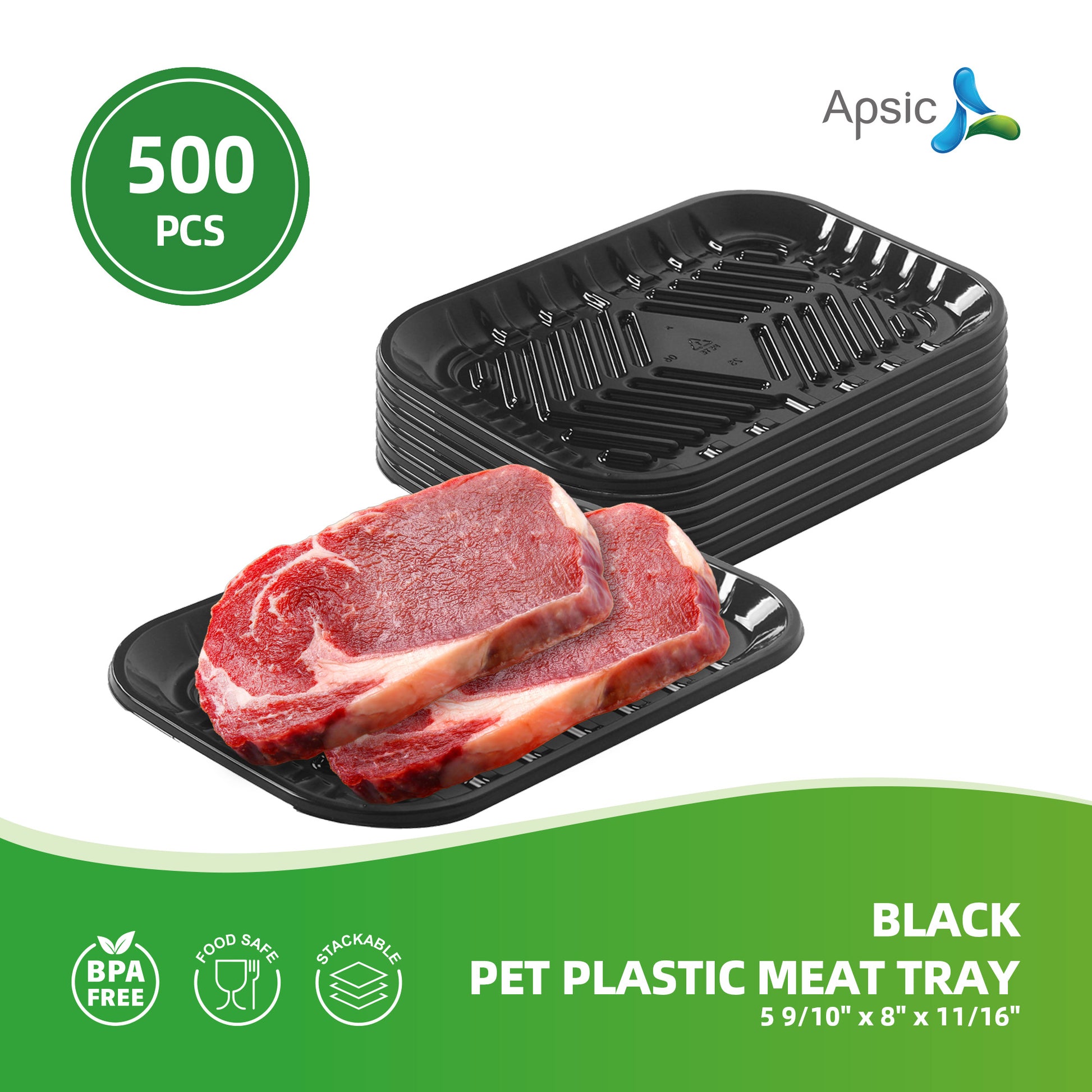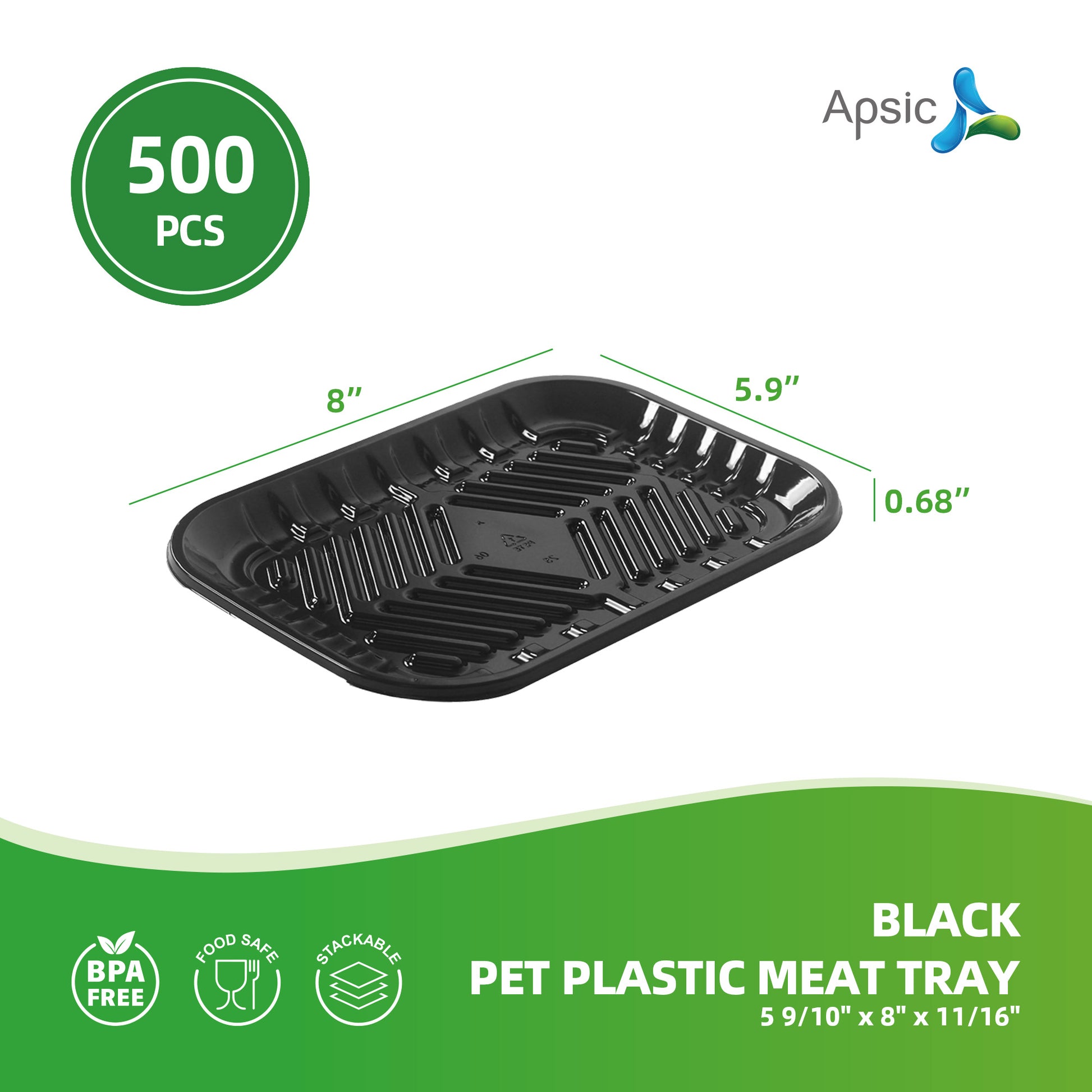 BLACK PET PLASTIC MEAT TRAY 5 9/10" x 8" x 11/16"