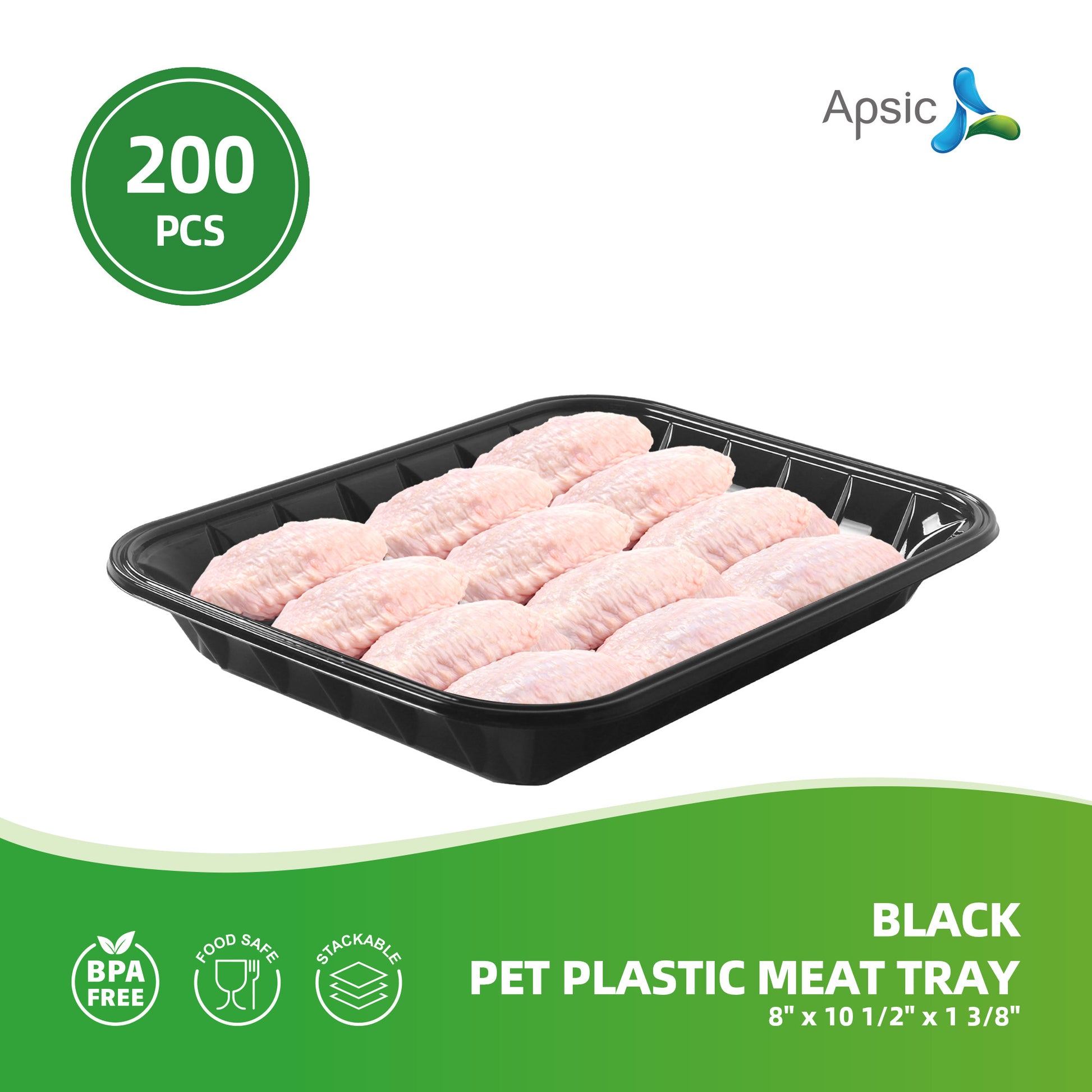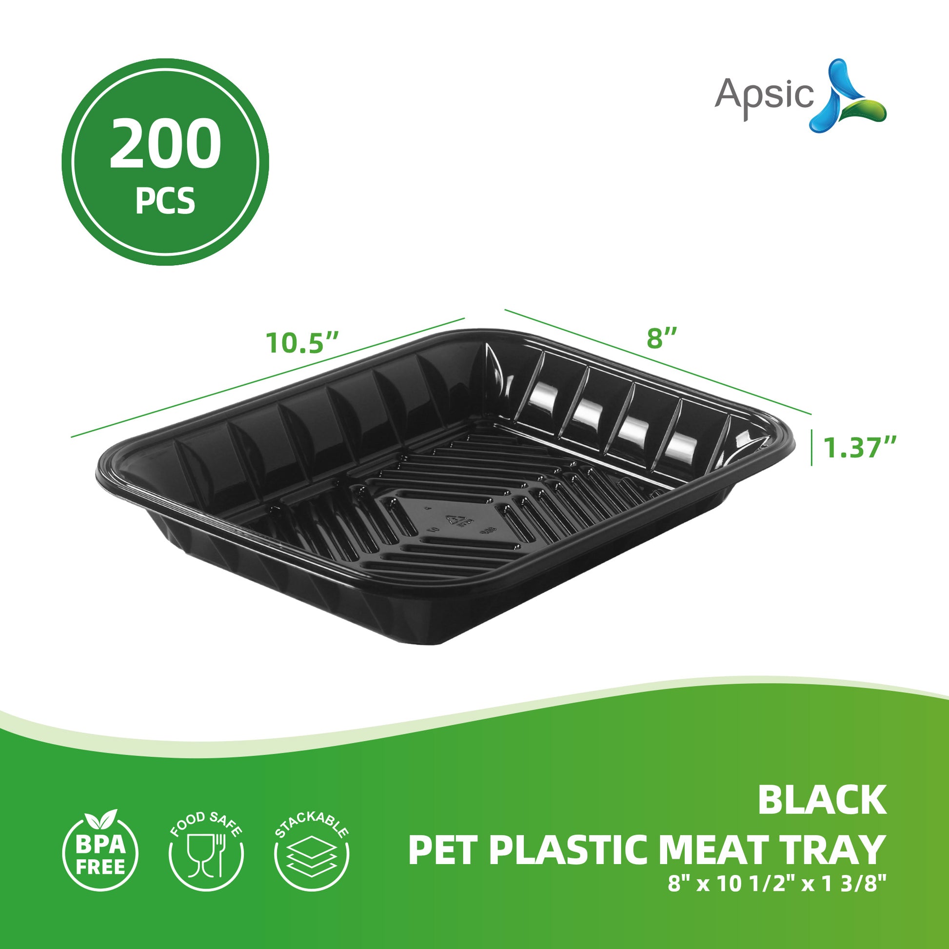 BLACK PET PLASTIC MEAT TRAY 8" x 10 1/2" x 1 3/8"