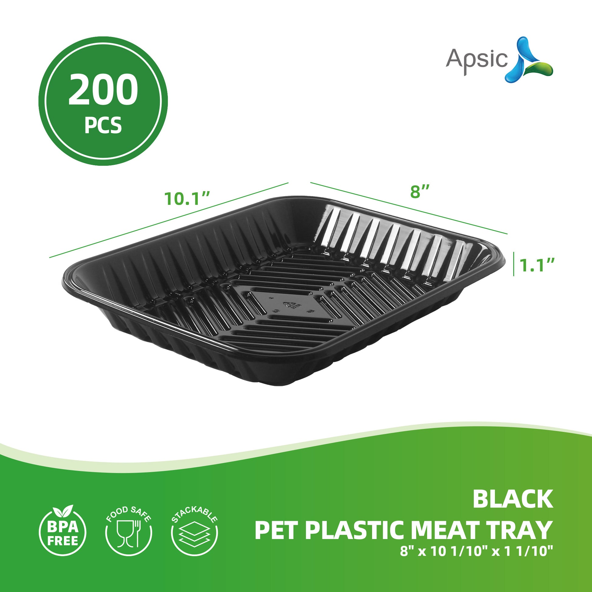 BLACK PET PLASTIC MEAT TRAY 8" x 10 1/10" x 1 1/10"