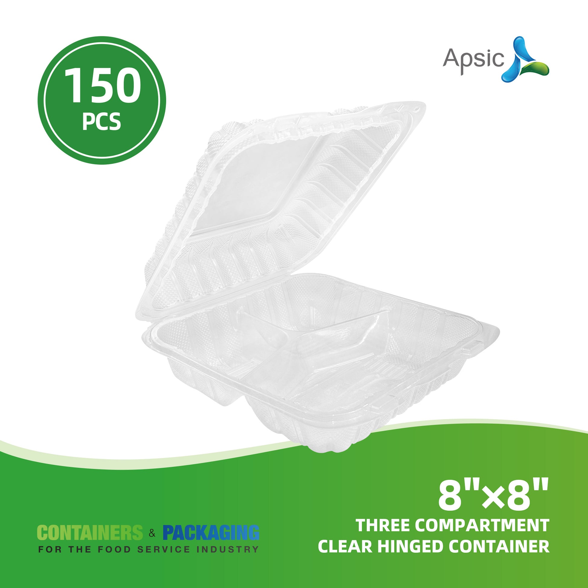 8"×8" THREE COMPARTMENT CLEAR HINGED CONTAINER