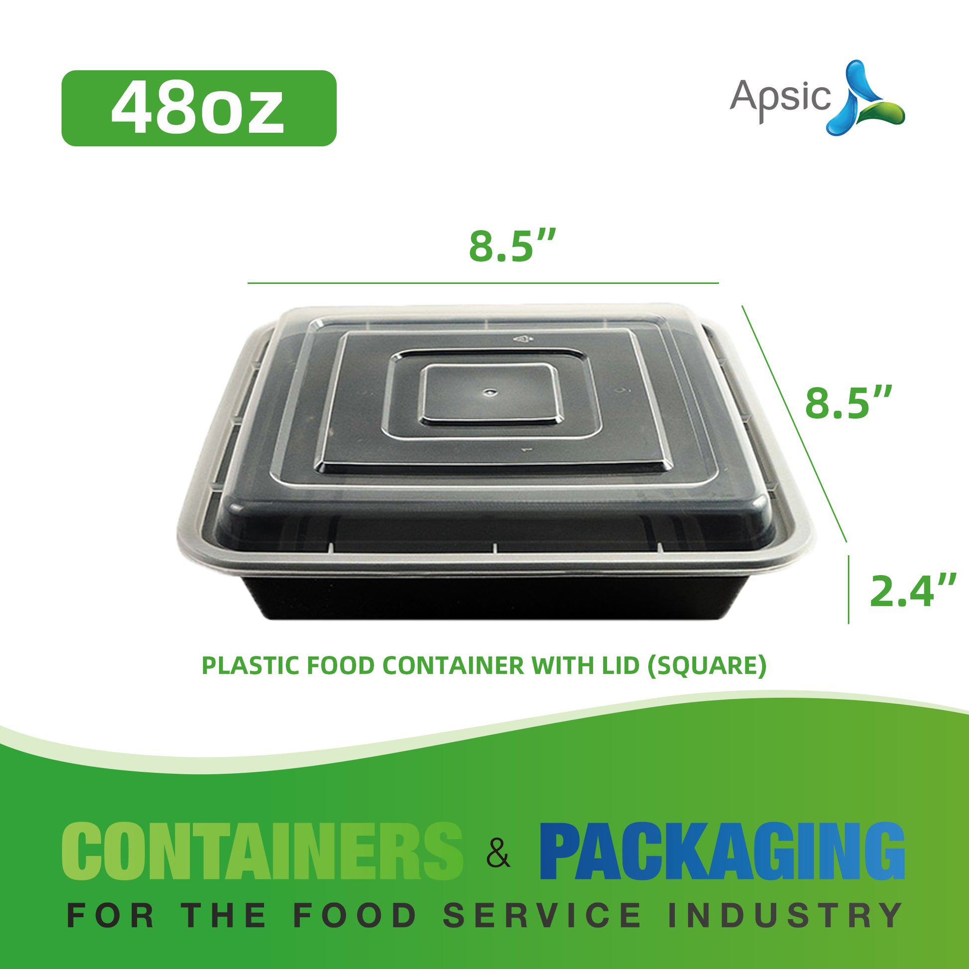 48OZ PLASTIC FOOD CONTAINER WITH LID (SQUARE)