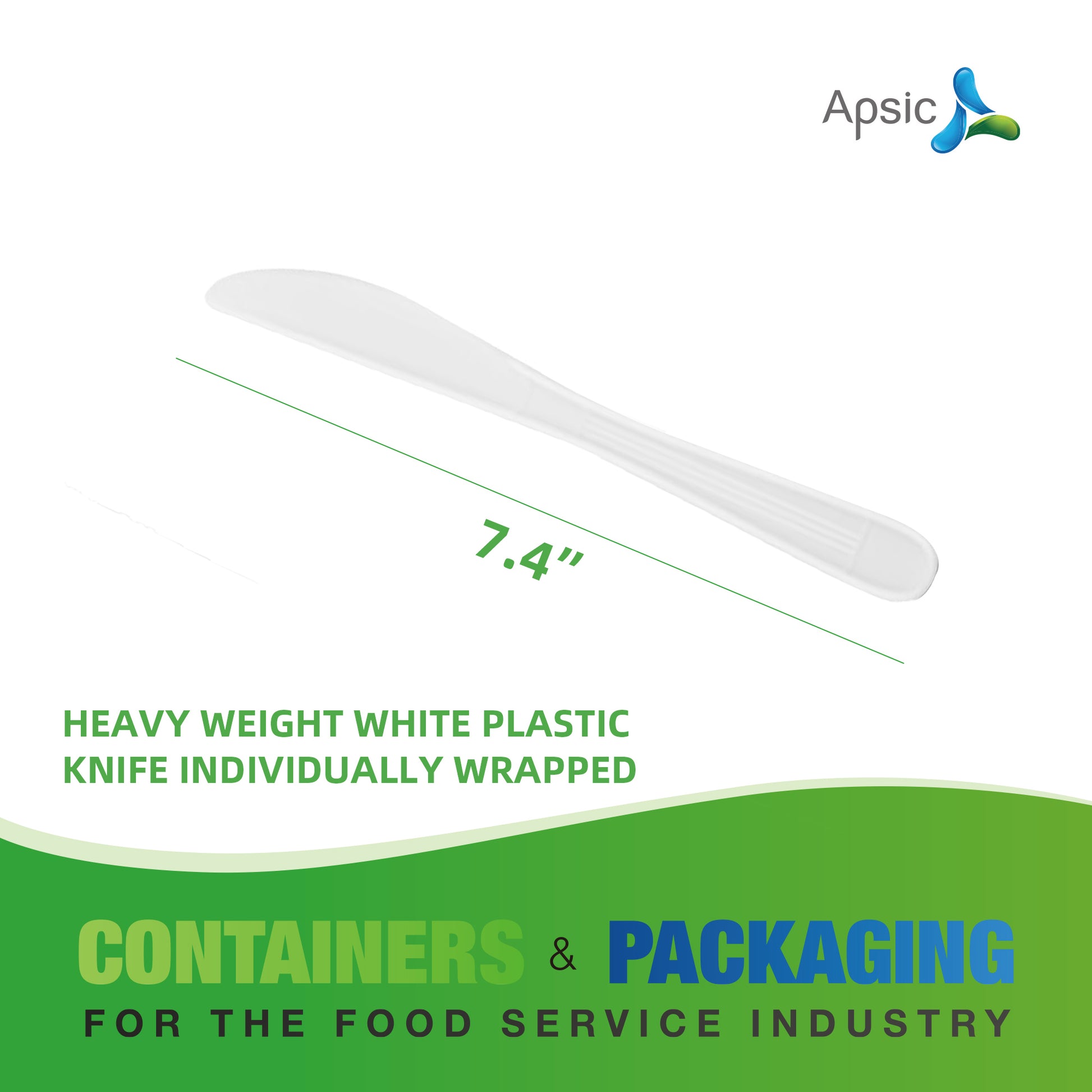 HEAVY WEIGHT WHITE PLASTIC KNIFE INDIVIDUALLY WRAPPED