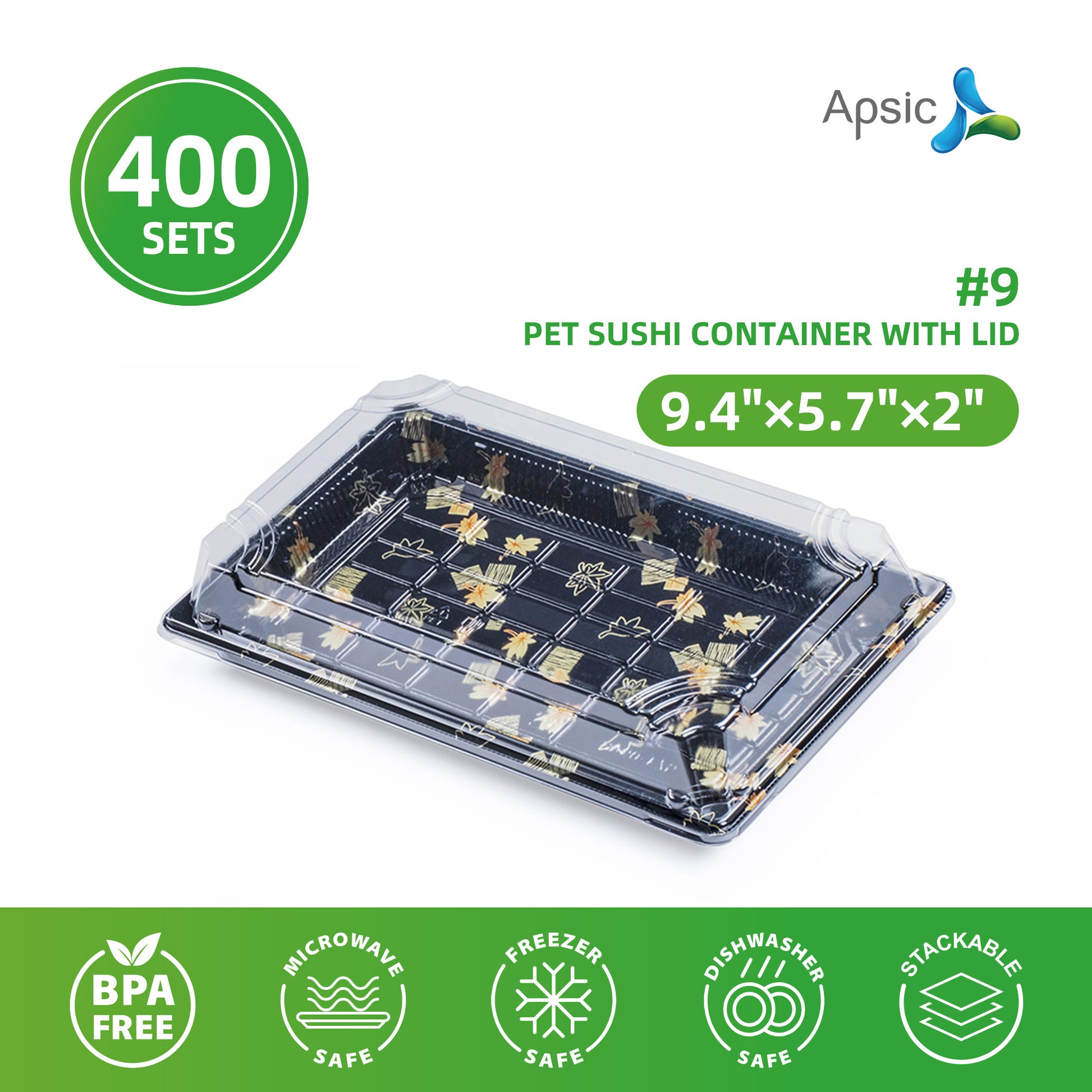 #9 PET SUSHI CONTAINER WITH LID 9.4"×5.7"×2"