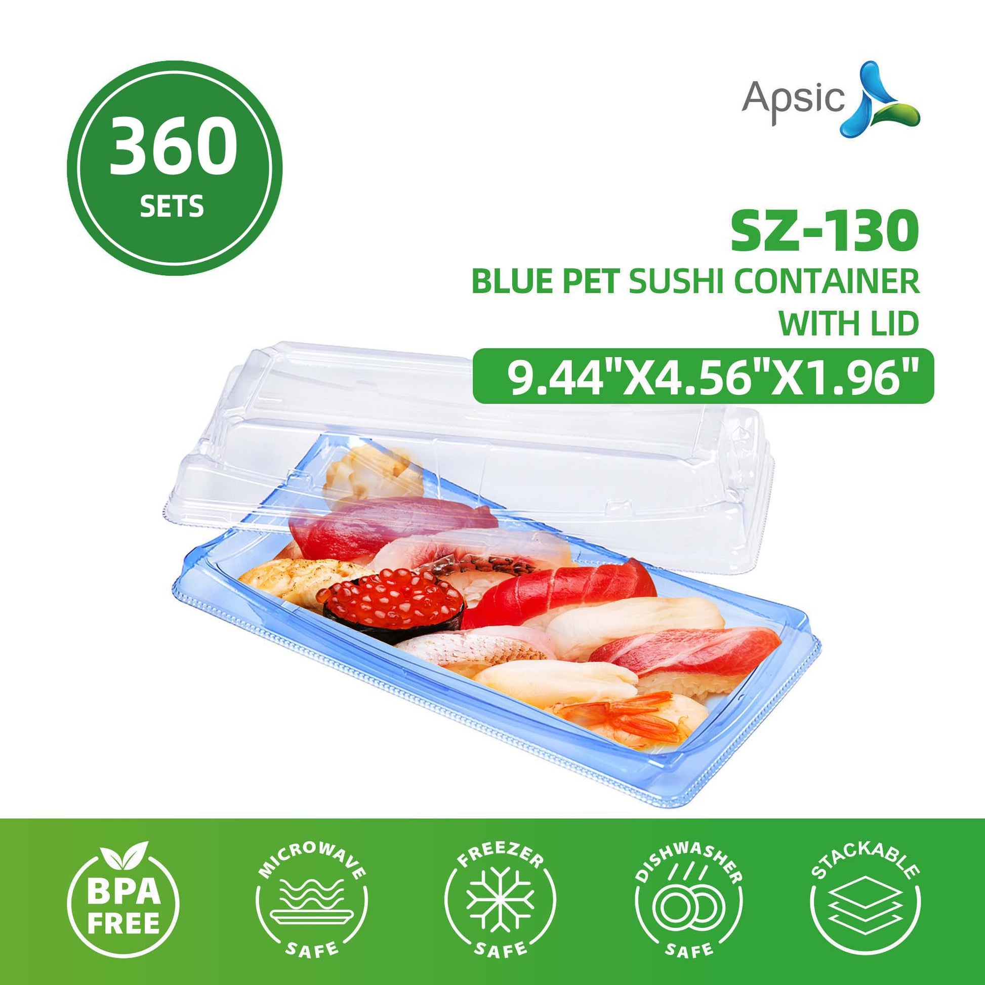 SZ-130 BLUE PET SUSHI CONTAINER WITH LID 9.44"x4.56"1.96"