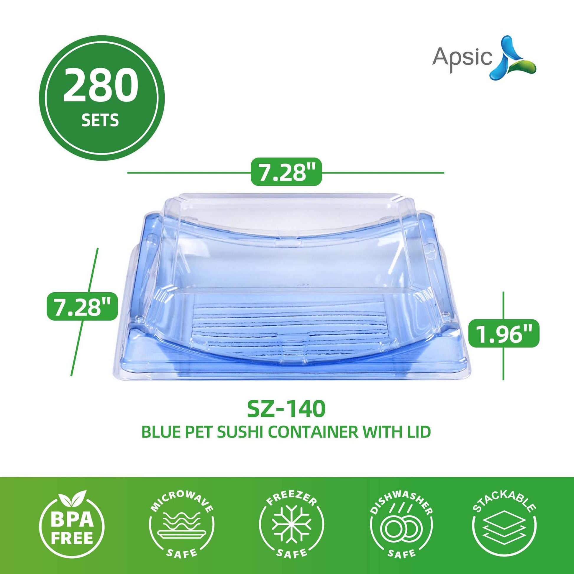SZ-140 BLUE PET SUSHI CONTAINER WITH LID 7.28"x7.28"1.96"