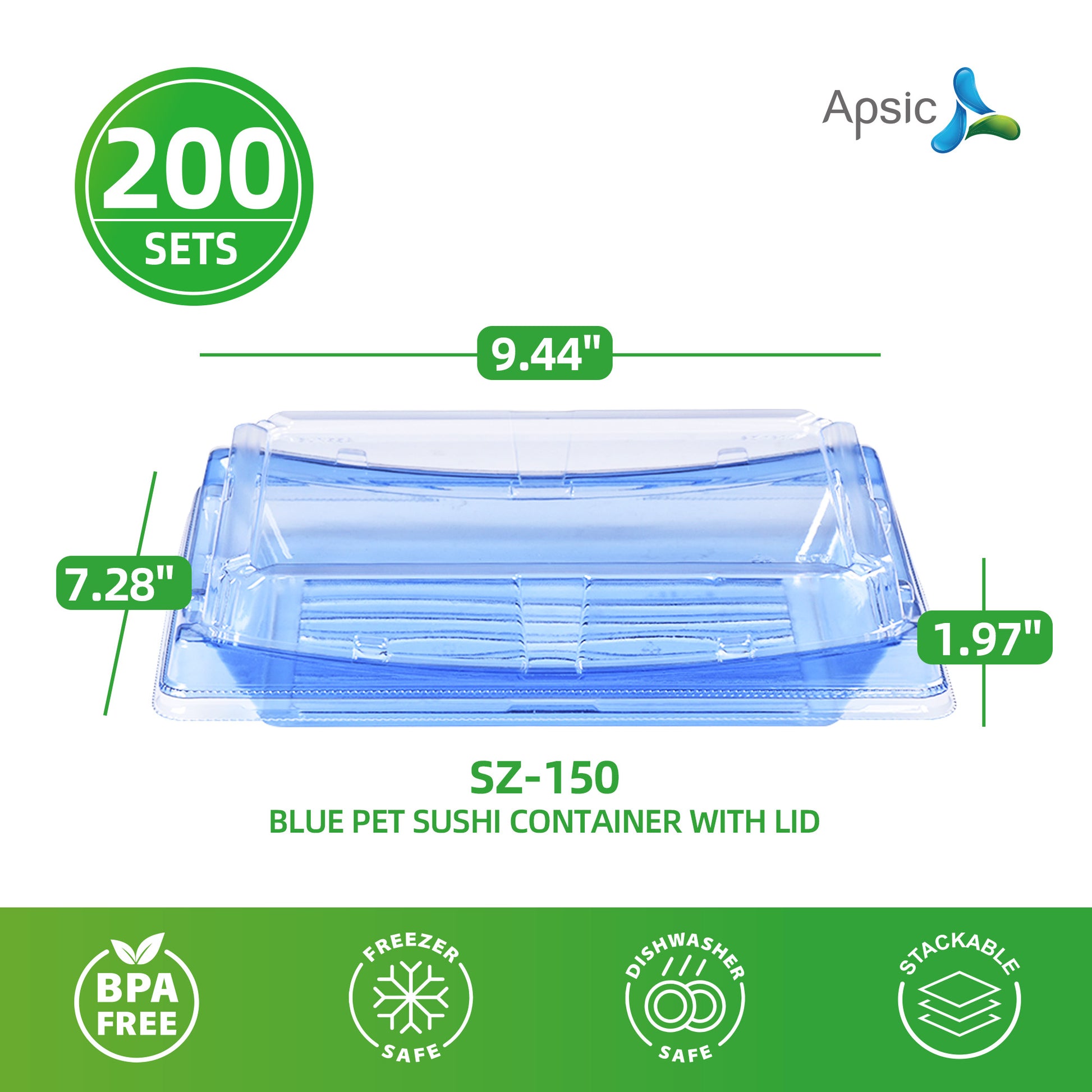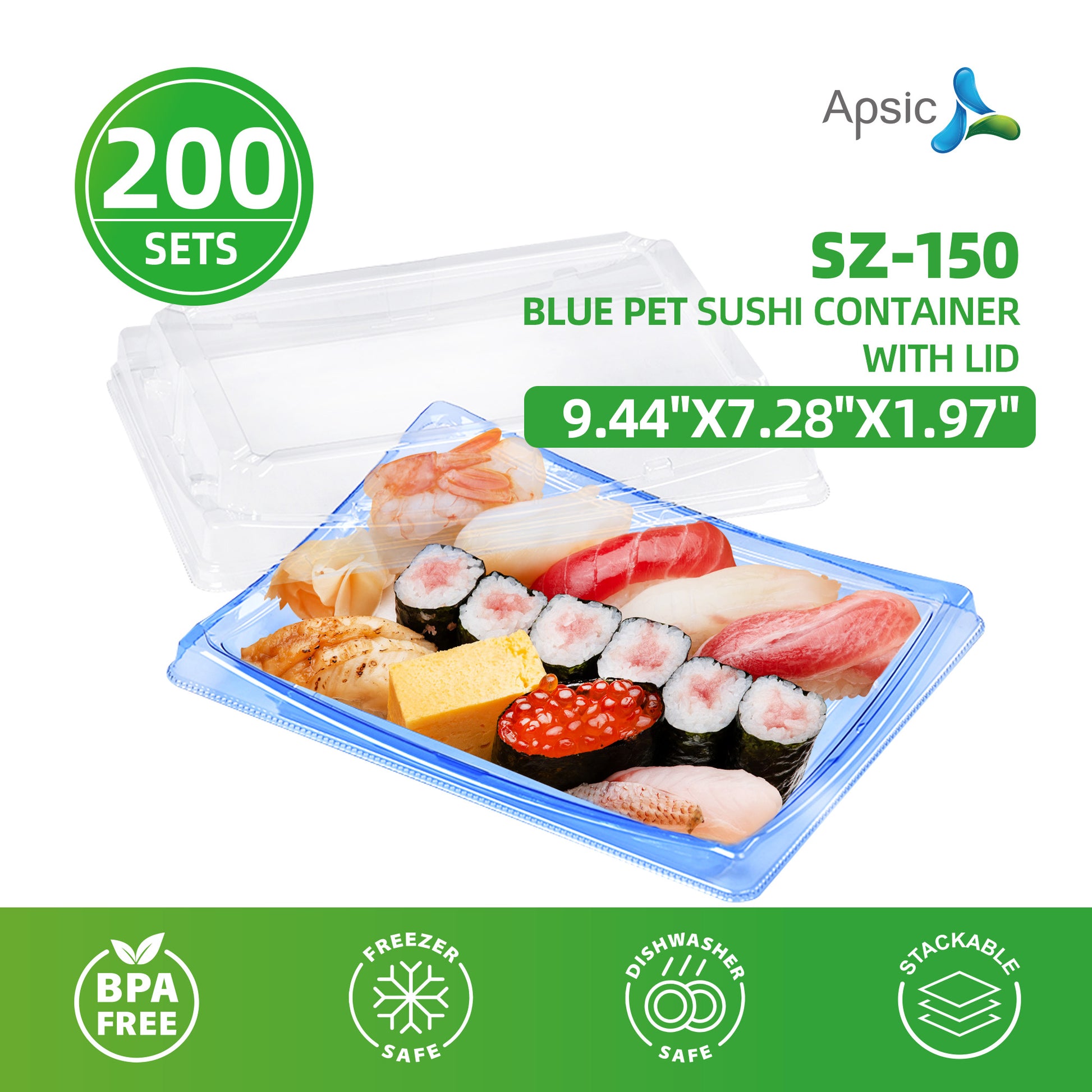 SZ-150 BLUE PET SUSHI CONTAINER WITH LID 9.44"x7.28"1.97"