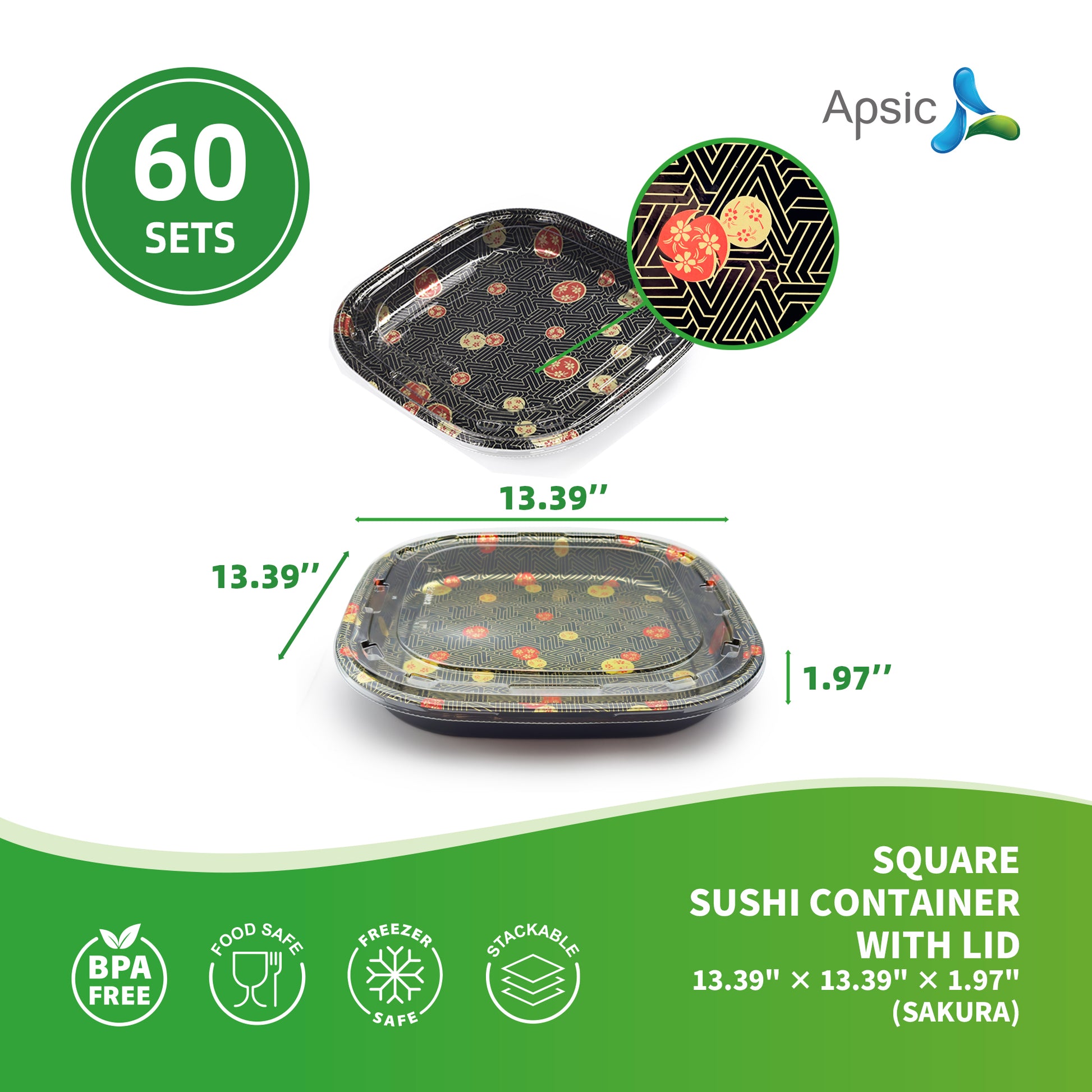 SQUARE SUSHI CONTAINER WITH LID 13.39" × 13.39" × 1.97"(SAKURA)