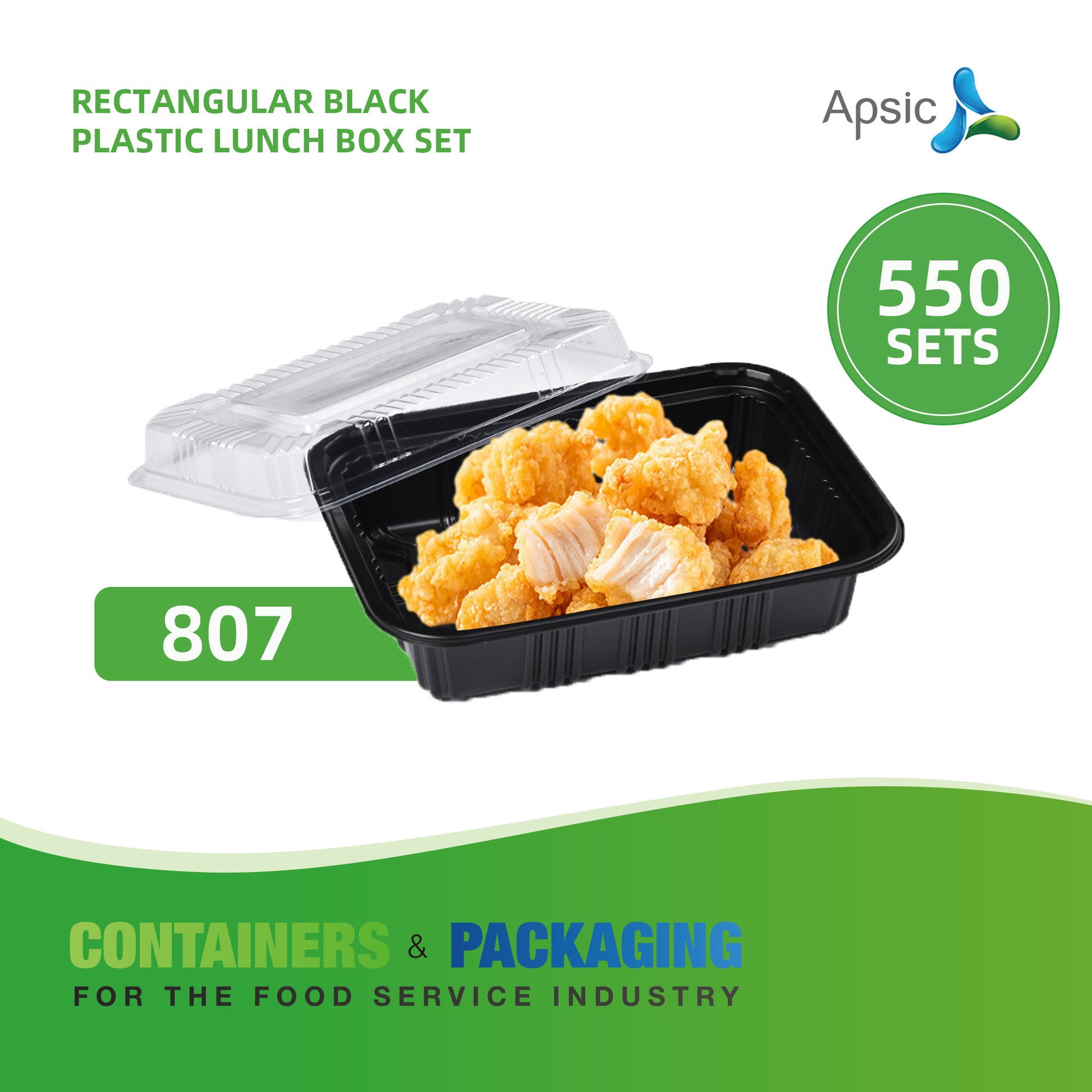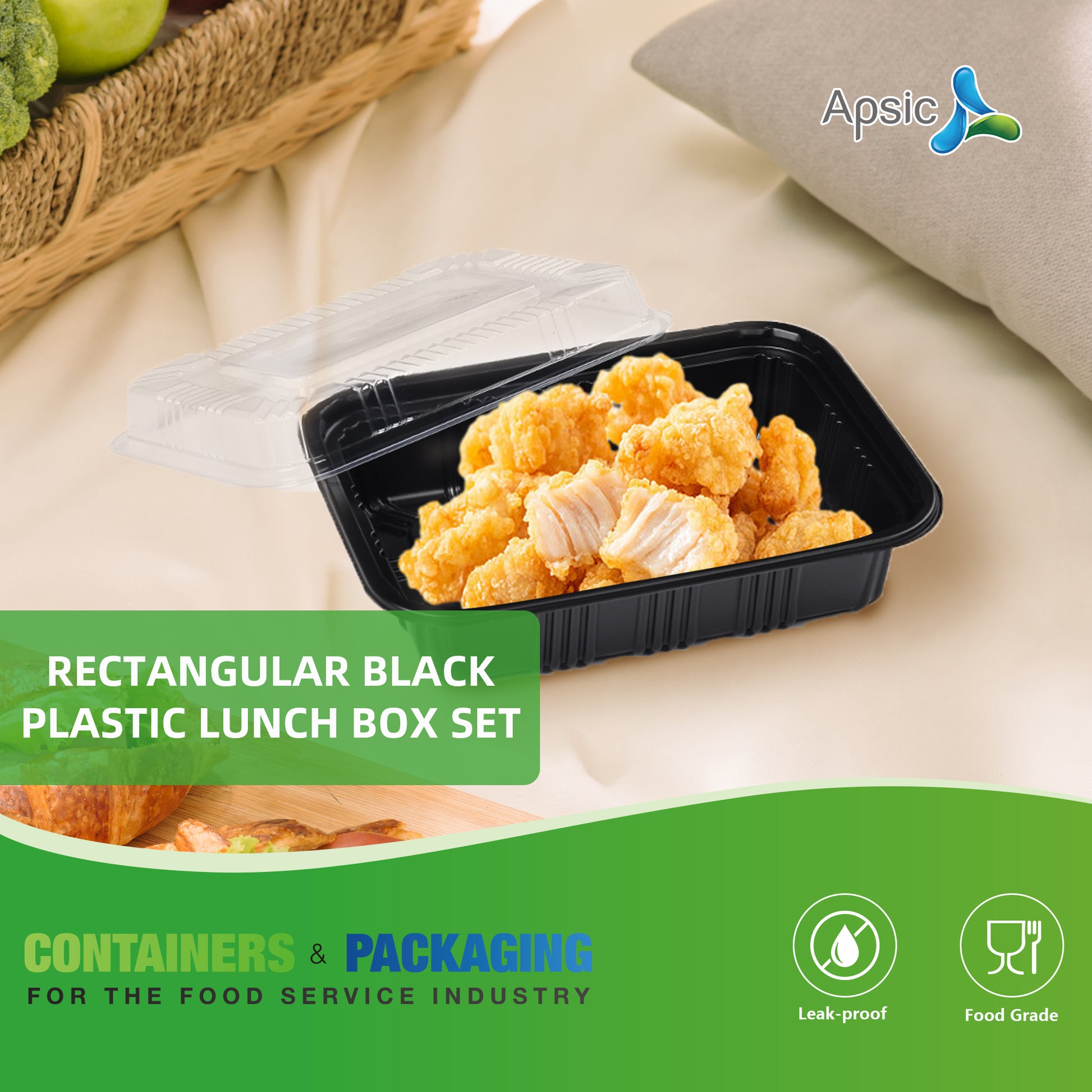 RECTANGULAR BLACK PLASTIC LUNCH BOX SET 6.5"x4.9"x1.8"
