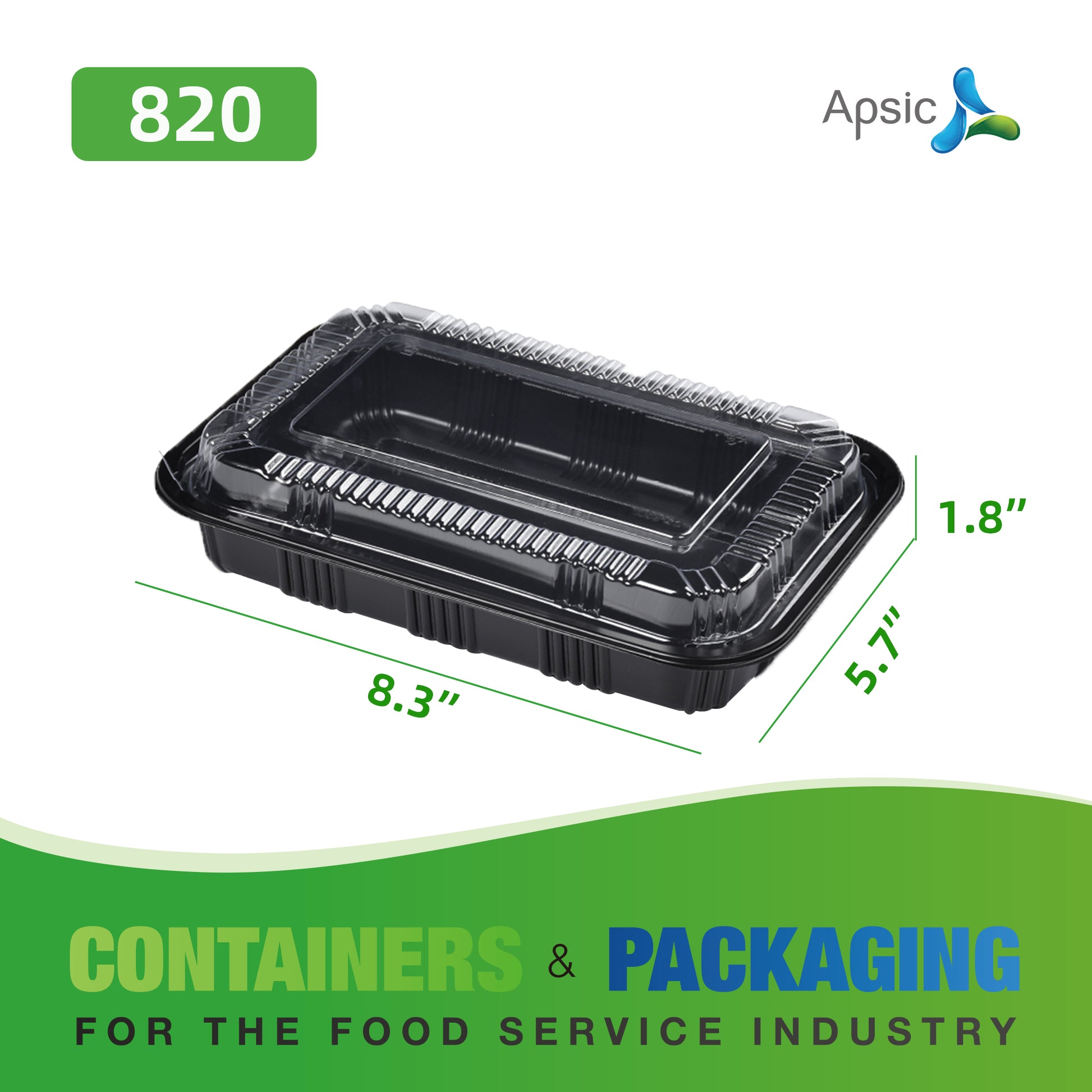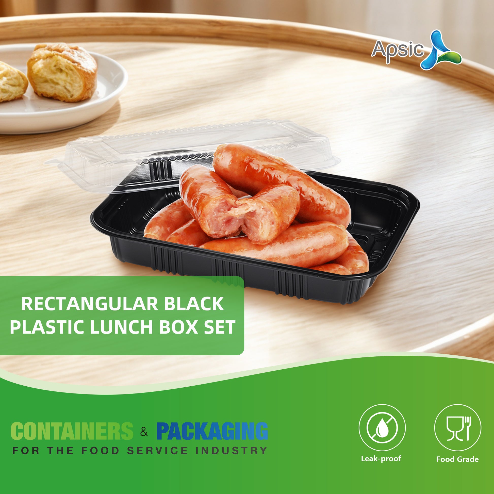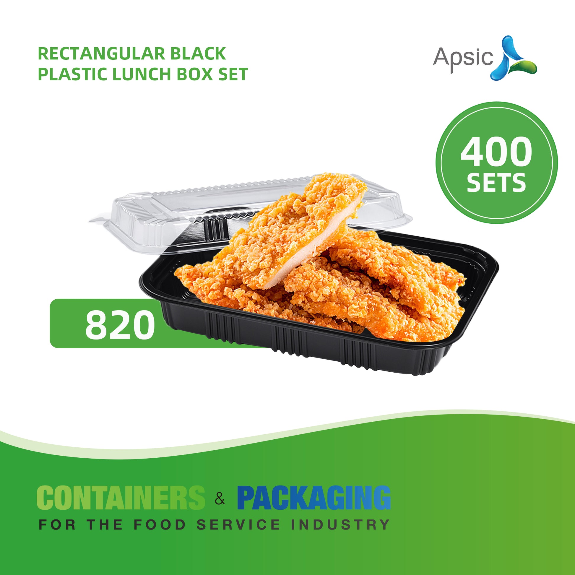 RECTANGULAR BLACK PLASTIC LUNCH BOX SET 8.3"x5.7"x1.8"