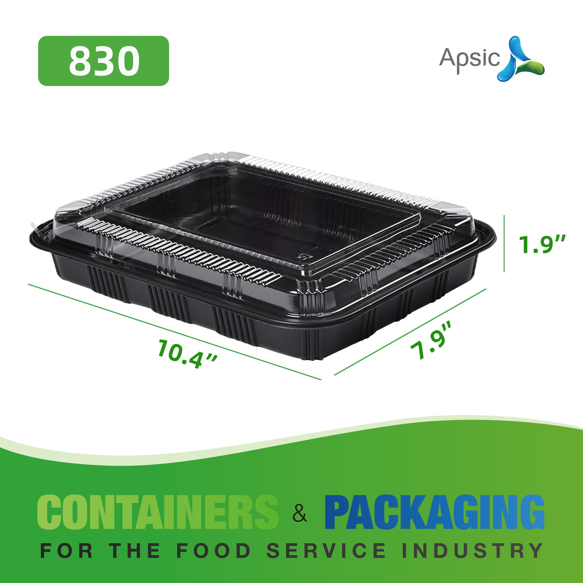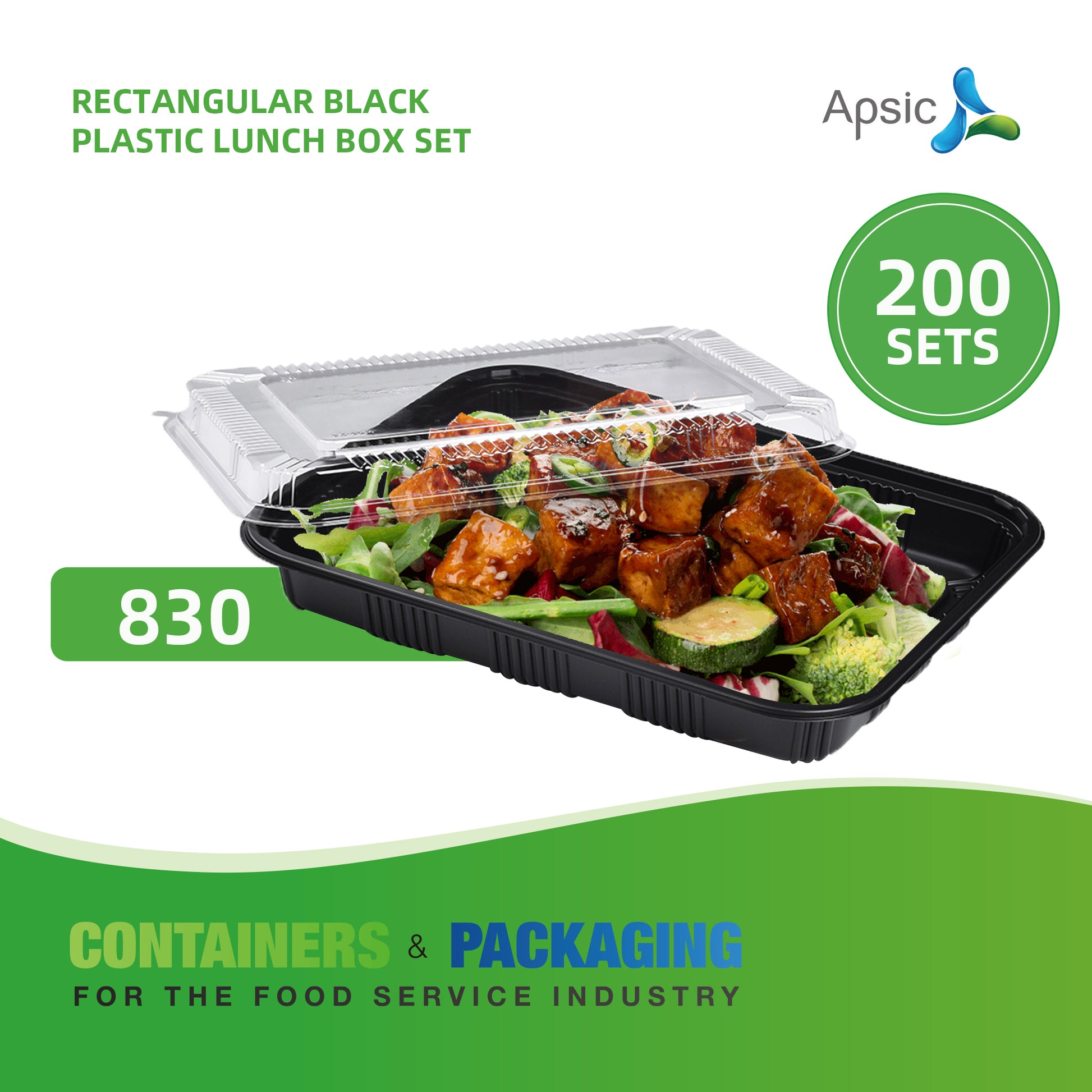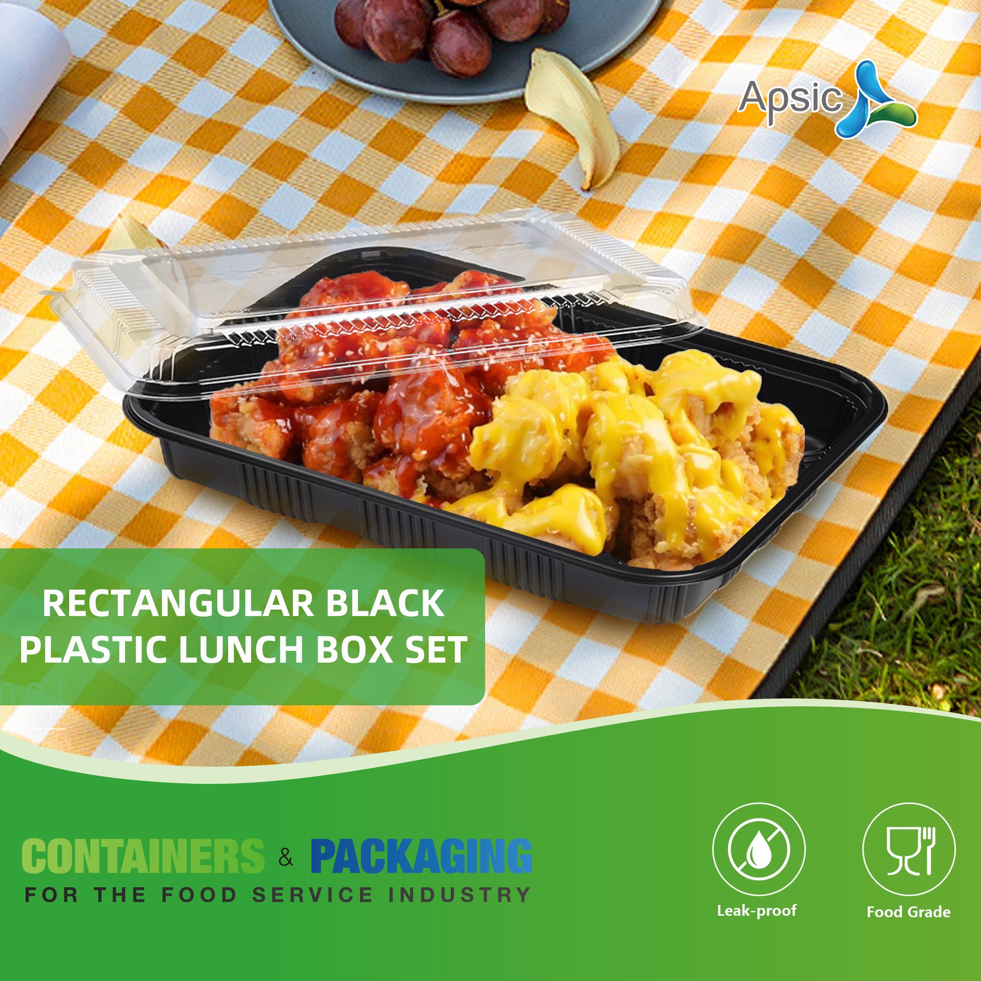RECTANGULAR BLACK PLASTIC LUNCH BOX SET 10.4"x7.9"x1.9"