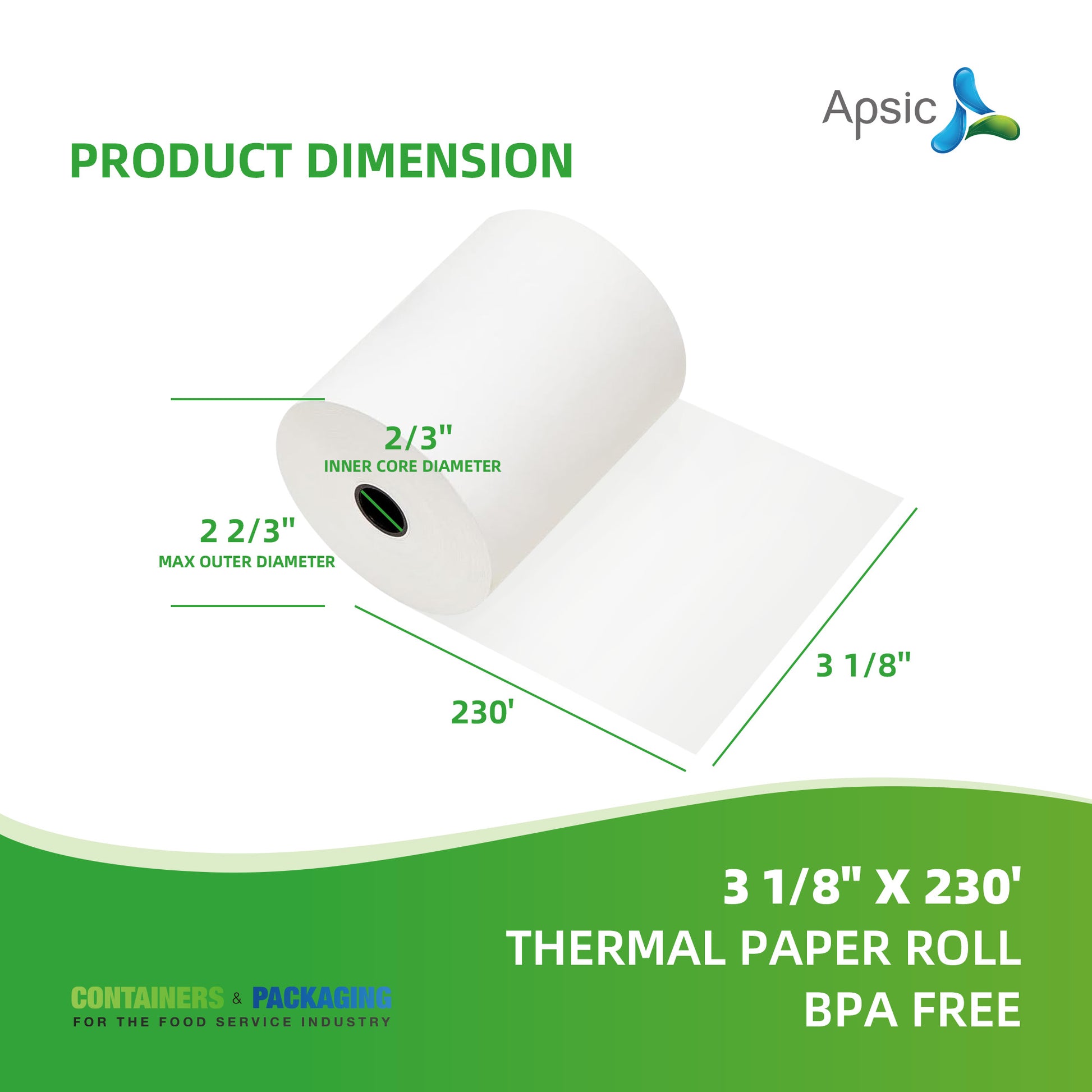 3 1/8" x 230' THERMAL PAPER ROLL BPA FREE