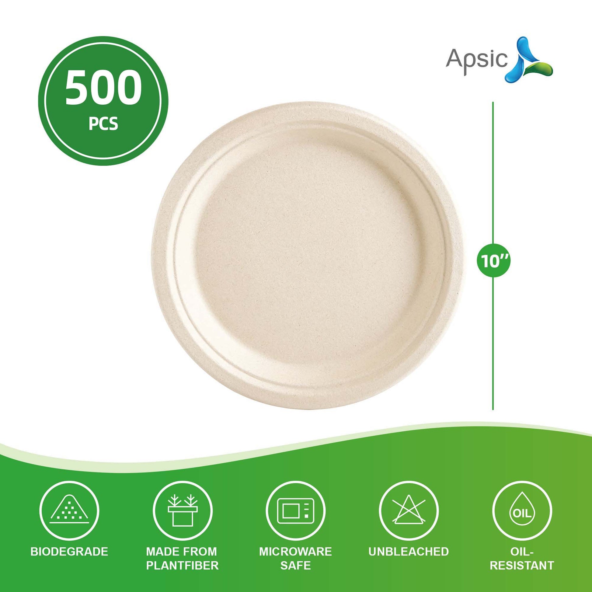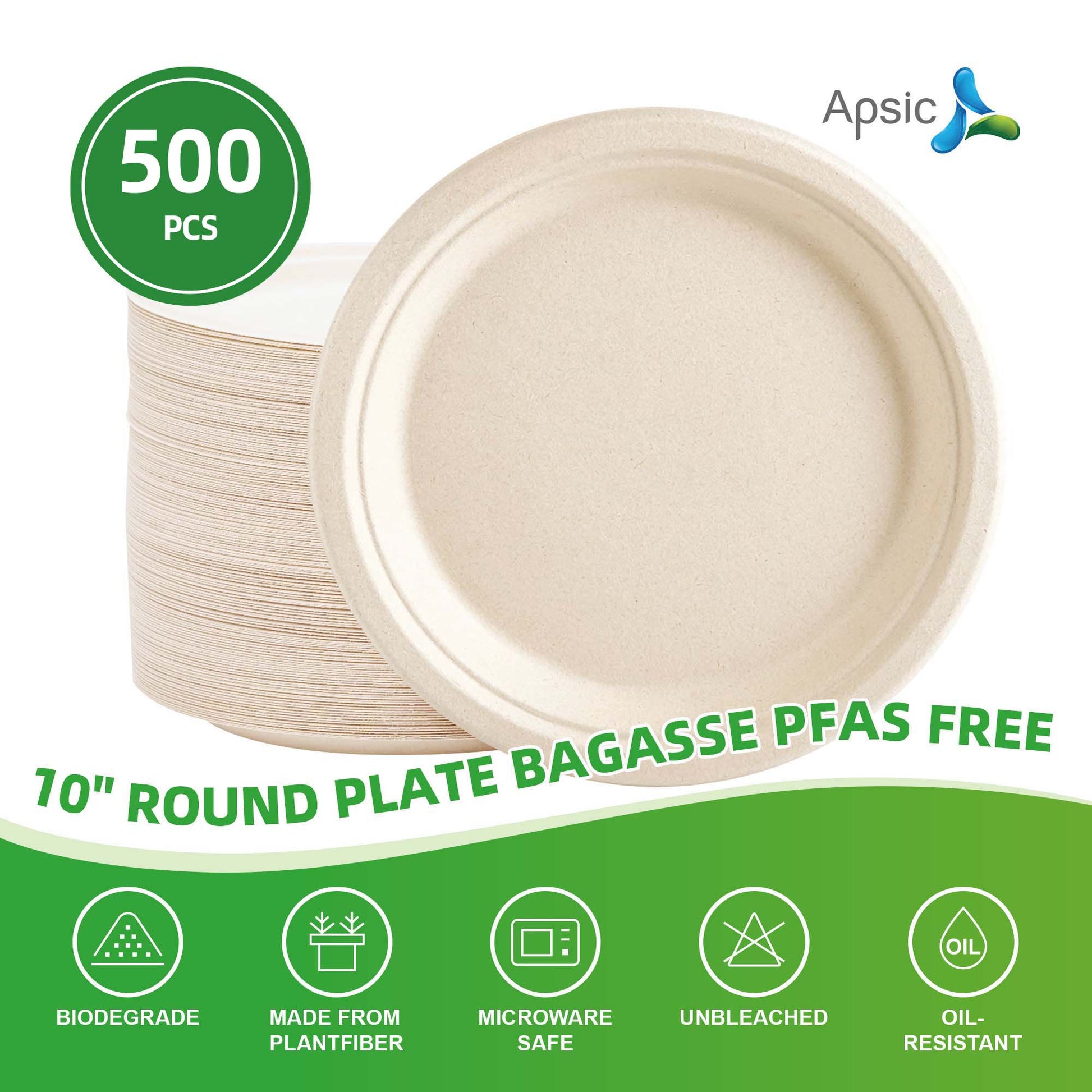 COMPOSTABLE DINNER PLATE 10" ROUND PLATE BAGASSE PFAS FREE