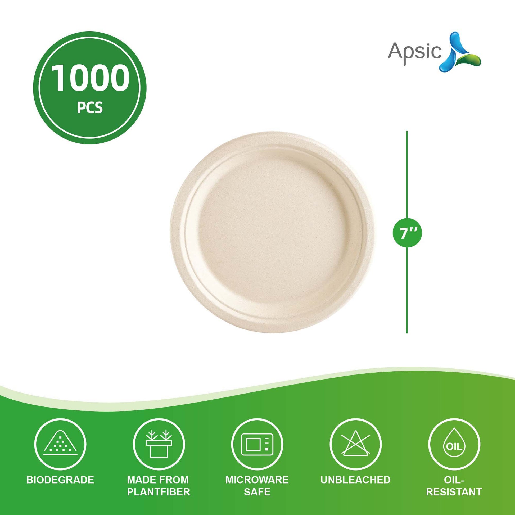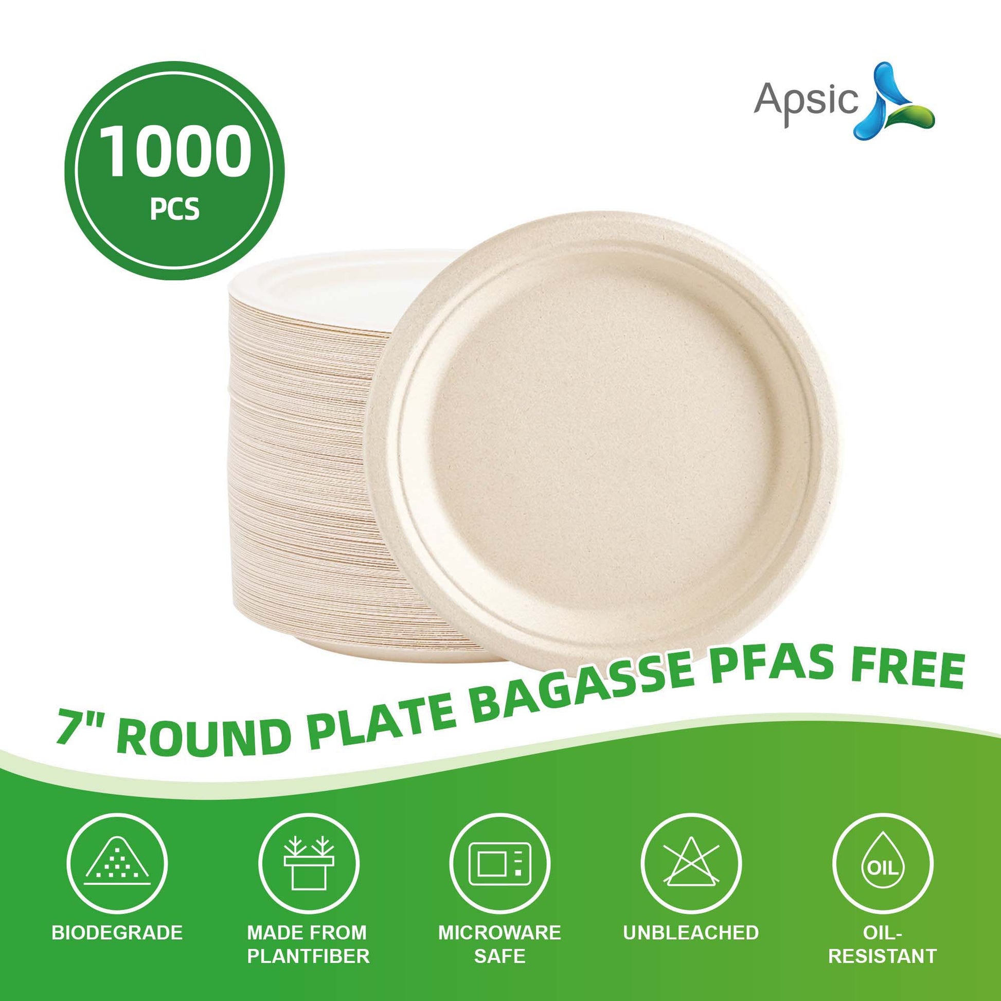 COMPOSTABLE DINNER PLATE 7" ROUND PLATE BAGASSE PFAS FREE