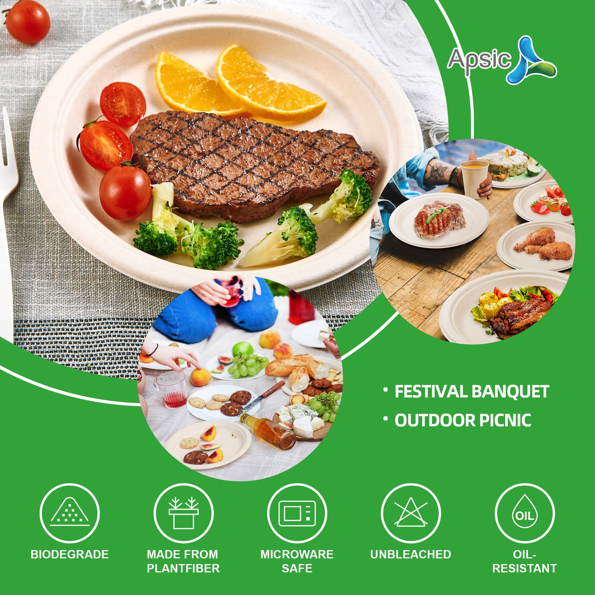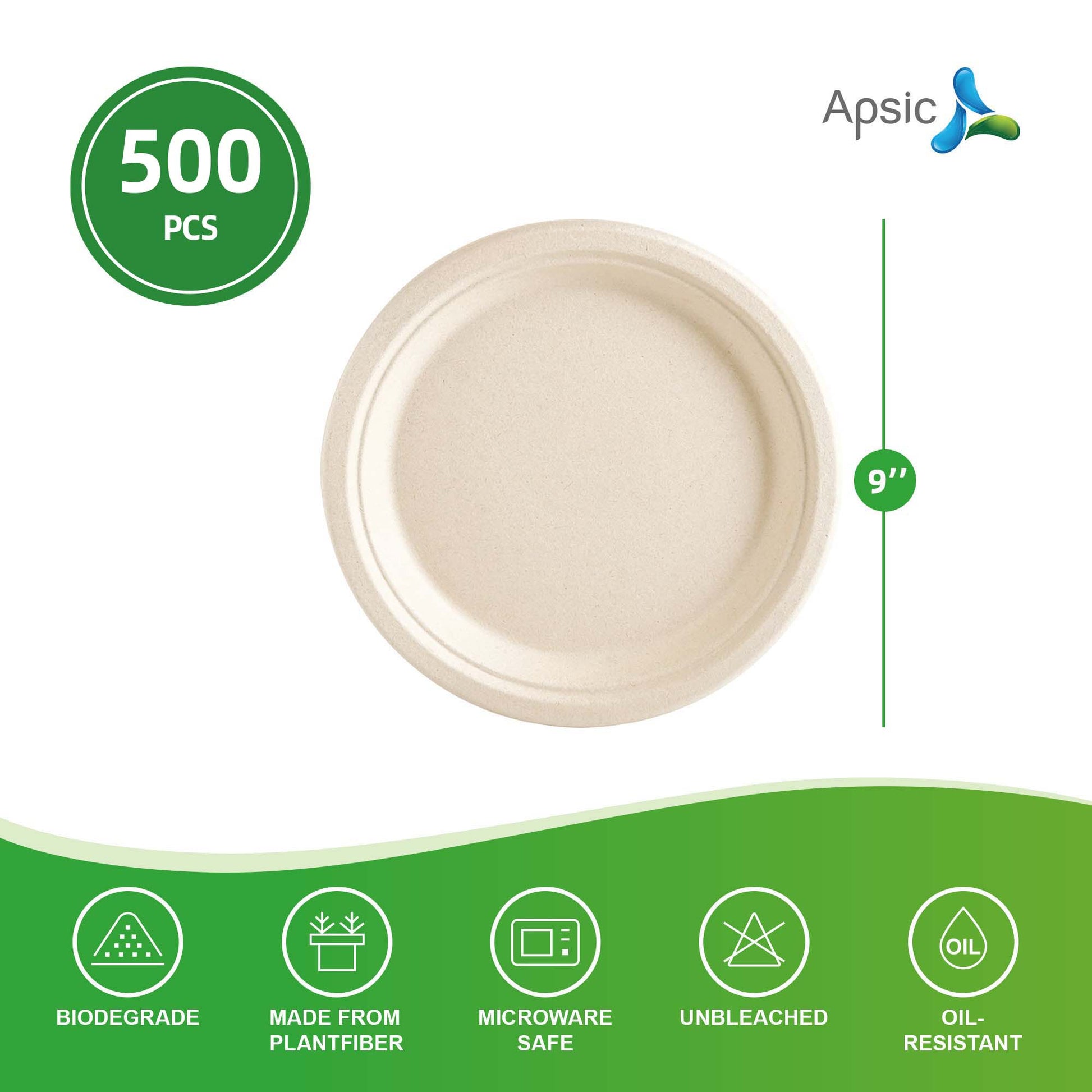 COMPOSTABLE DINNER PLATE 9" ROUND PLATE BAGASSE PFAS FREE